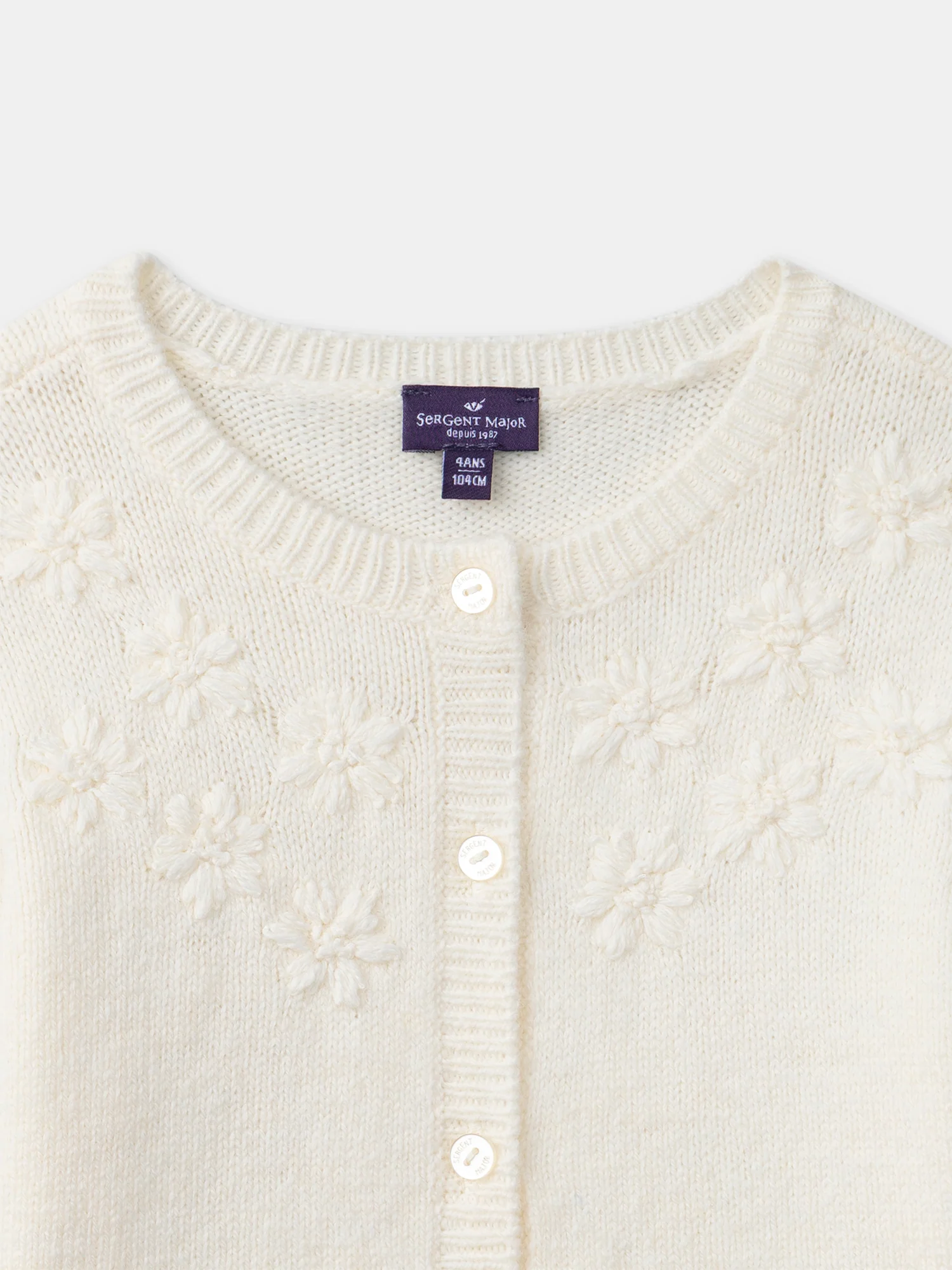 Gilet écru à broderie fleurs Fille