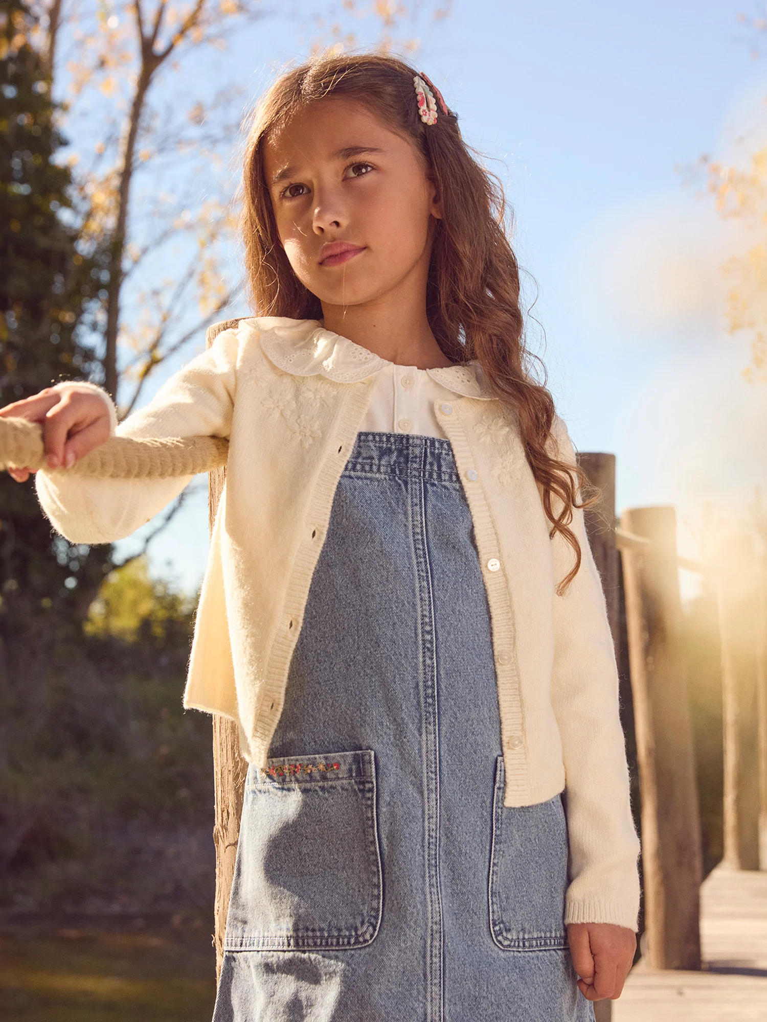 Pour une petite rêveuse qui aime les looks légers, idéal en mi-saison. Sa forme à col rond et son ouverture boutonnée assurent un habillage facile. Les fleurs brodées apportent une note poétique et raffinée.