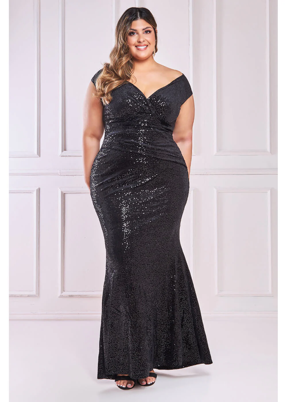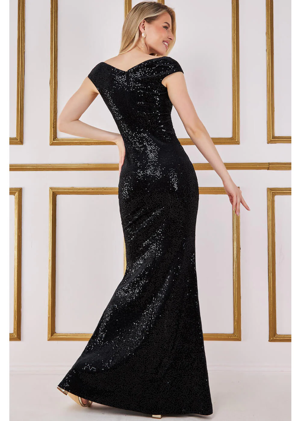 Goddiva Zoe Sequin Velvet Maxi Dress Black