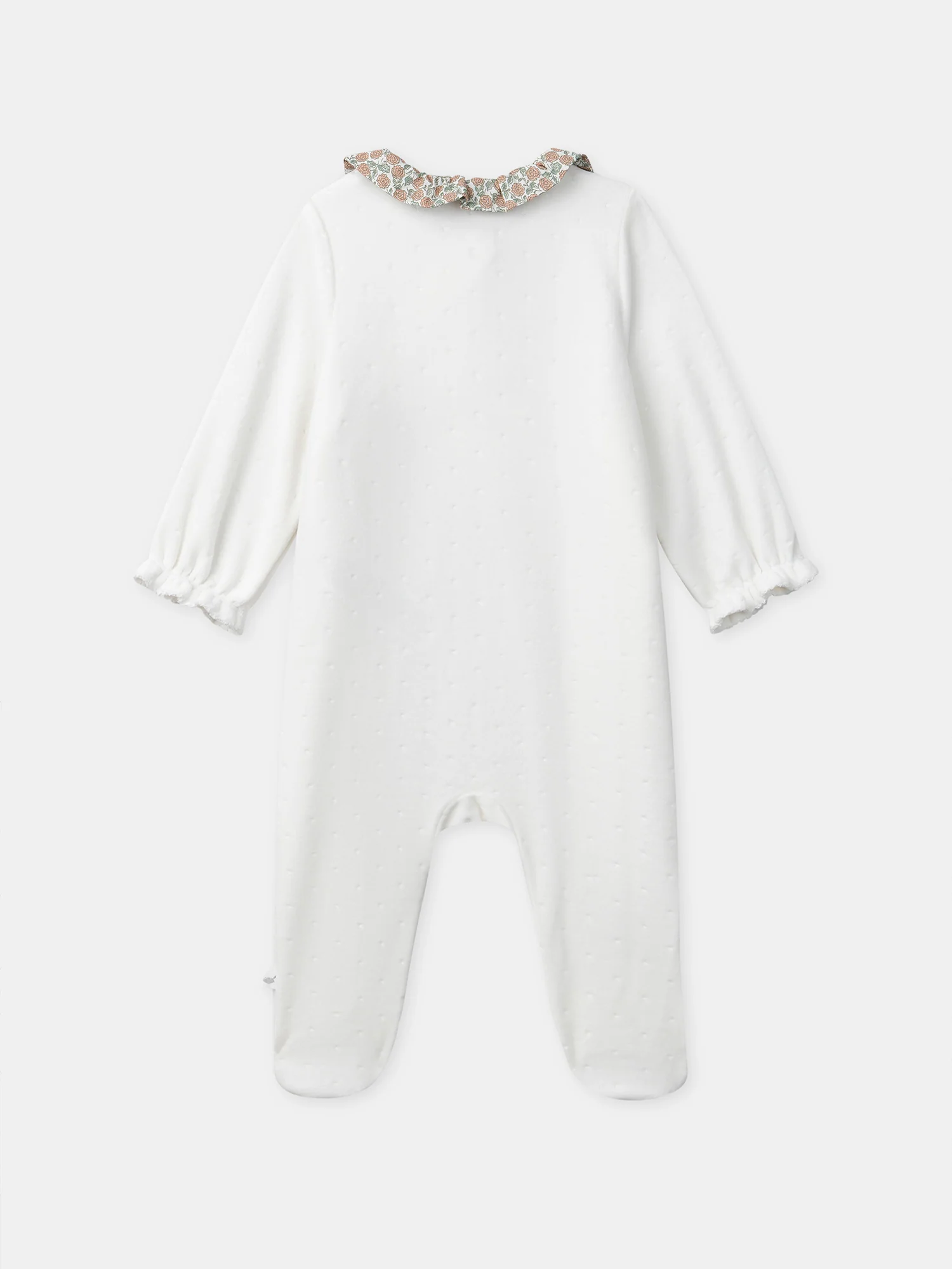 Grenouillère blanche en velours et fleuri Naissance Fille