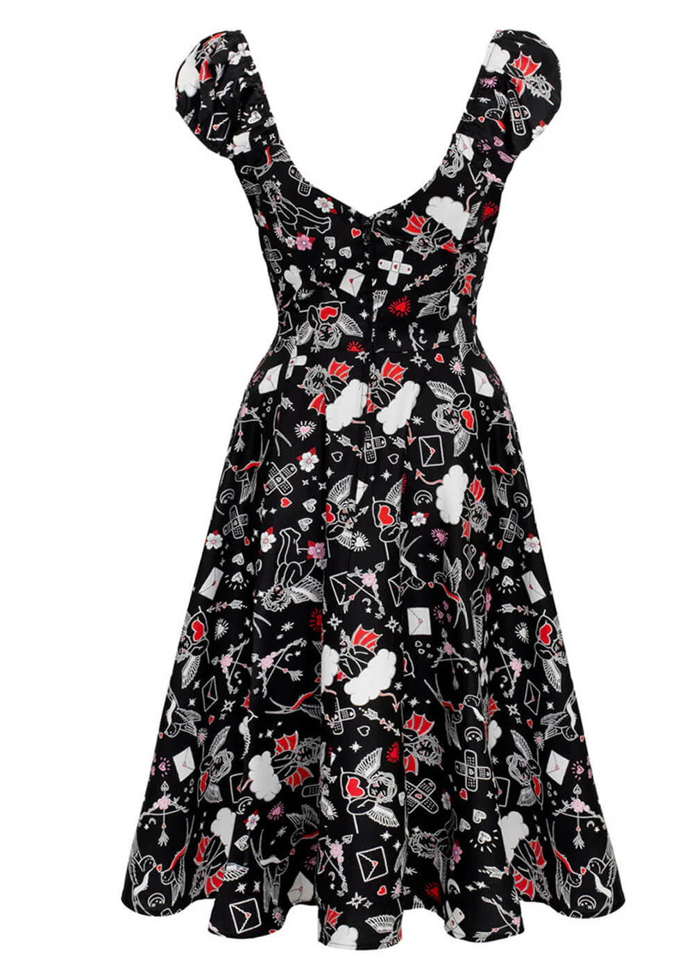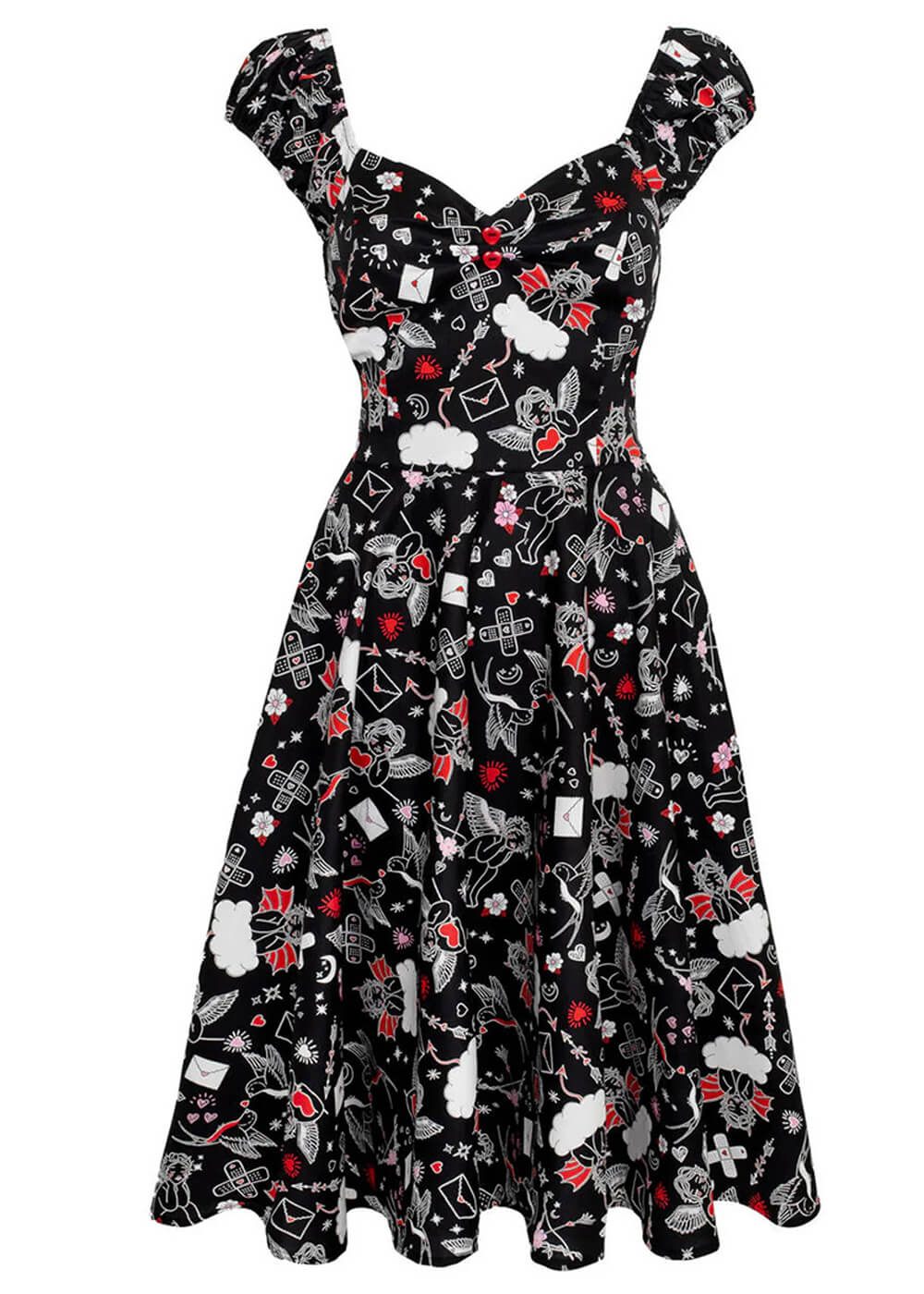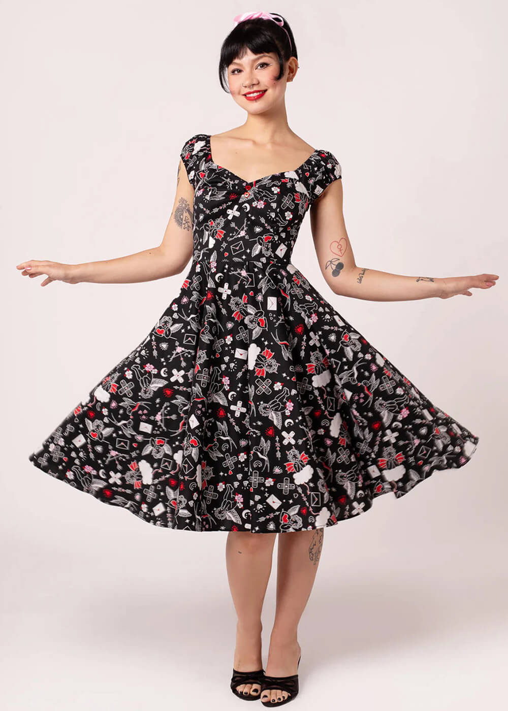 Feeling a bit of tattoo romance with a hefty dose of twirl? The Charlie Dress is the kind of dress that instantly creates a complete look: the sweetheart neckline, playful puff sleeves (worn on or off the shoulder!), and those two red heart buttons make her irresistible. And of course: a flowing full circle skirt […]