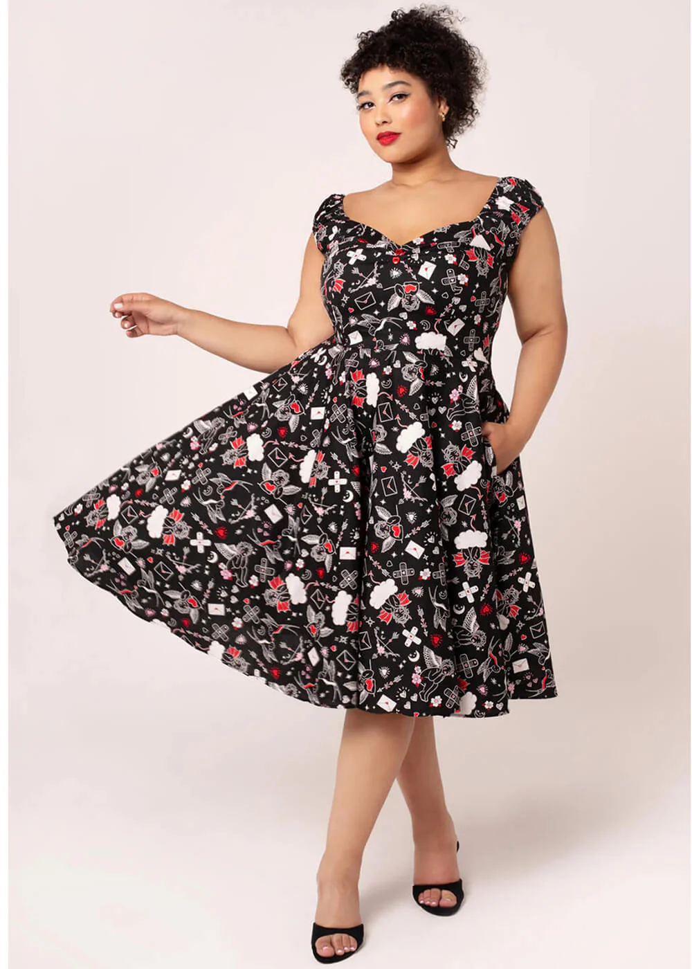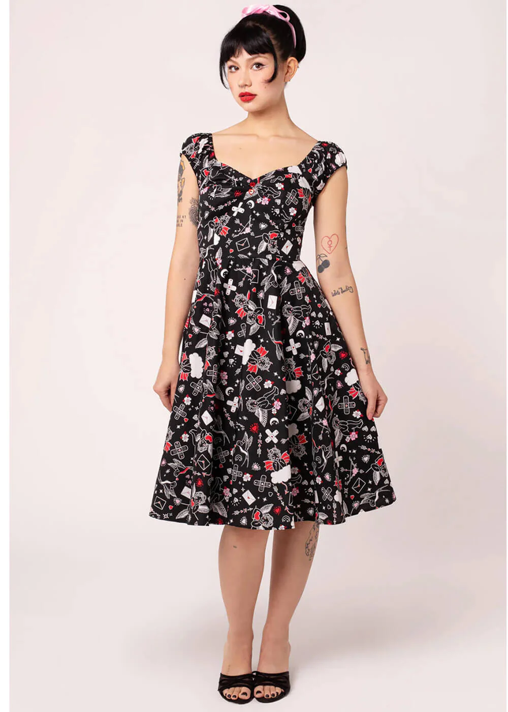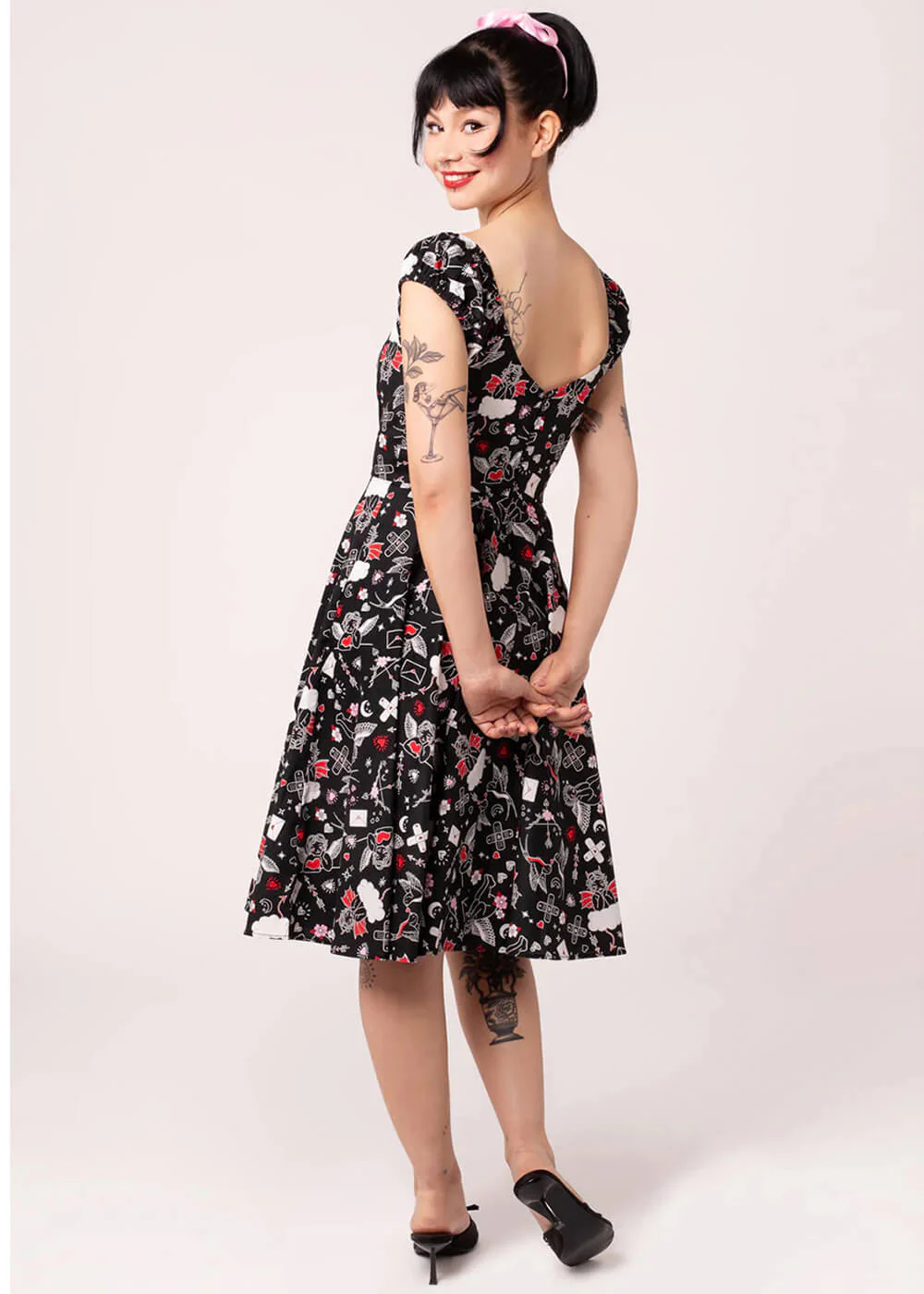 Feeling a bit of tattoo romance with a hefty dose of twirl? The Charlie Dress is the kind of dress that instantly creates a complete look: the sweetheart neckline, playful puff sleeves (worn on or off the shoulder!), and those two red heart buttons make her irresistible. And of course: a flowing full circle skirt […]
