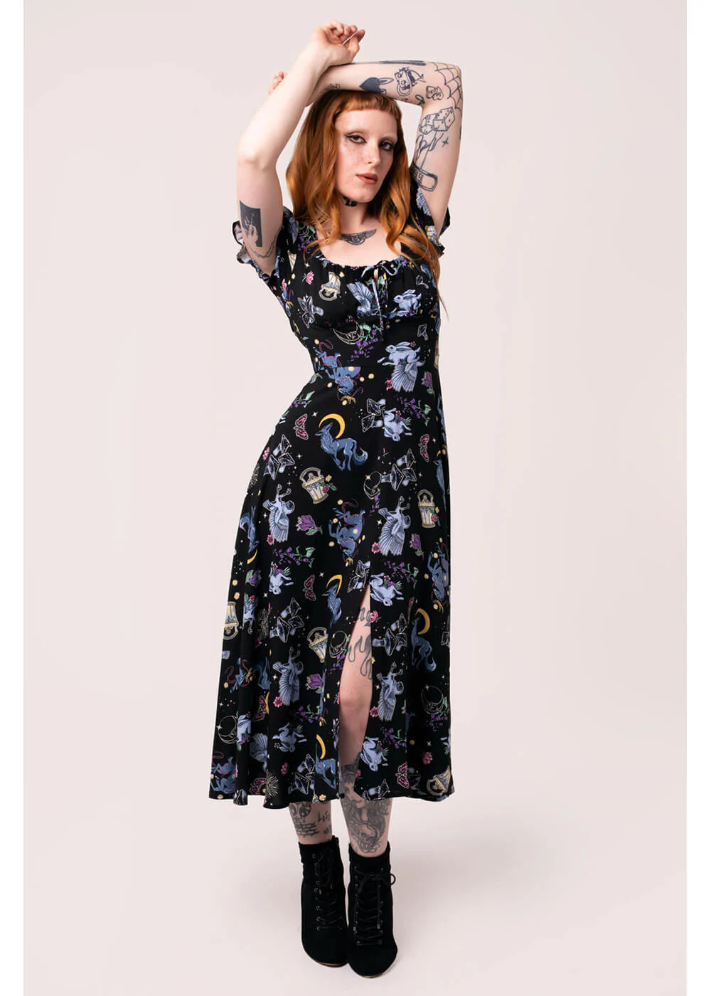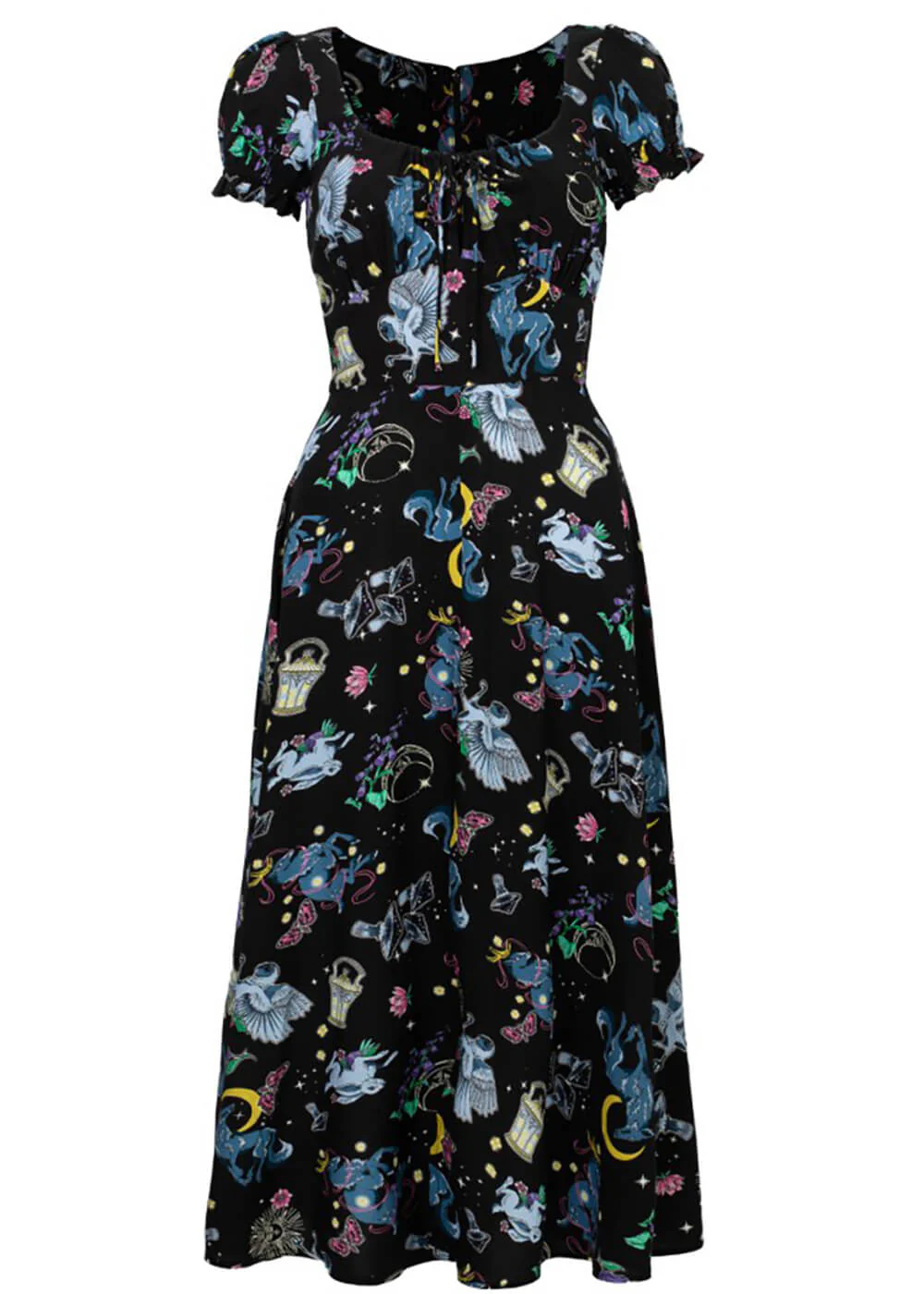 Hell Bunny Moonlit 70’s Midi Dress Black