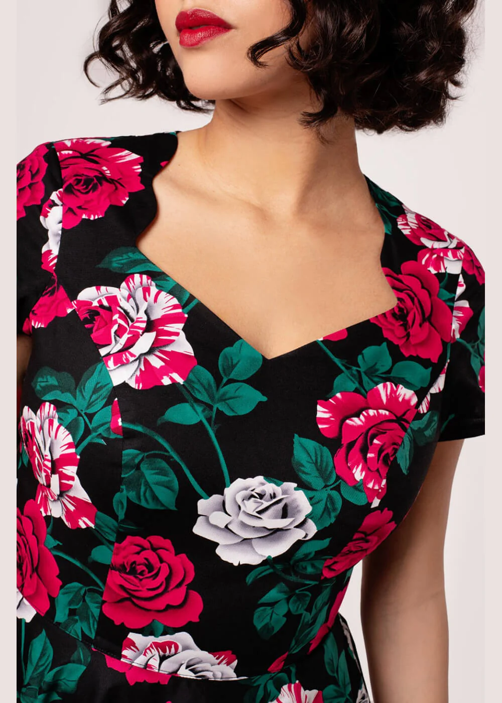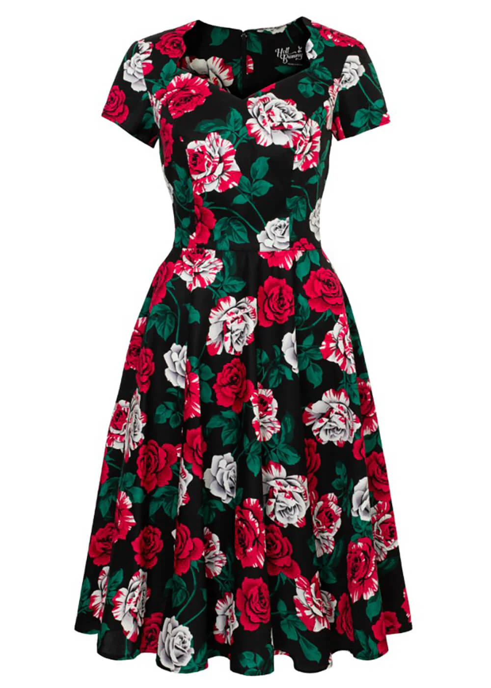 Hell Bunny Paint Me Roses 50’s Swing Dress Black