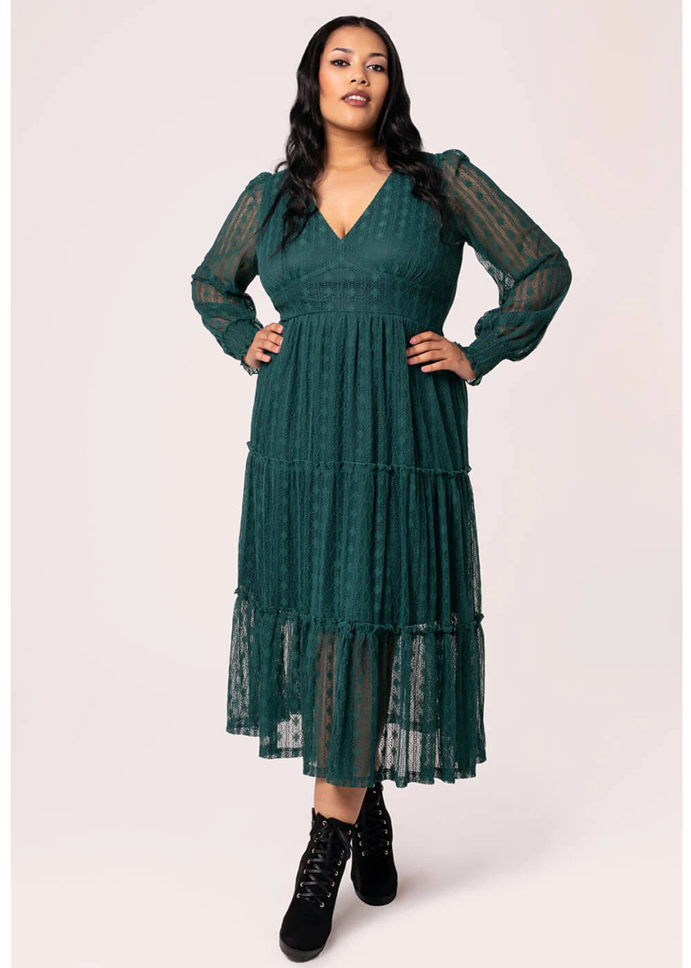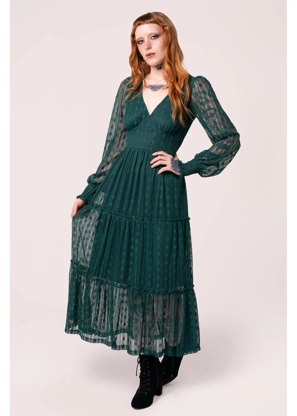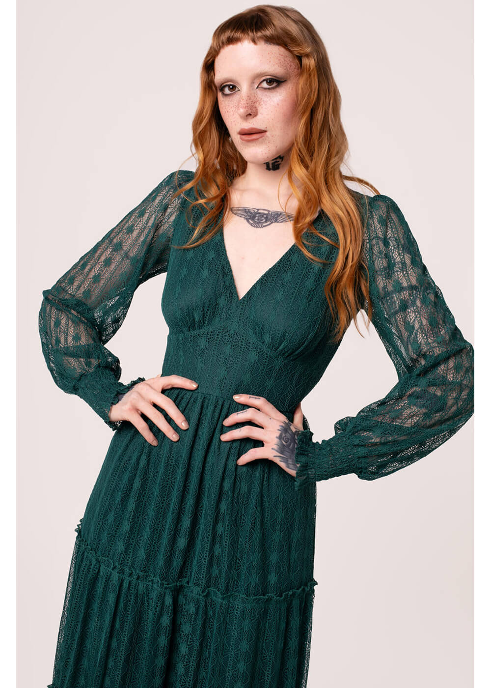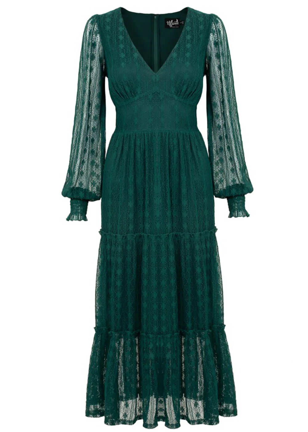 Hell Bunny Rhianne Lace 70’s Maxi Dress Green