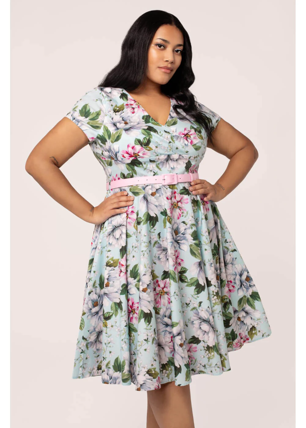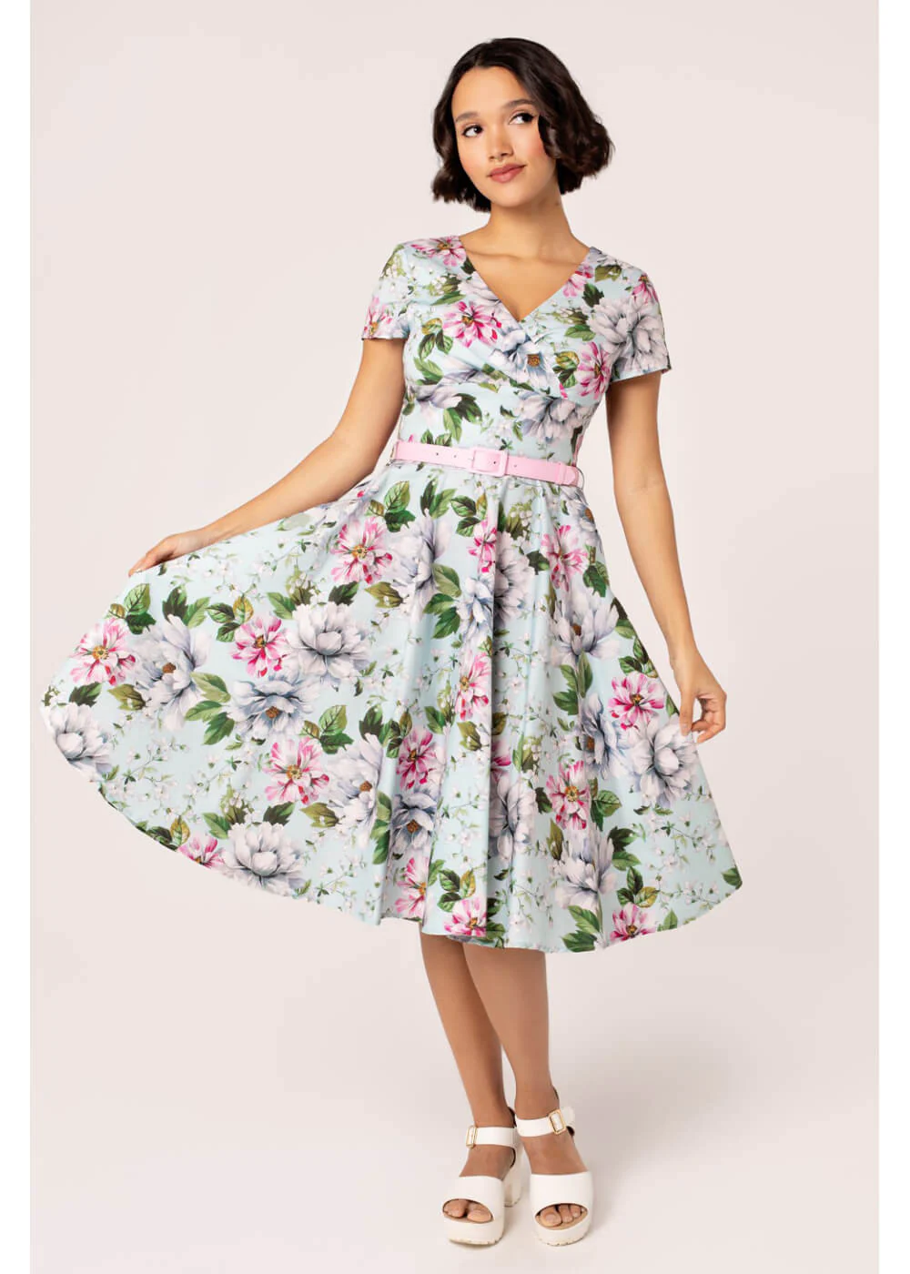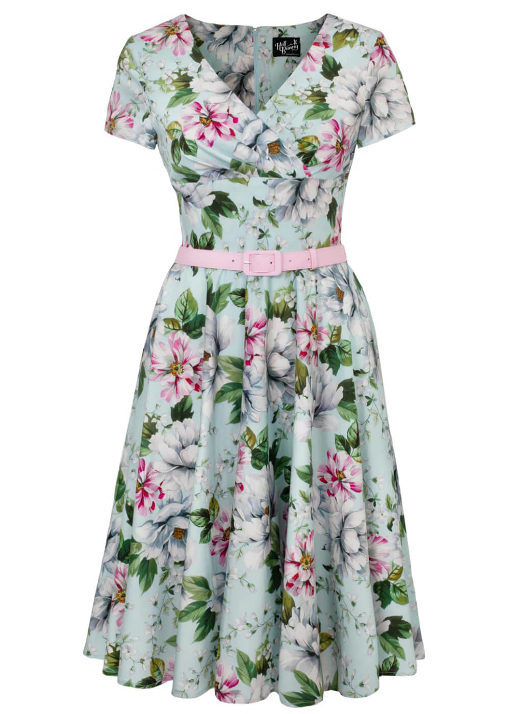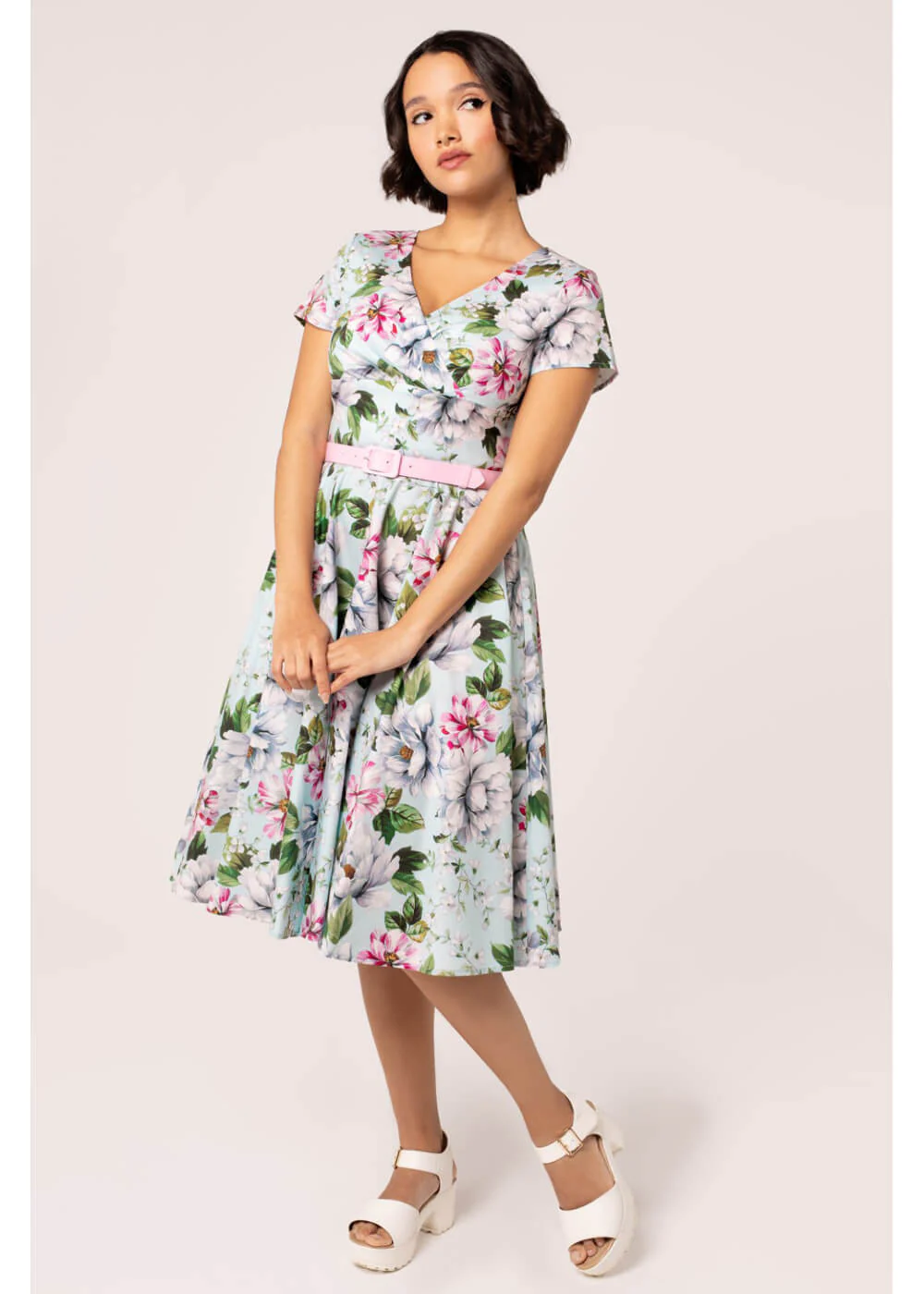 Hell Bunny Rina Floral 50’s Swing Dress Blue