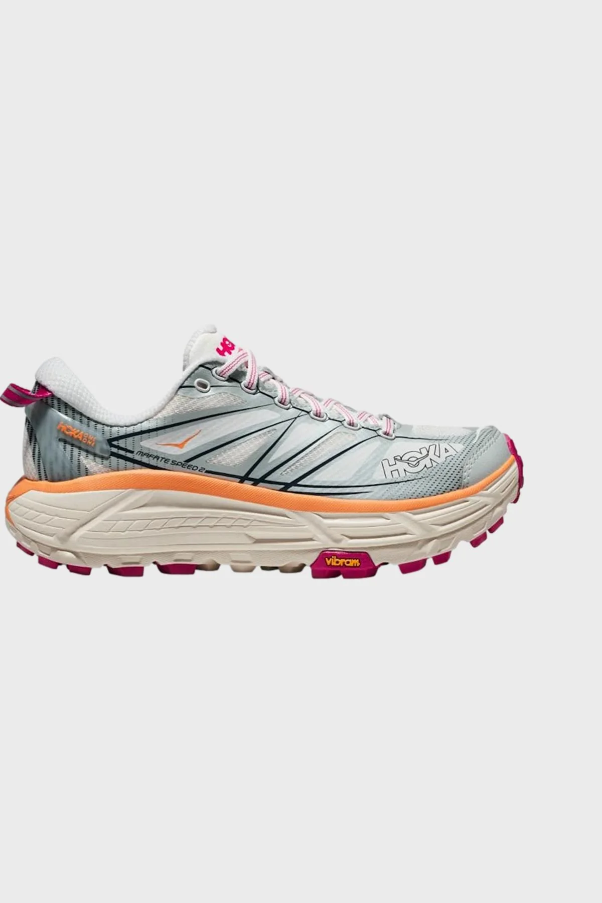Pour des trails longues distances, sur tous les types de surfaces Crampons multi-directionnels avant pied Vibram : Accroche, traction et robustesse Semelle extérieure en Vibram MegaGrip. Talon MegaGrip Compound : Adhérence R-Mat : Rebond, résistance, flexibilité et stabilité Oversize CMEVA : Amorti Semelle interne OrthoLite : Hygiène et confort Poids : 285g Drop : 4mm