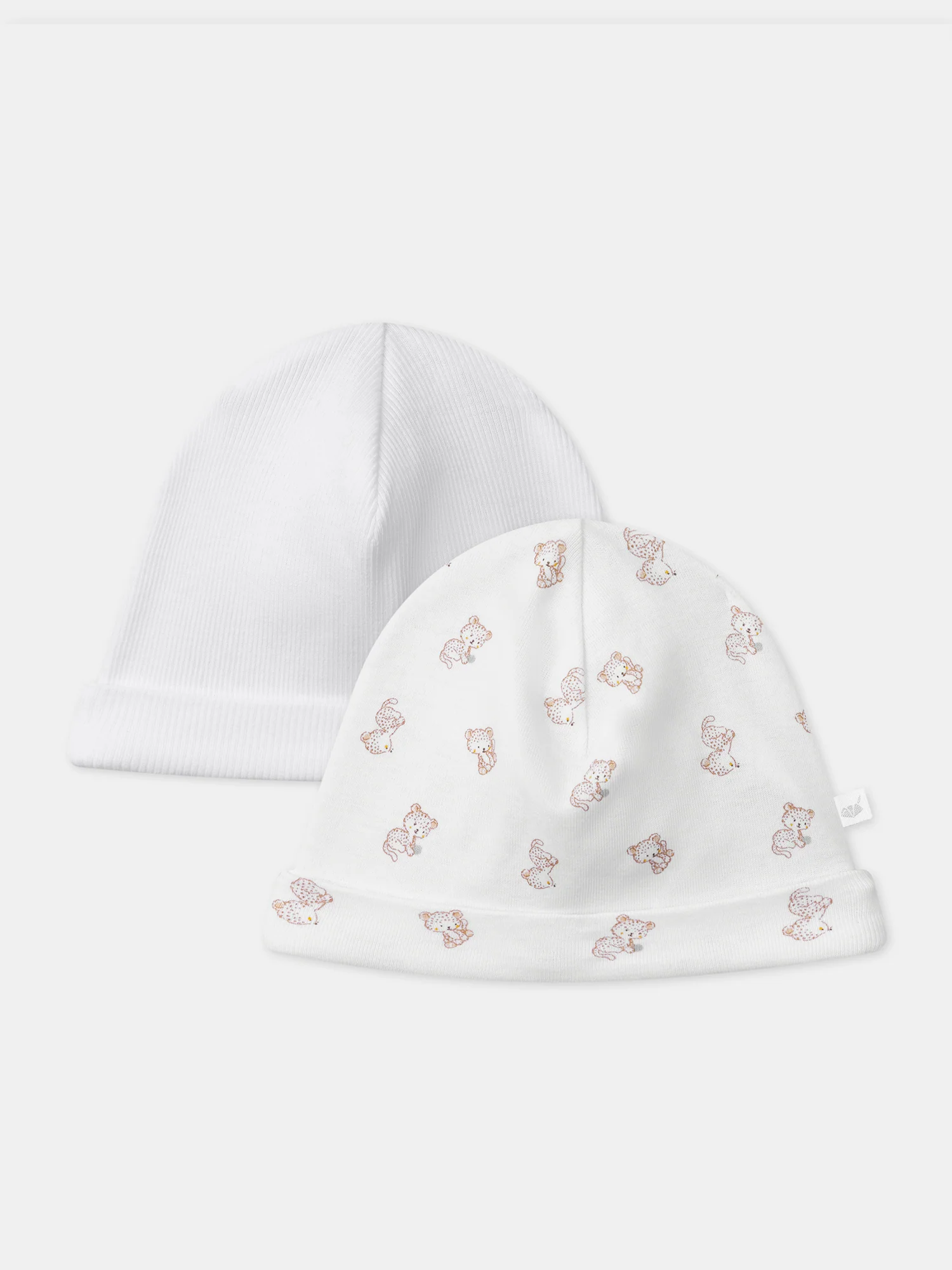 - Lot de 2 bonnets de naissance en coton issu de l’agriculture biologique