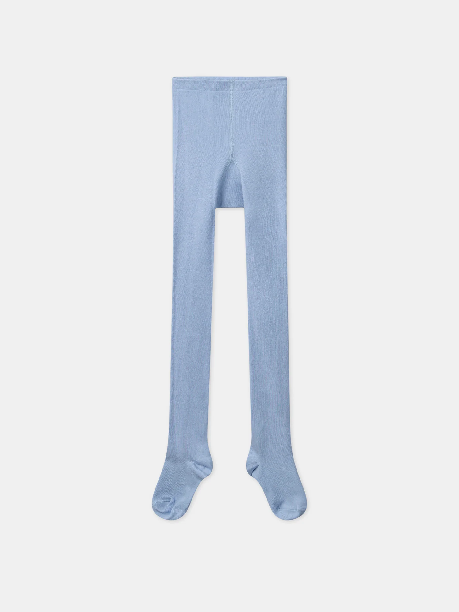 • Un collant couleur bleu ciel, tresse de fleurs surle côté