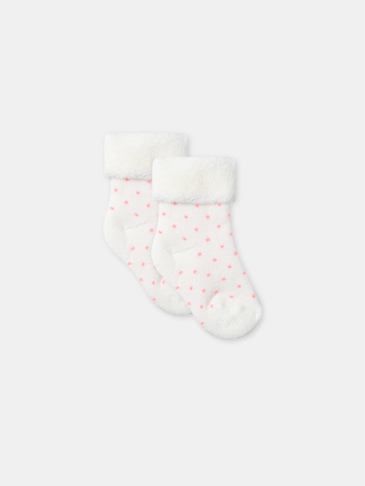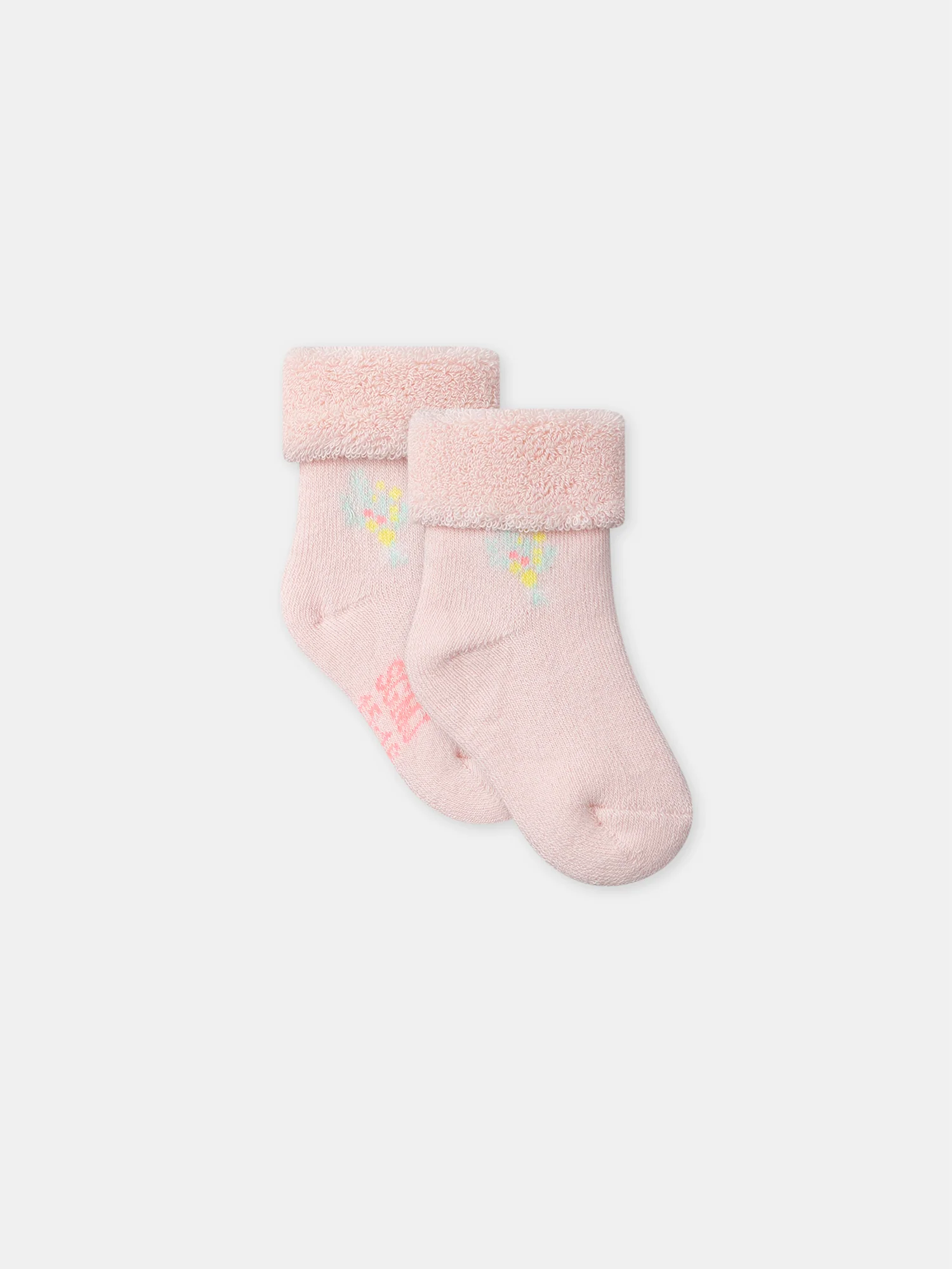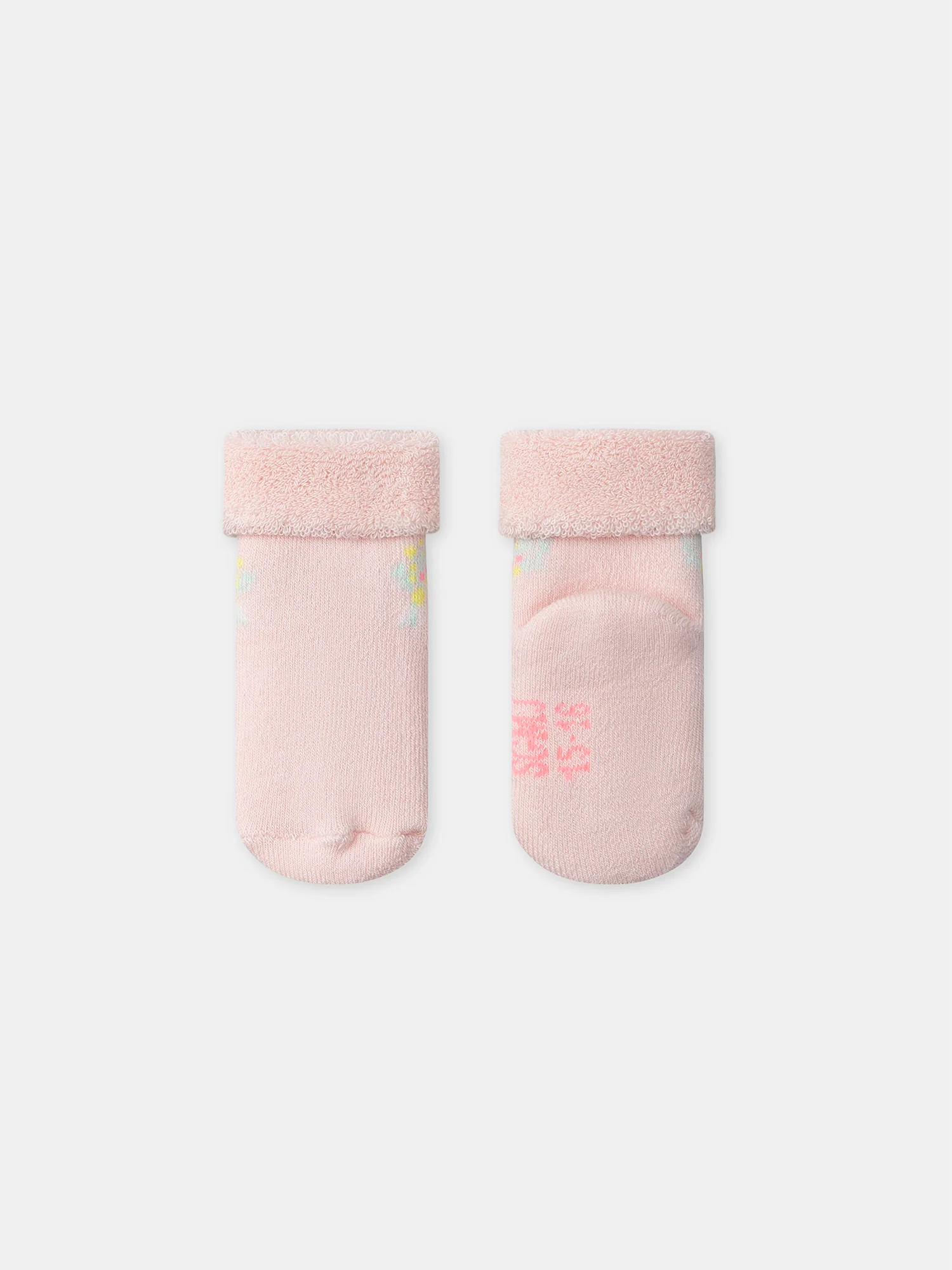 - Paire de chaussettes en bouclettes contenant du coton issu de l’agriculture biologique de couleur rose poudré