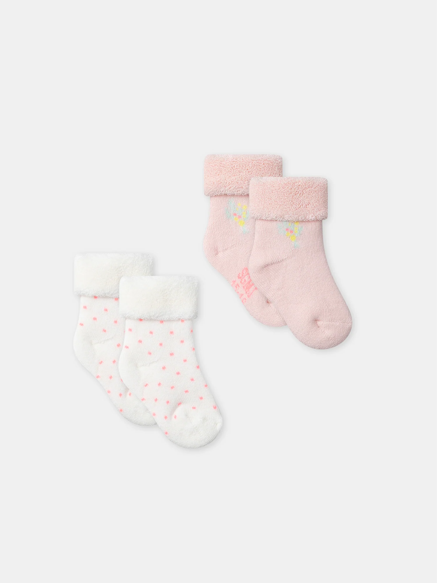 Lot de 2 paires de chaussettes écrues ou roses Naissance Fille