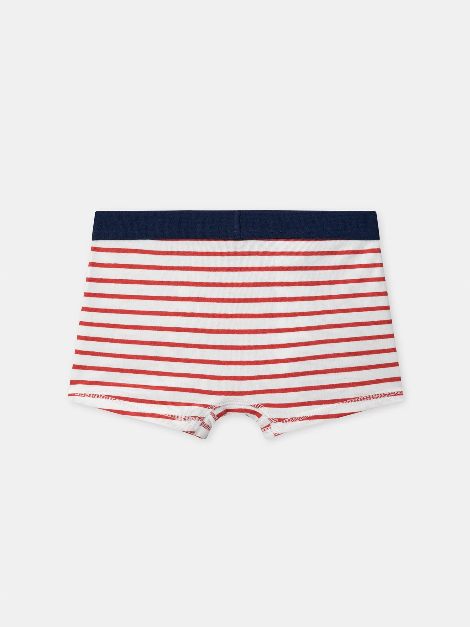 Pour les petits marins en herbe à l’aise en toutes saisons. La coupe boxer assure maintien et douceur au quotidien. Voiliers, rayures rouges et coloris marine composent un univers bord de mer simple et classique.