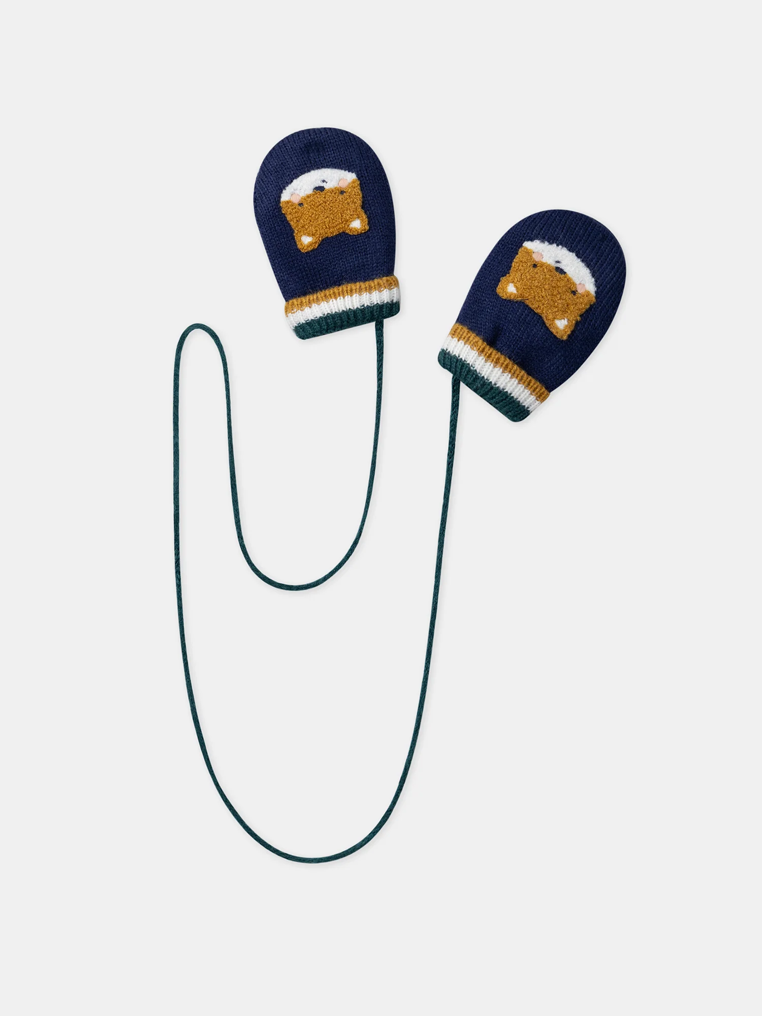Broderie bouclette renard sur le devant RIB tricolore Doublure fine polarie Moufle relier par un lien Nouveauté : une boucle ingénieuse en bas de manche, ludique et pratique pour garder vos gants en sécurité afin d’éviter leur perte
