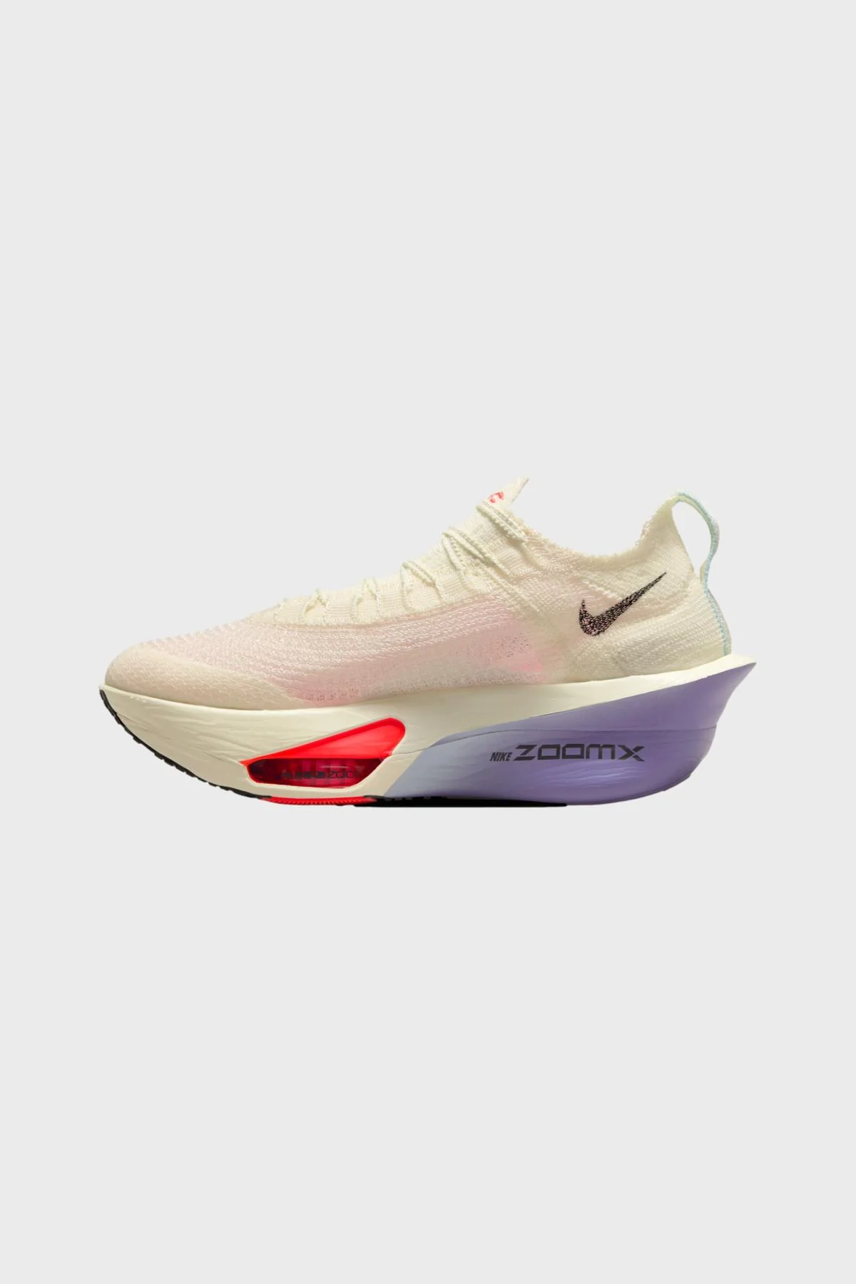- L’Alphafly la plus légère à ce jour. La plaque en fibre de carbone est un peu plus large pour plus de stabilité. La semelle intermédiaire en mousse ZoomX entièrement connectée crée des transitions naturelles. Et la nouvelle empeigne Atomknit assure une respirabilité parfaite et un maintien multidirectionnel.