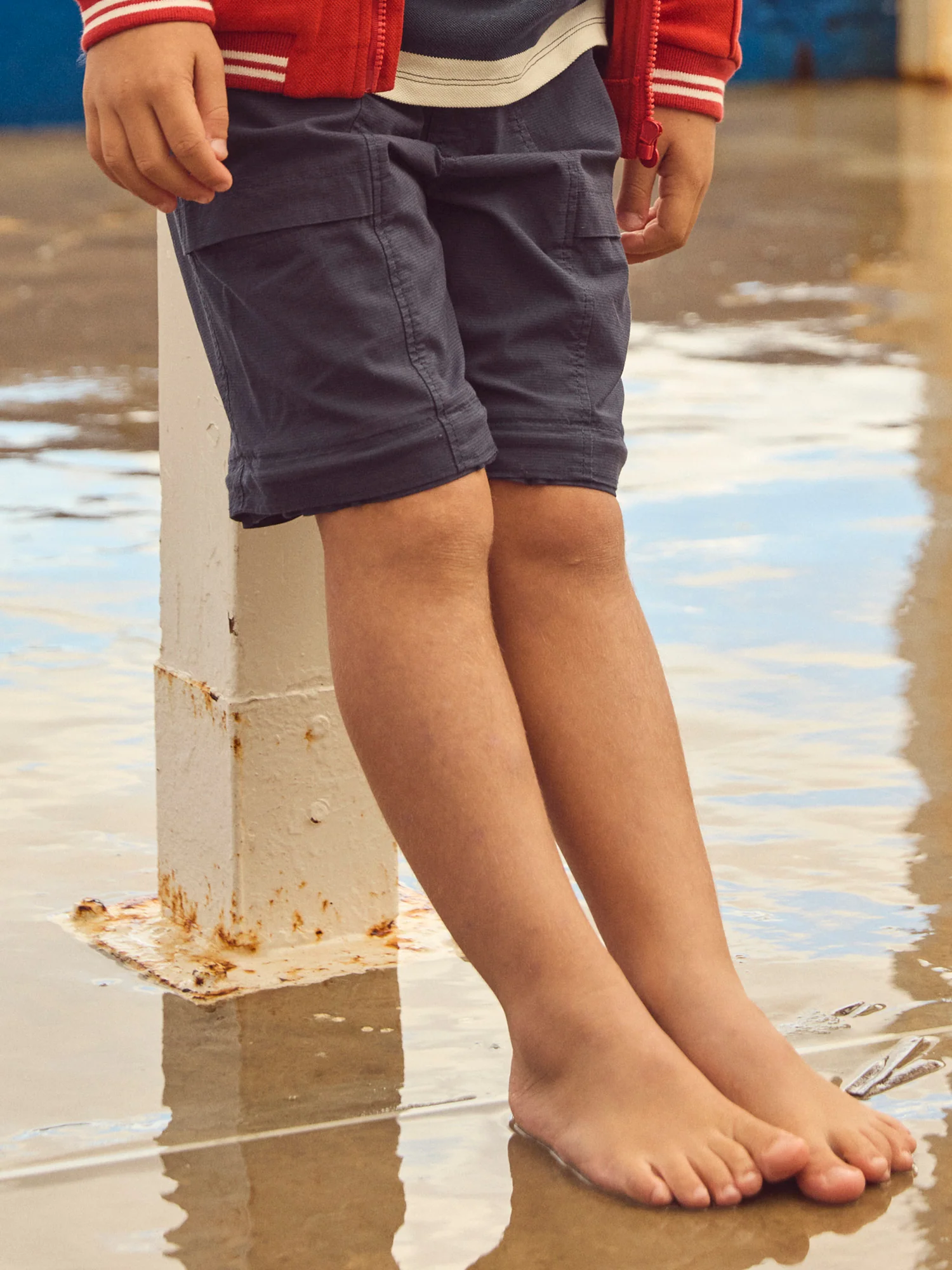 Pour les enfants dynamiques, ce pantalon modulable bleu marine convient au printemps et été. Taille élastiquée avec coupe large pour confort. La possibilité de transformer le pantalon en short et les poches multiples ajoutent style et praticité.