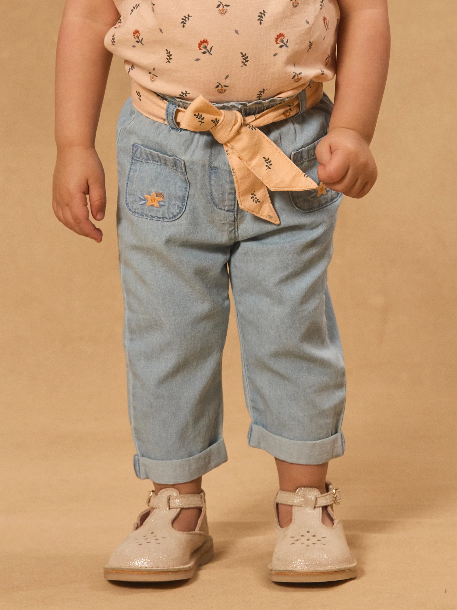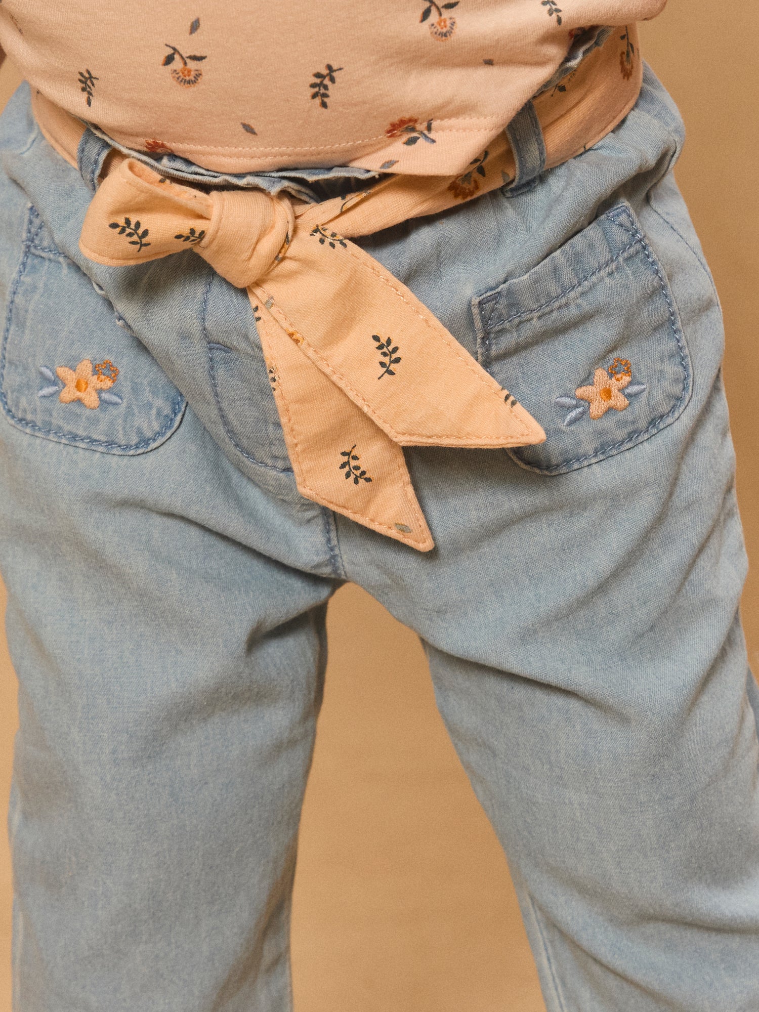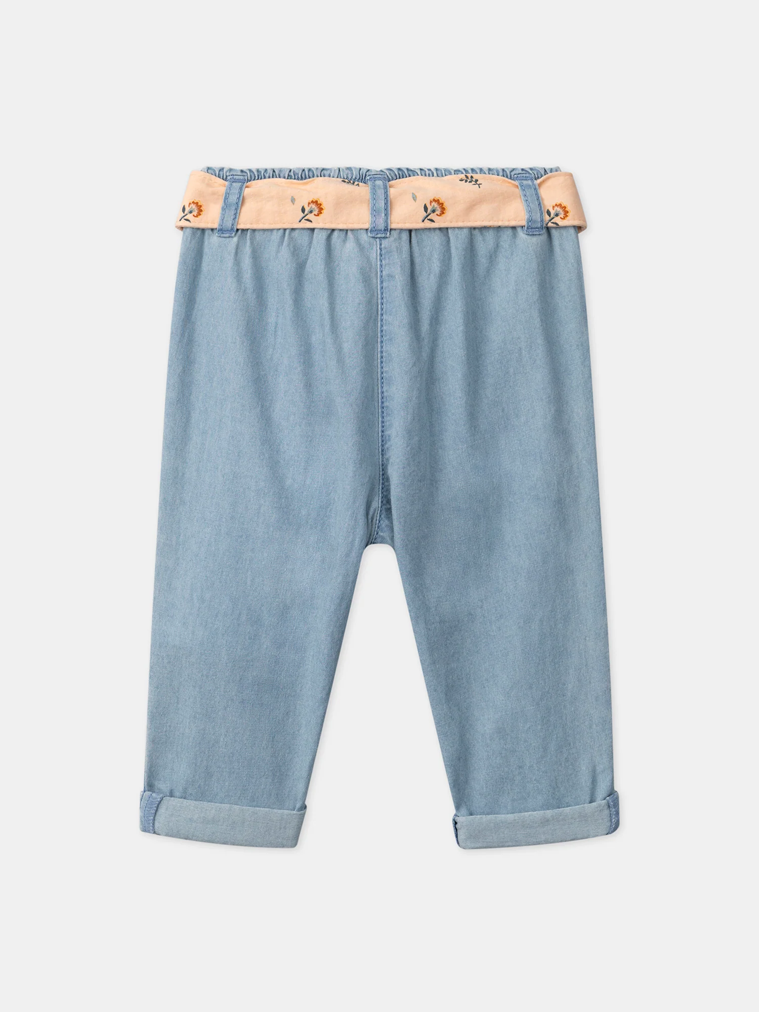 Pantalon en denim ceinture fleuri