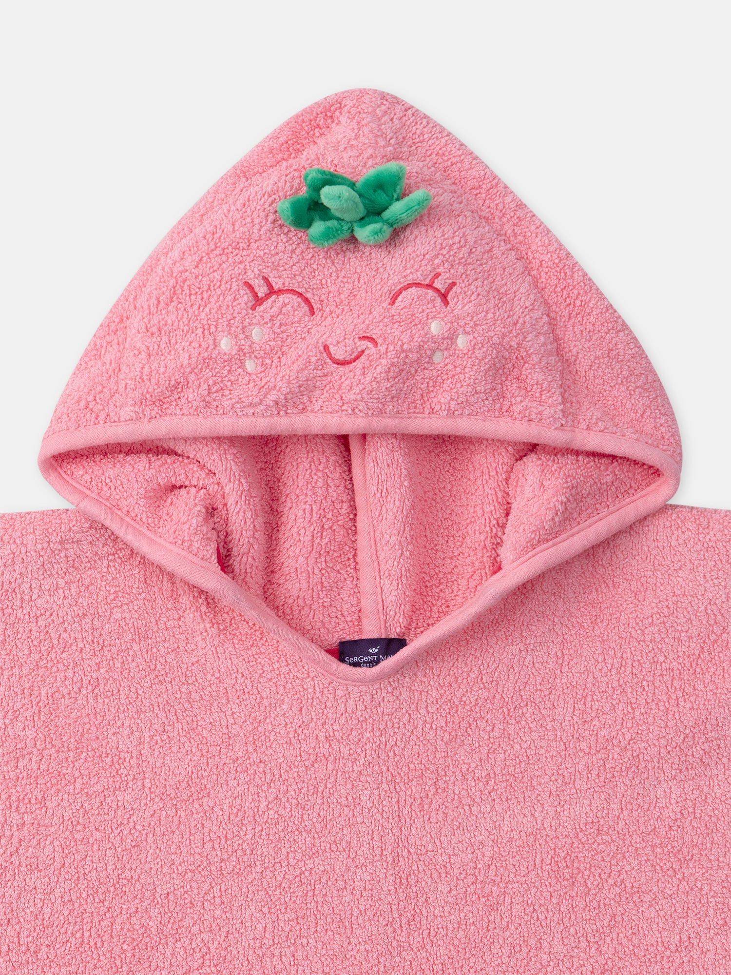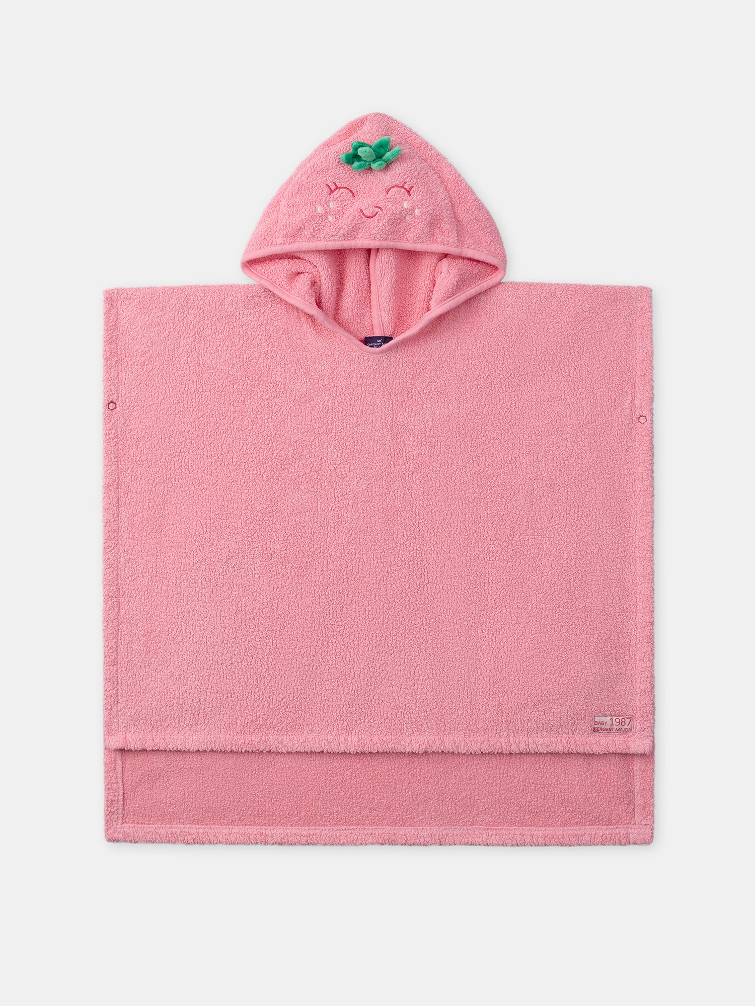 Capuche avec broderie visage fraise Boutons pressions sur les côtés pour former des manches Boutons pressions sur les côtés