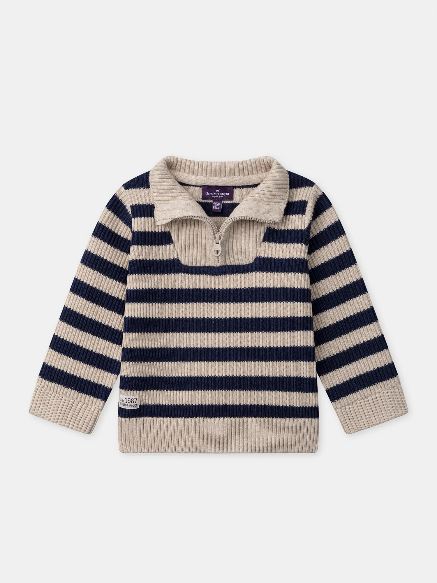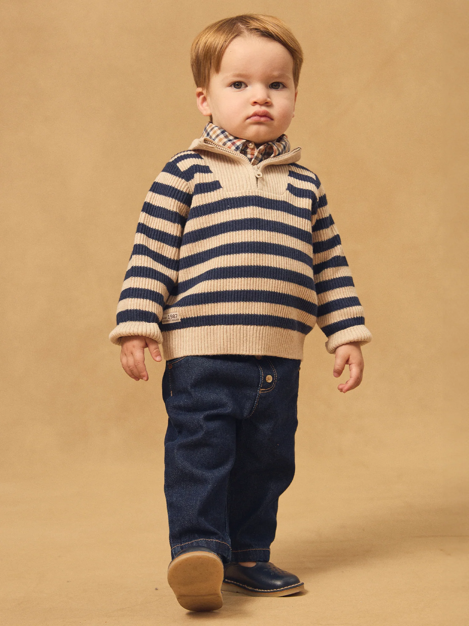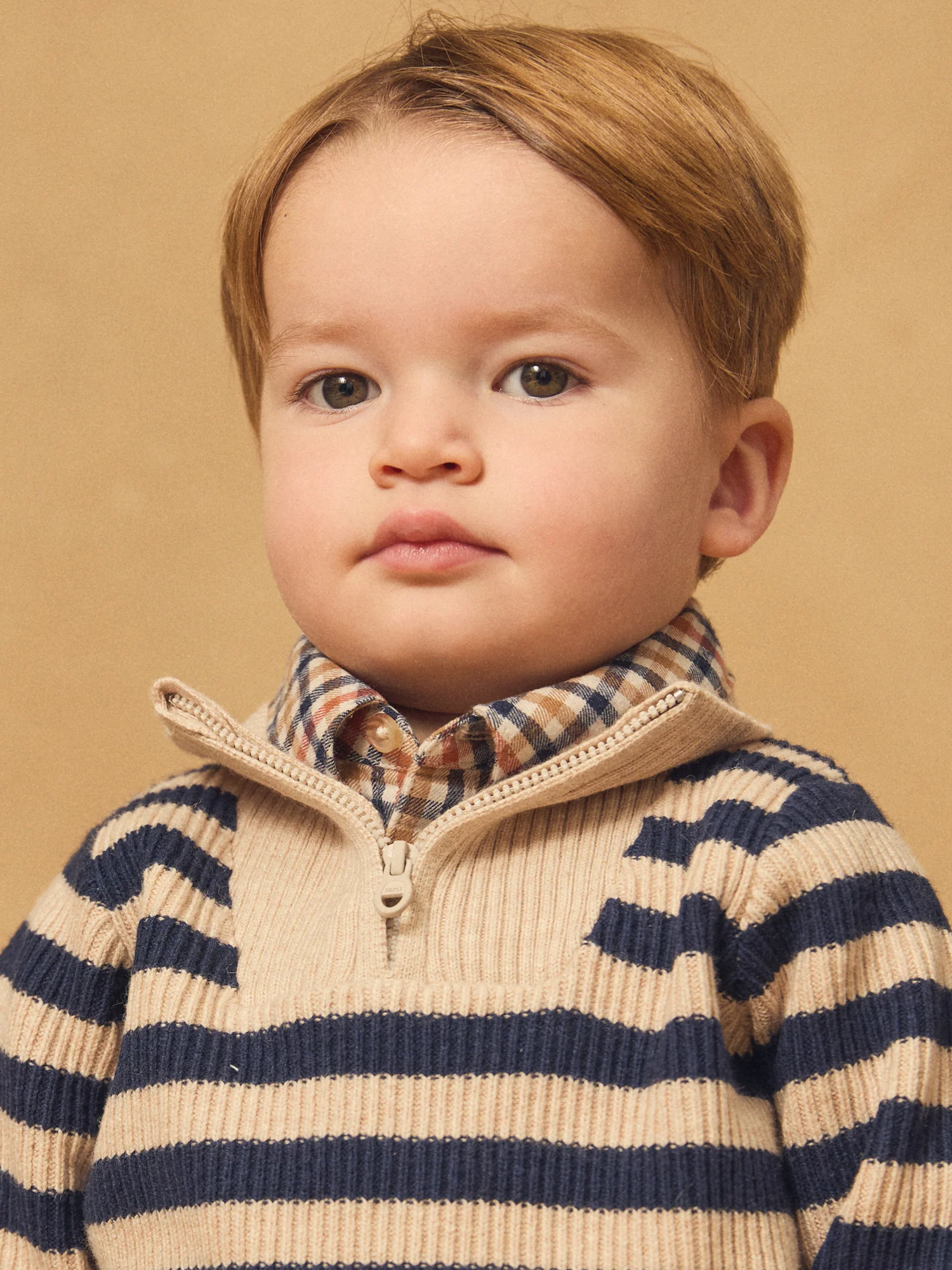 Pull écru à rayures bleu foncé demi-zip et col Bébé Garçon