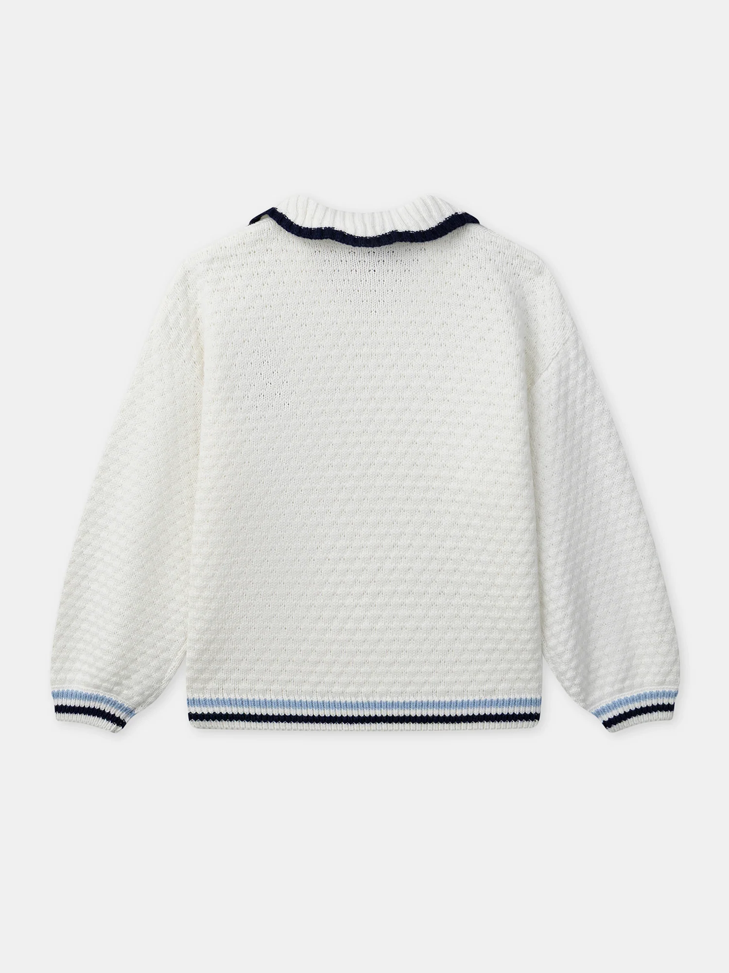 Conçu pour les petites élégantes des saisons fraîches, ce pull blanc en maille offre chaleur et douceur. Ses manches longues assurent un confort optimal. Les rayures aux bas des manches et du vêtement apportent une touche délicate et moderne. Bas de manches et de vêtement rayé Ce produit appartient à la collection Déjeuner à Montmartre