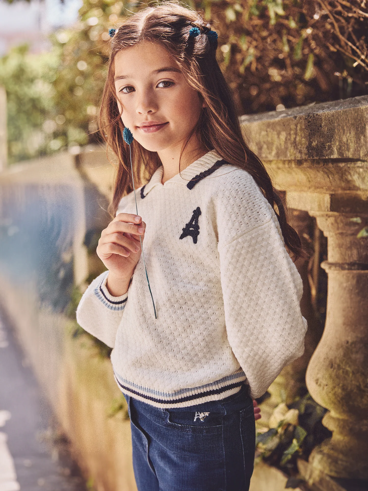 Conçu pour les petites élégantes des saisons fraîches, ce pull blanc en maille offre chaleur et douceur. Ses manches longues assurent un confort optimal. Les rayures aux bas des manches et du vêtement apportent une touche délicate et moderne.