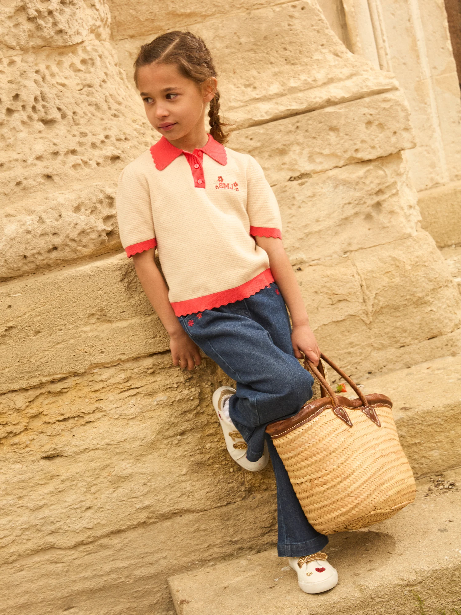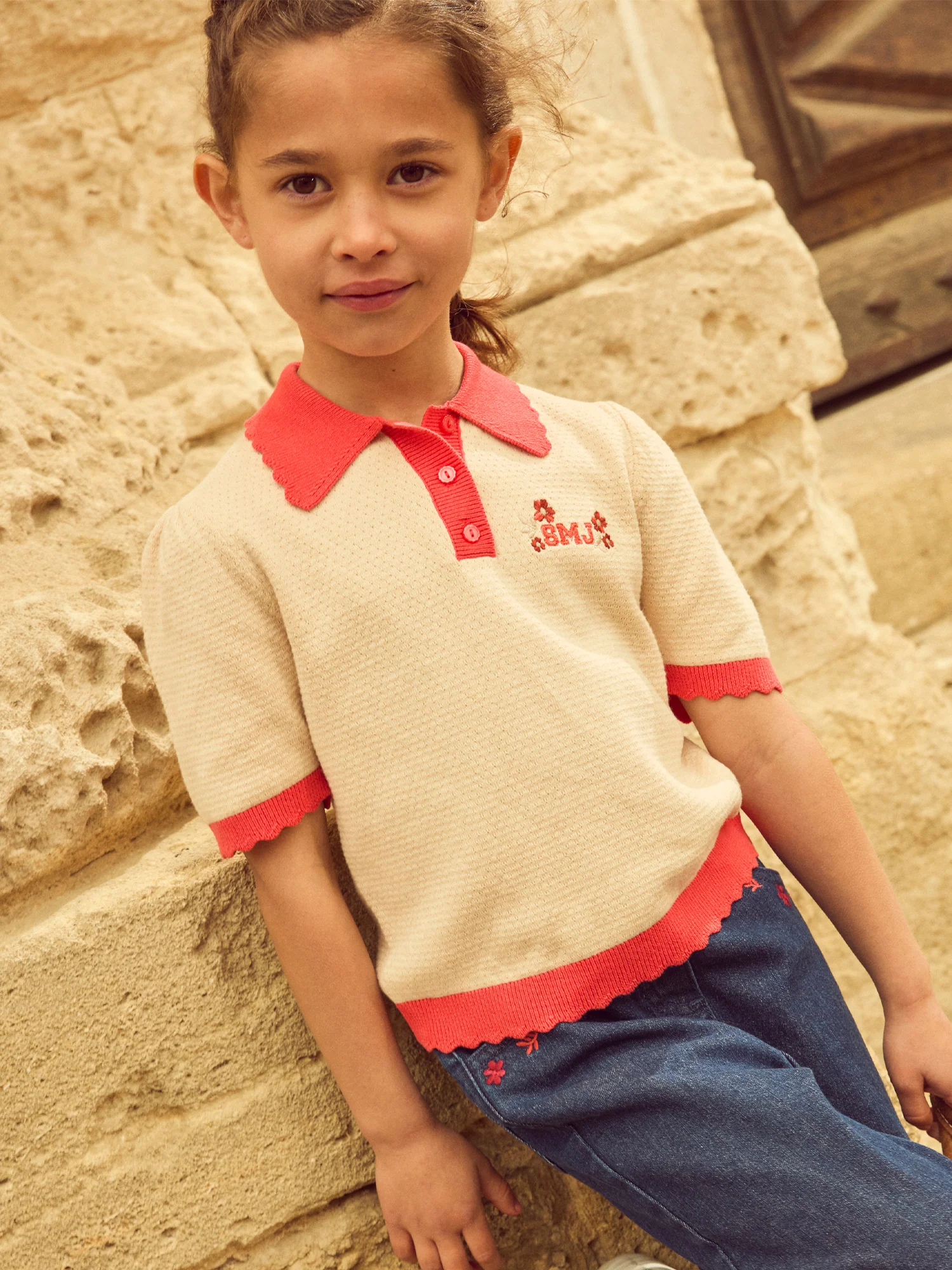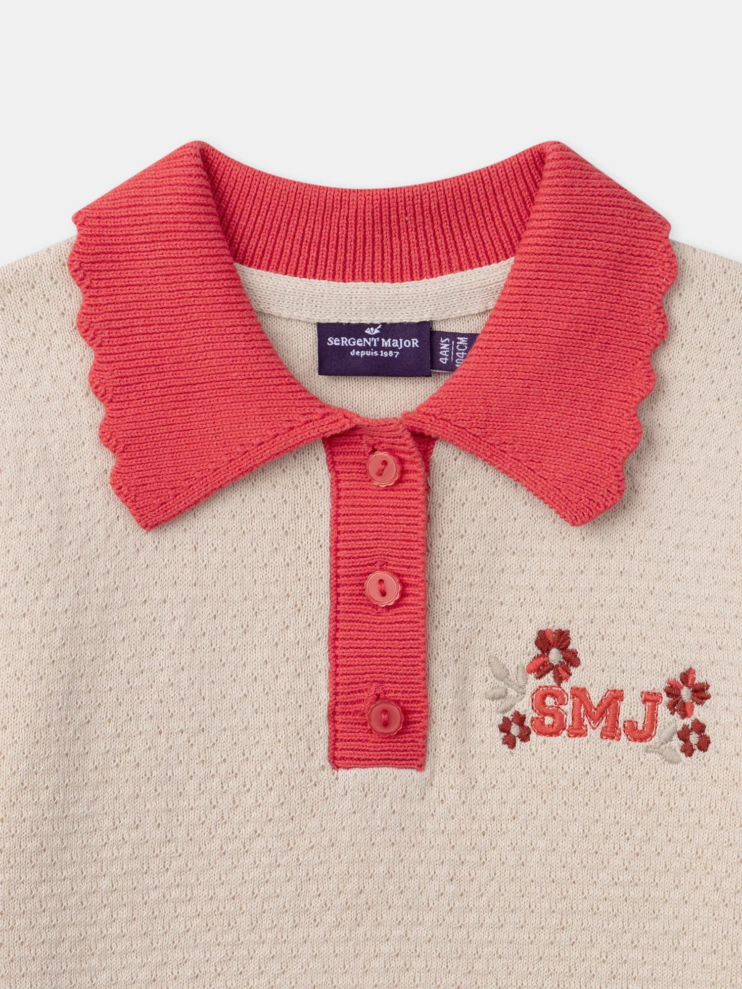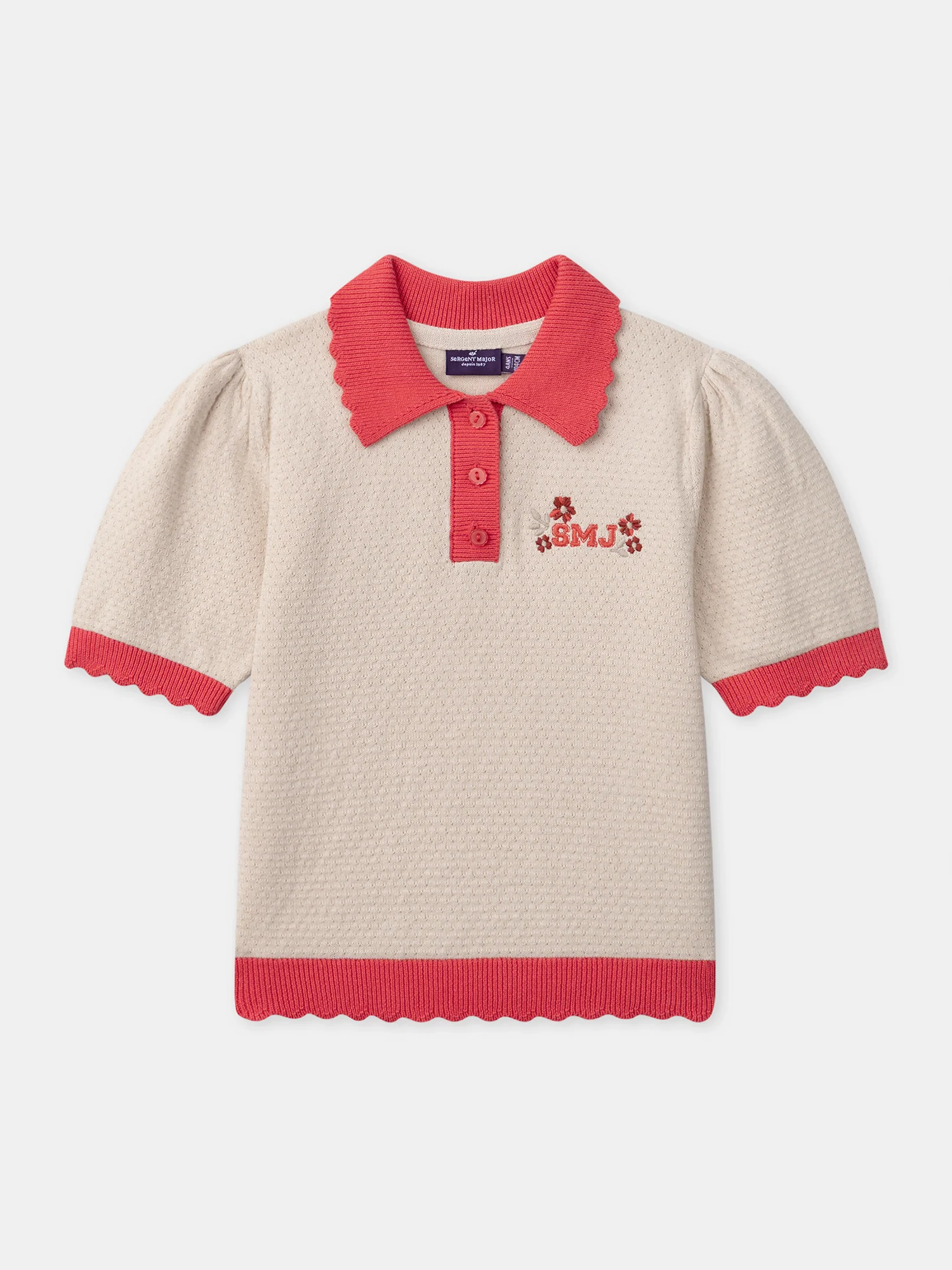 Finition coquille Manches ballon Broderies SMJ Boutons sur le devant
