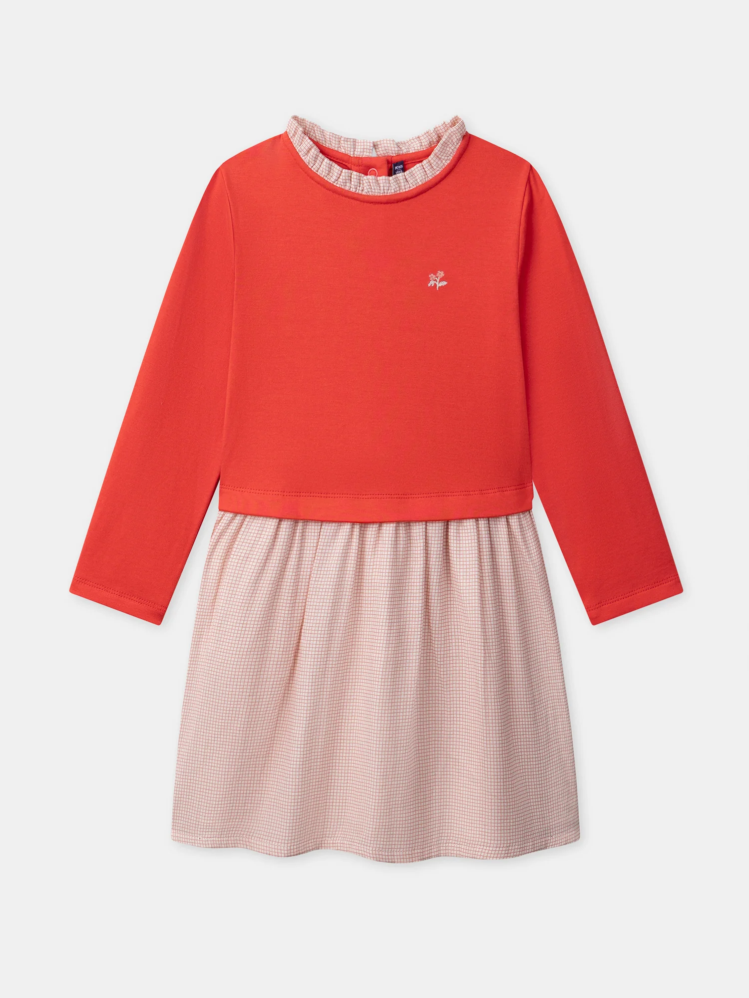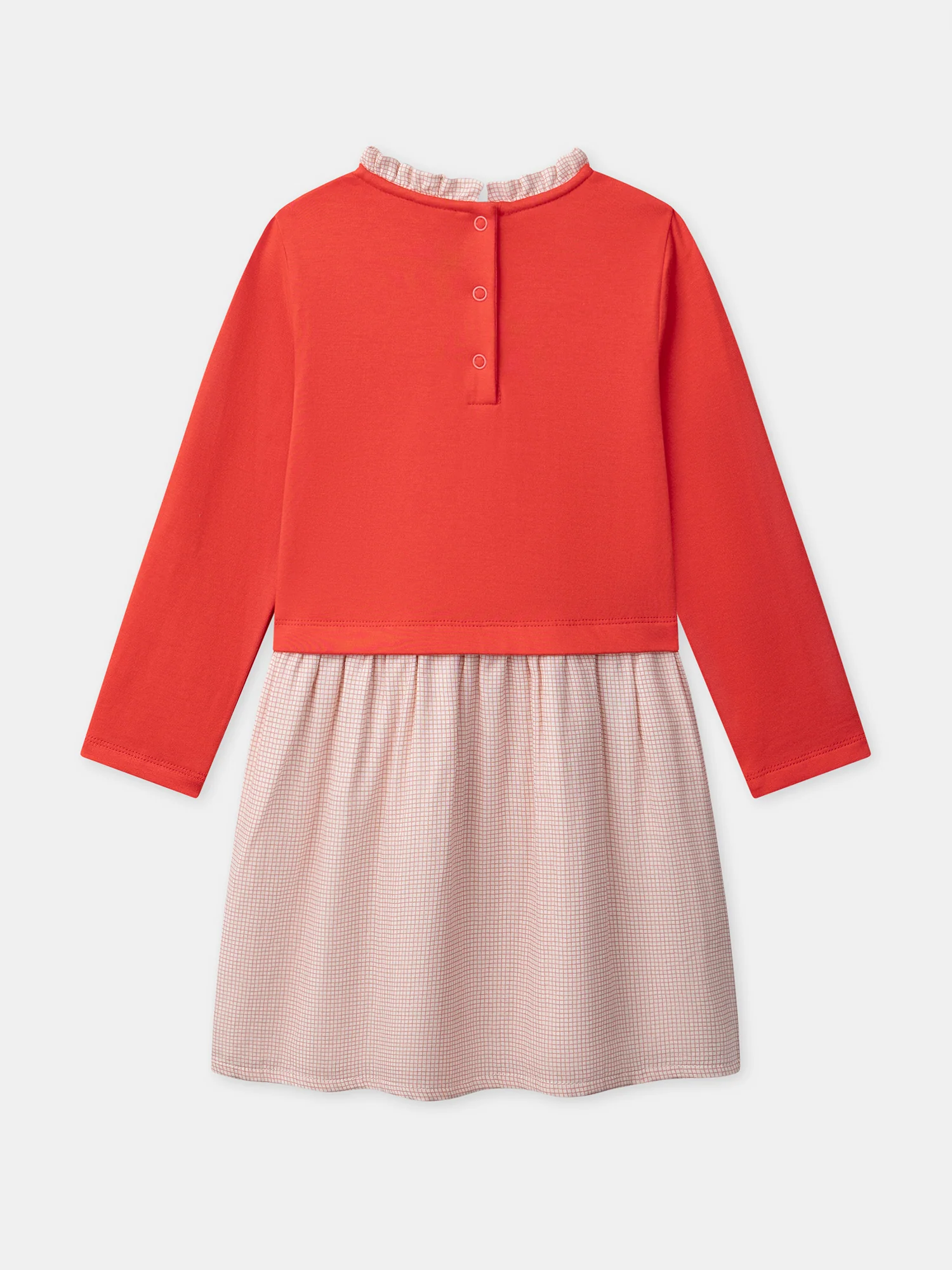 Robe bi-matière rose uni et à carreaux Fille