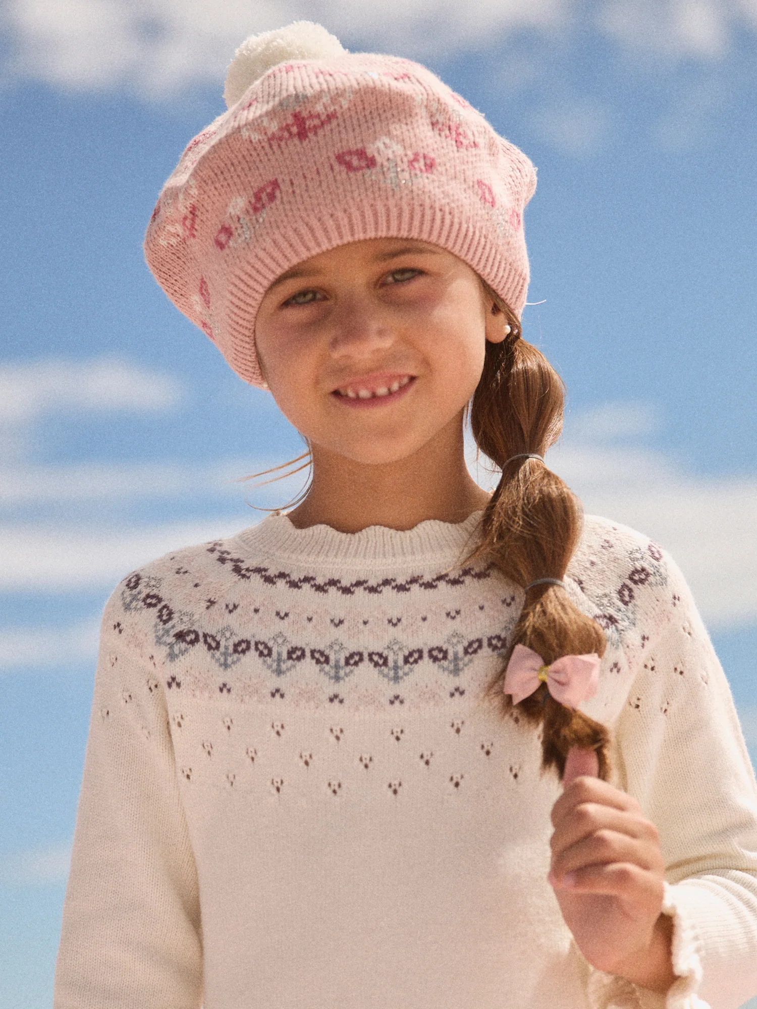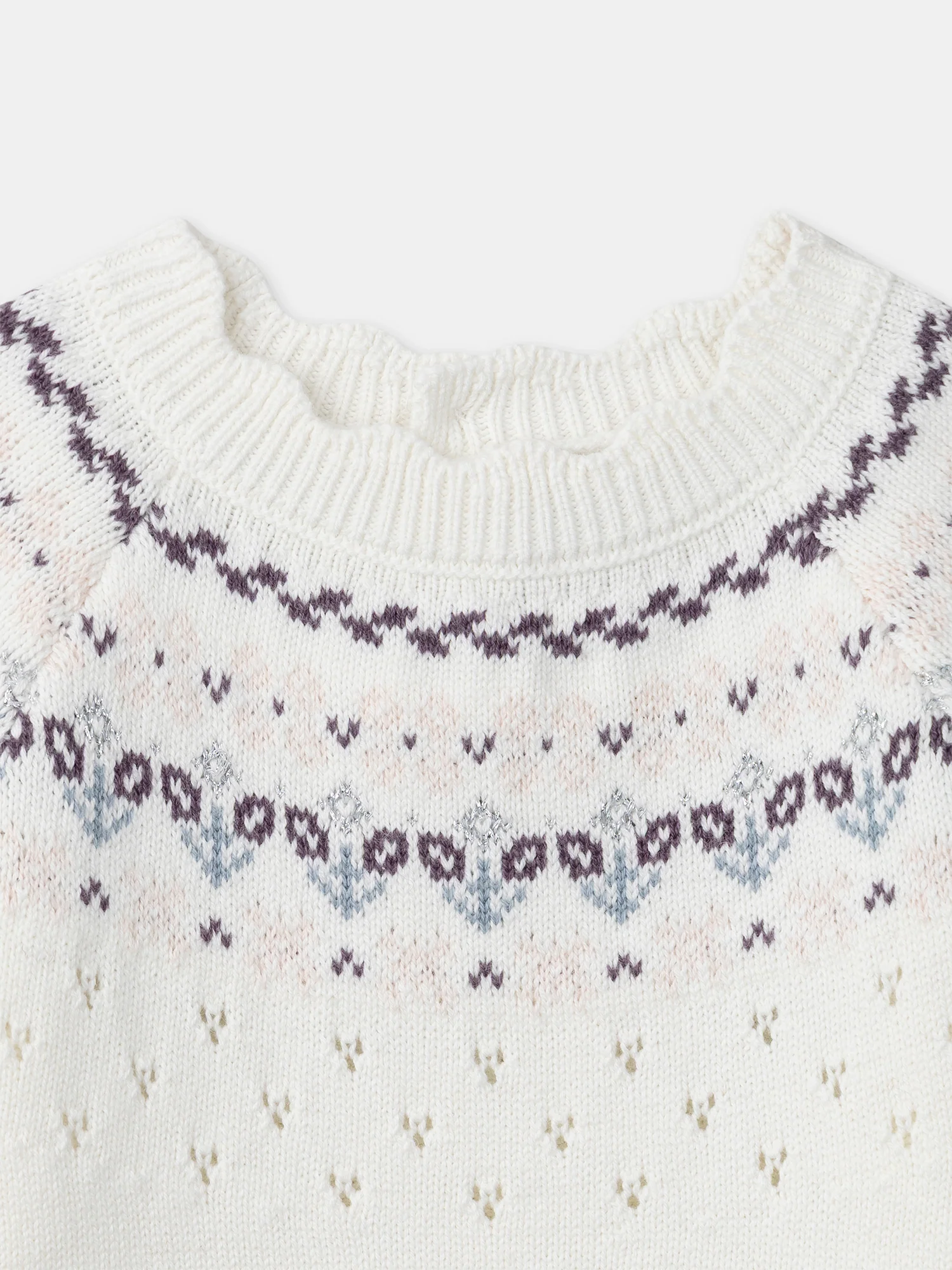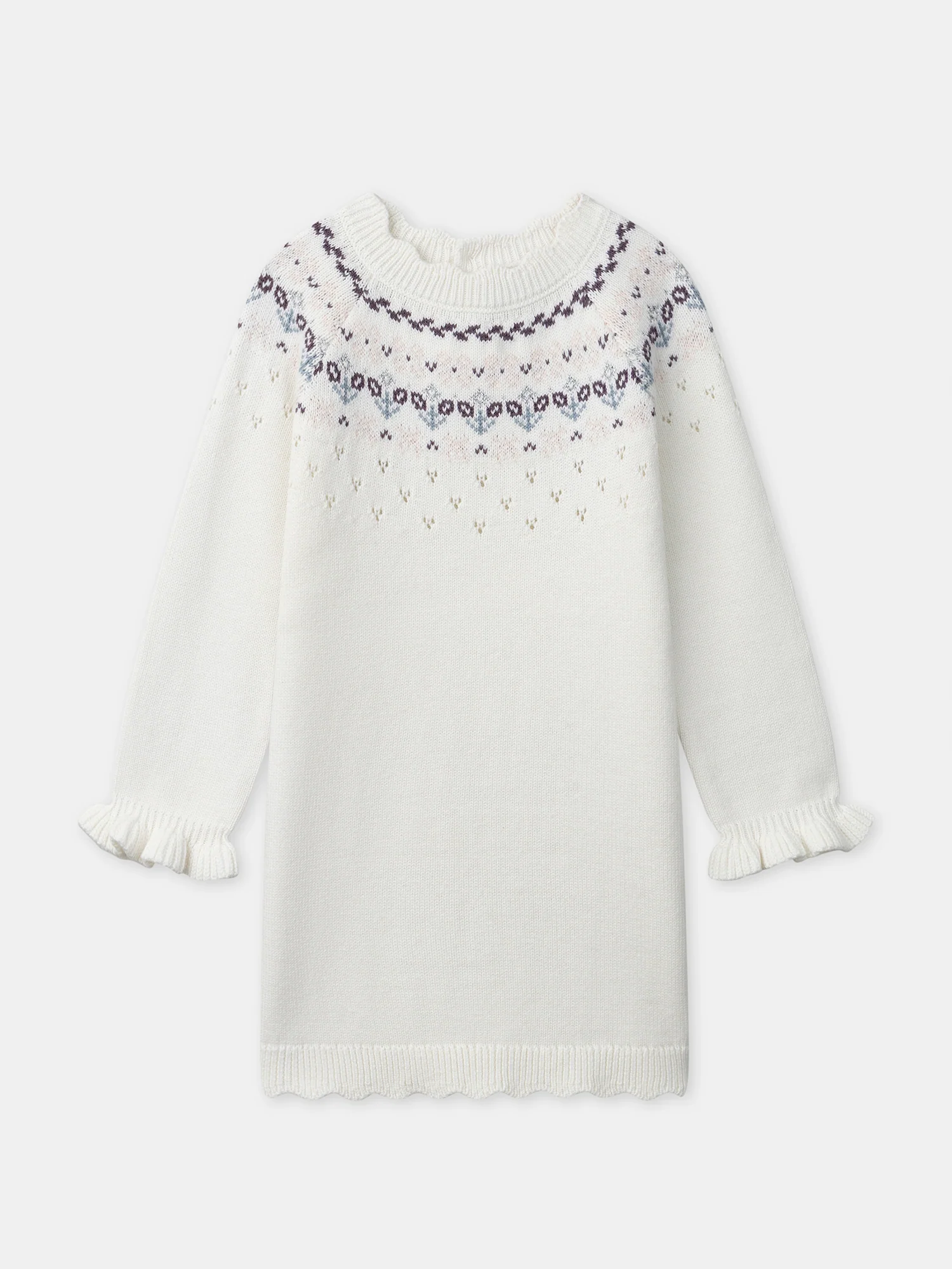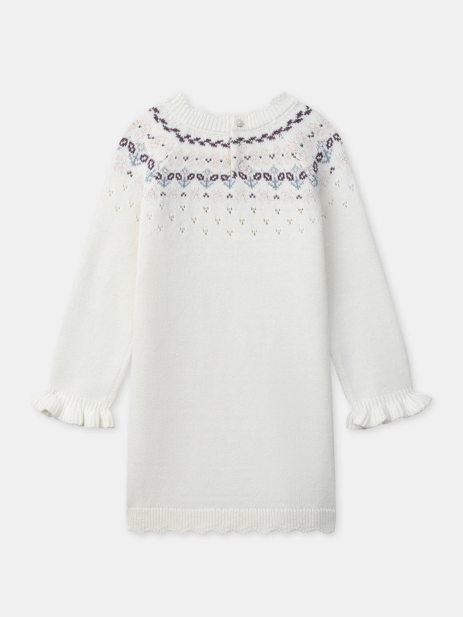 Pensée pour une petite fille dynamique en hiver, cette robe allie confort et chaleur. Tricotée en jacquard avec détails argentés, elle se ferme par des boutons au dos. Ses finitions coquille et manches resserrées lui donnent un style raffiné et festif.