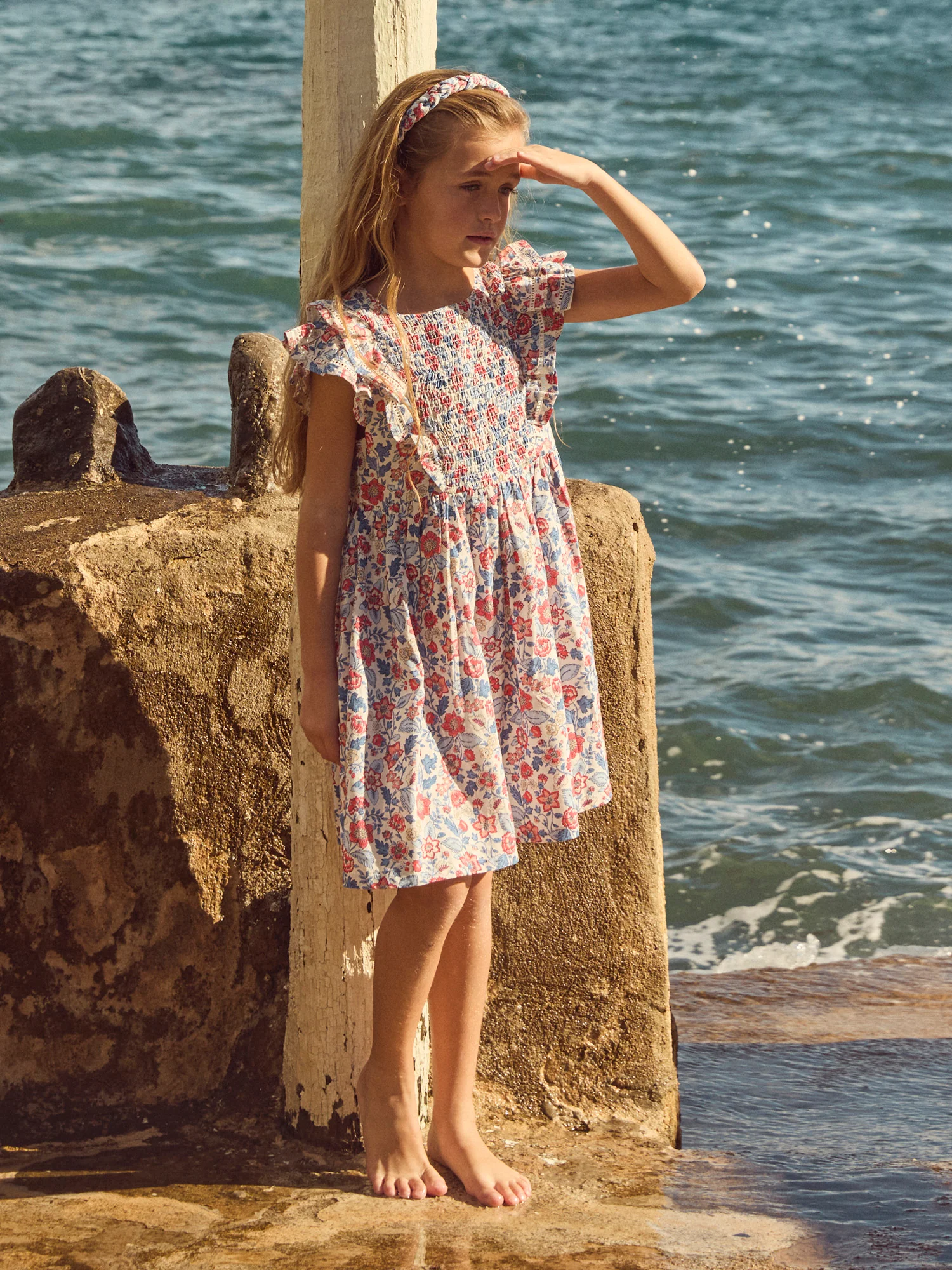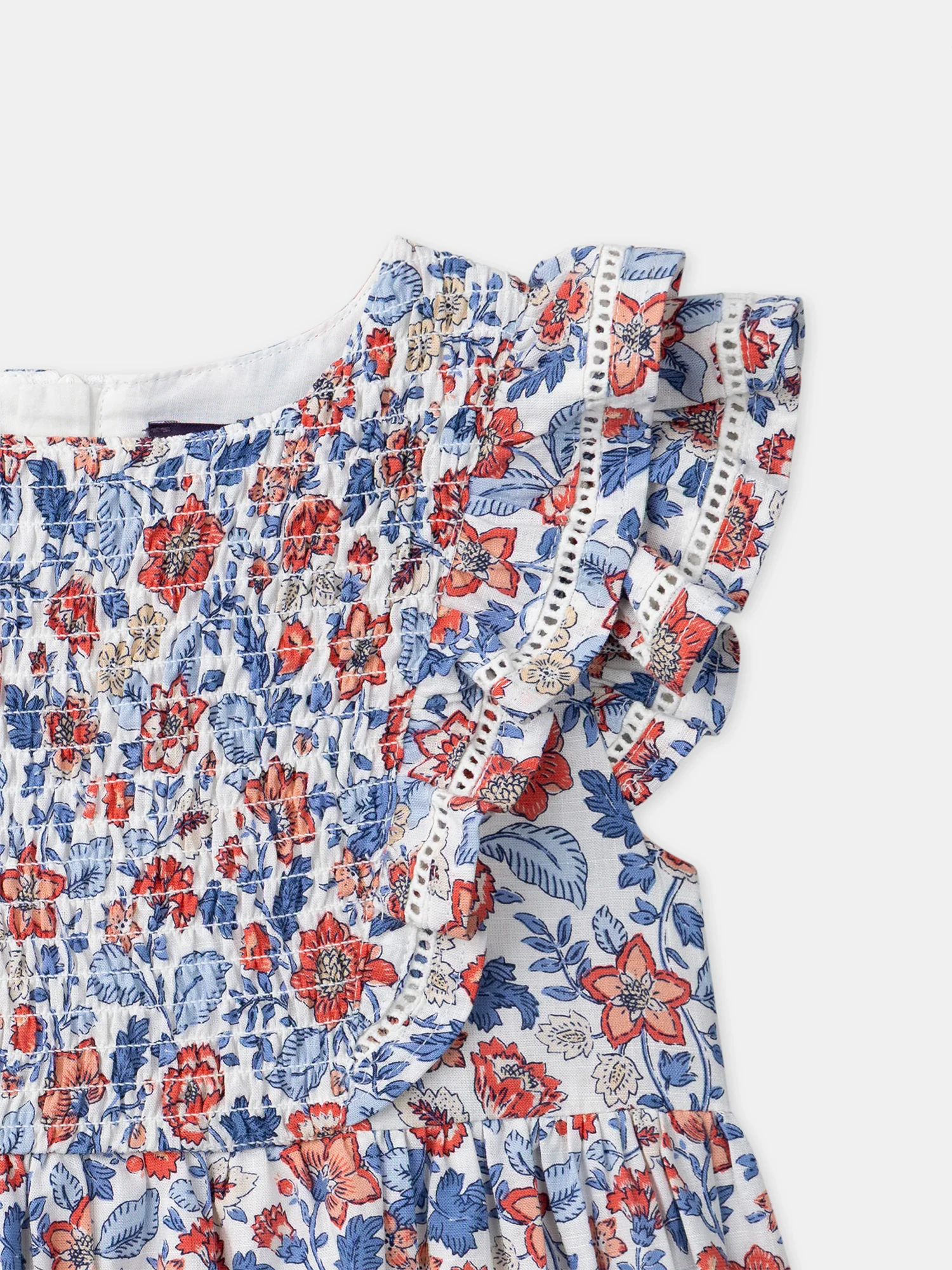 Parfaite pour les petites exploratrices du printemps et de l’été, cette robe légère offre liberté de mouvement. Confection en coton avec doublure pour plus de confort. Les volants aux emmanchures, smock à la poitrine et motifs fleuris créent un style délicat et joyeux.