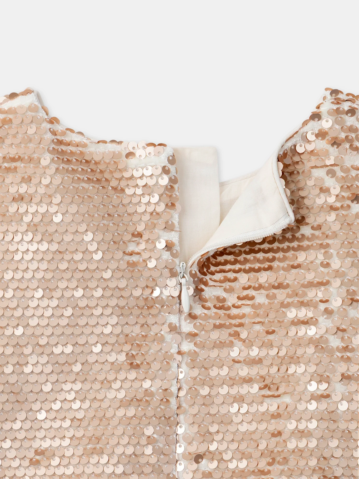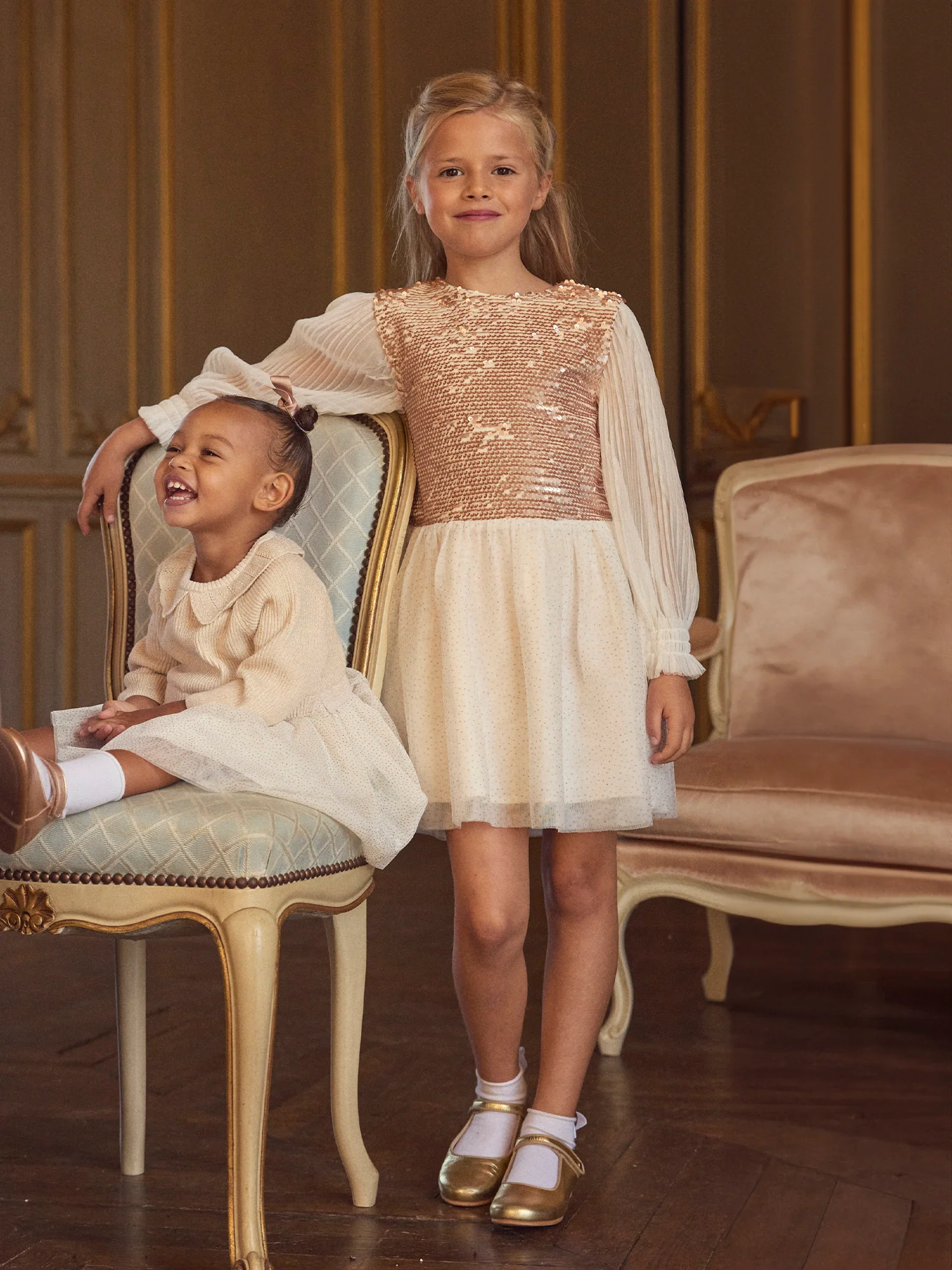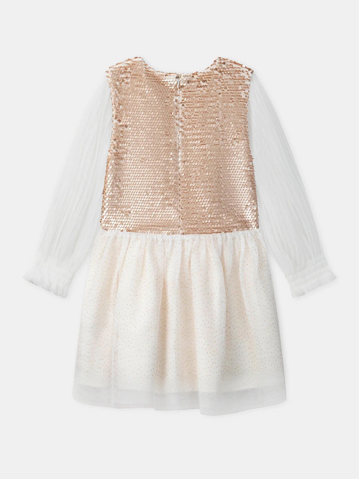 Robe Noël bi-matière écru à sequins et tulles Fille