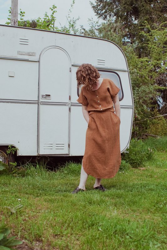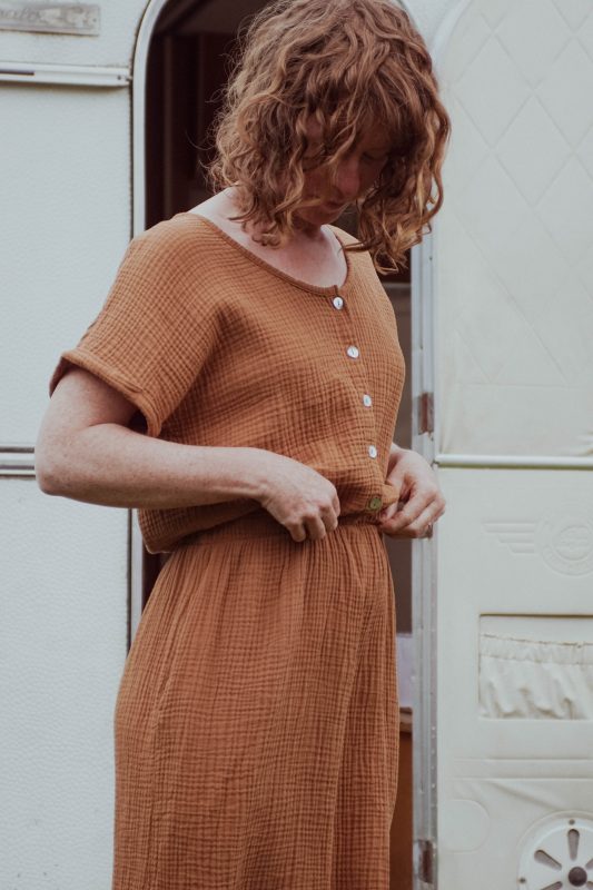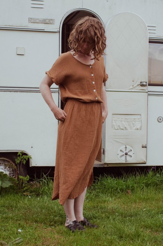 Une robe facile à vivre, facile à porter en toutes circonstances! Que ce soit au quotidien (avec des baskets, des sandales) ou pour des événements (avec des escarpins) A la fois féminine et super confortable, elle est parfaite même pendant ou après la grossesse. Elle met en valeur la silhouette grâce à son élastique à la taille. Elle est en double-gaze de coton bio tout doux: plus elle est froissée, plus elle est jolie 🙂 Elle a des poches sur les côtés, indispensables pour y mettre les mouchoirs de vos enfants, les trésors et autres tétines 😜 Et elle est…