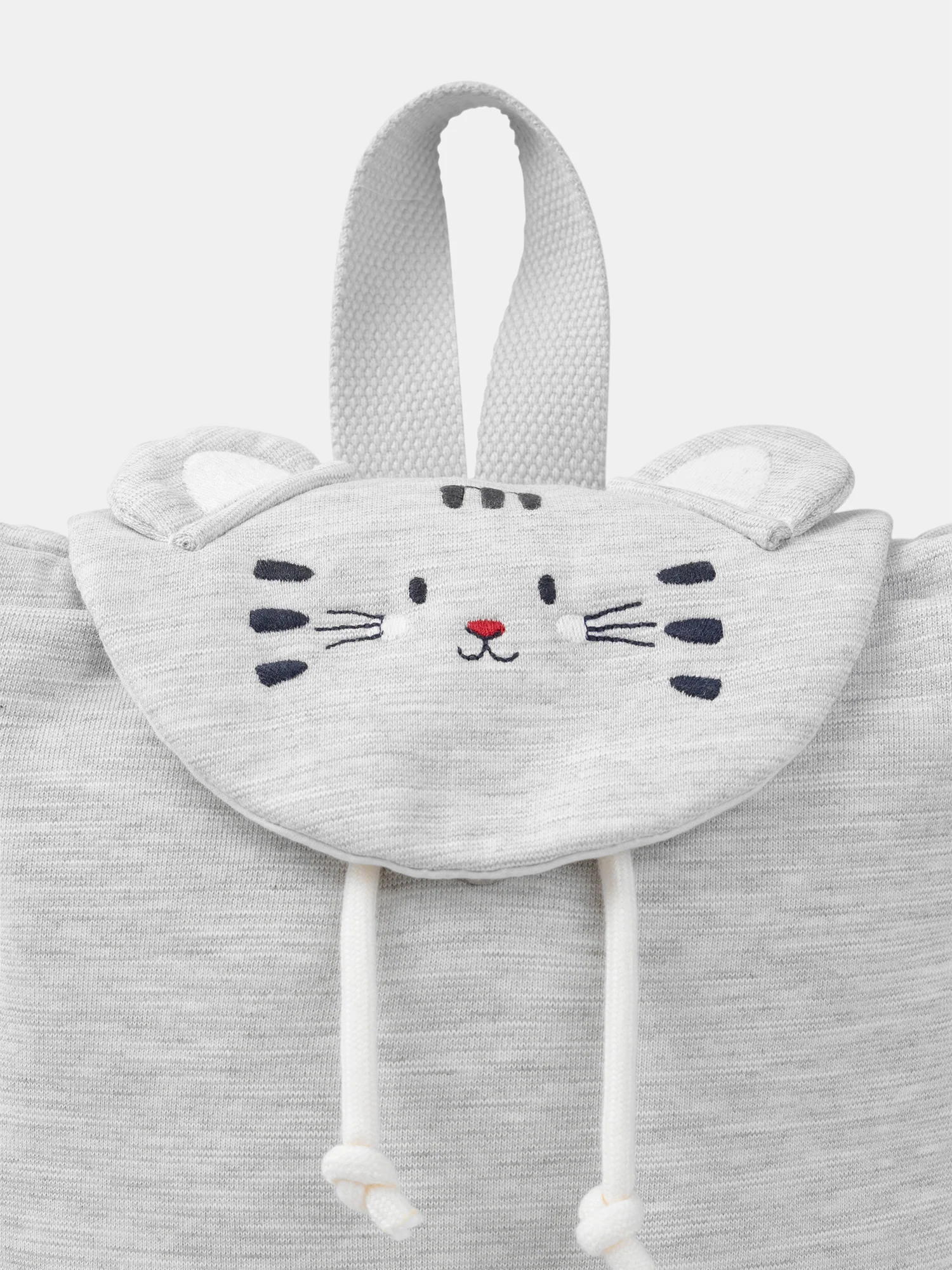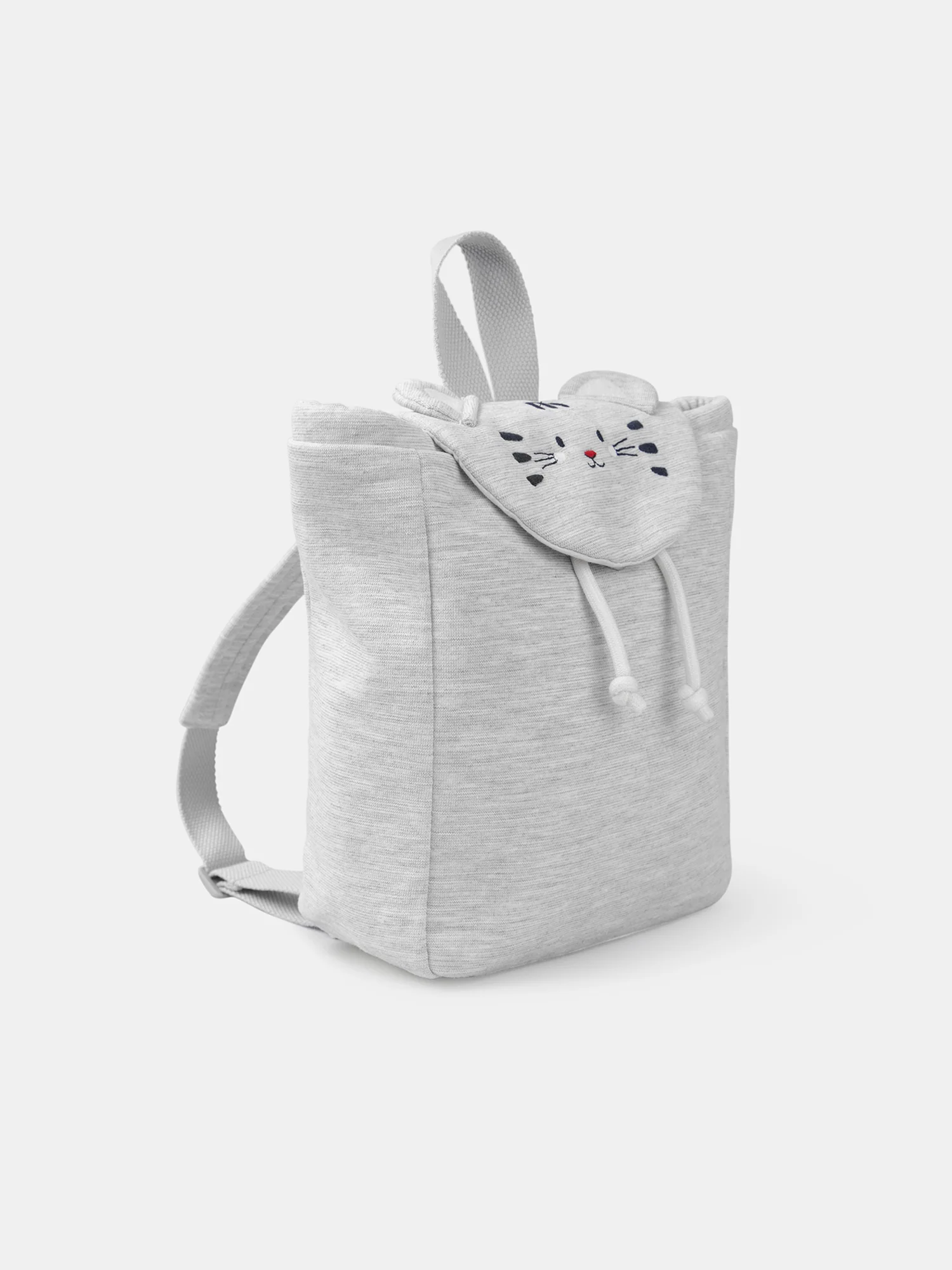 Ce sac à dos tête de chat gris chiné est à la fois pratique et mignon. La tête de chat brodée avec des oreilles 3D et les anses réglables en font un accessoire unique et fun. Avec ses liens de serrage et ses dimensions compactes (23,50x19x9cm), il est parfait pour transporter les petites affaires du quotidien.