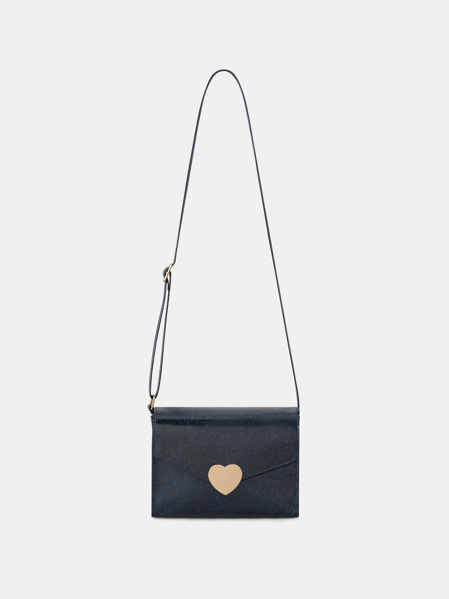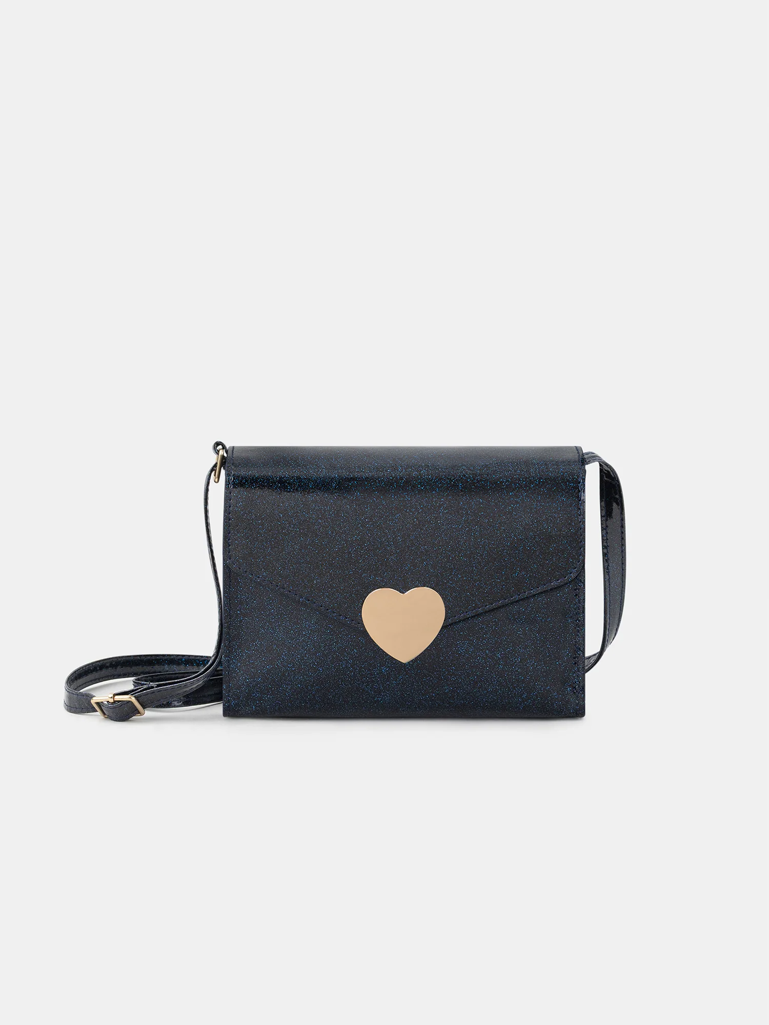 Conçu pour les occasions festives, ce sac accompagne les enfants en hiver. Sa matière pailletée marine est rehaussée d’un rabat avec fermoir cœur doré. La bandoulière réglable permet un porté pratique et adapté.