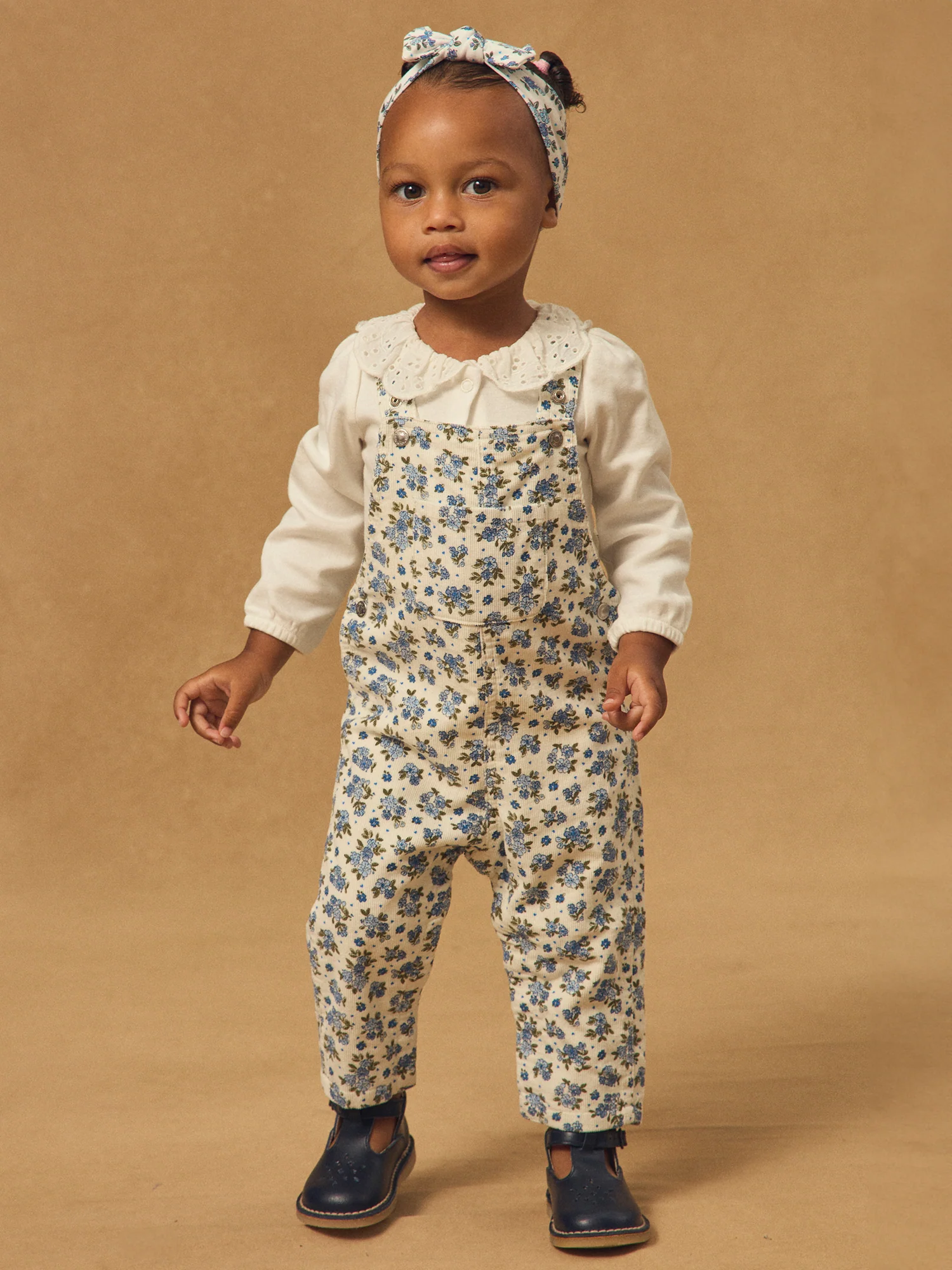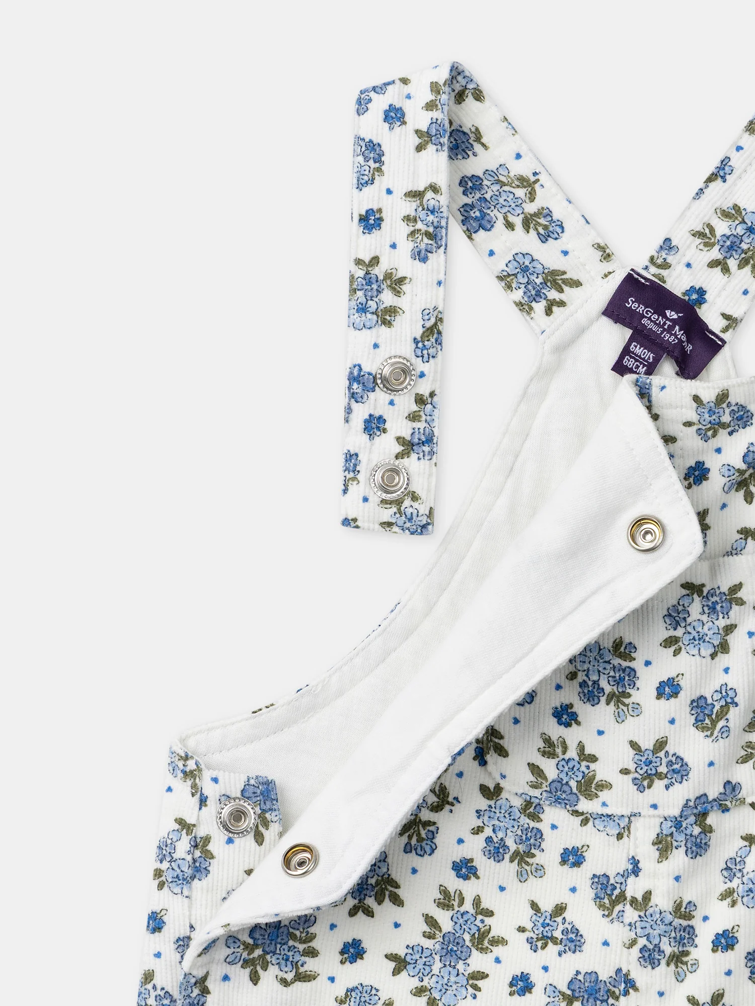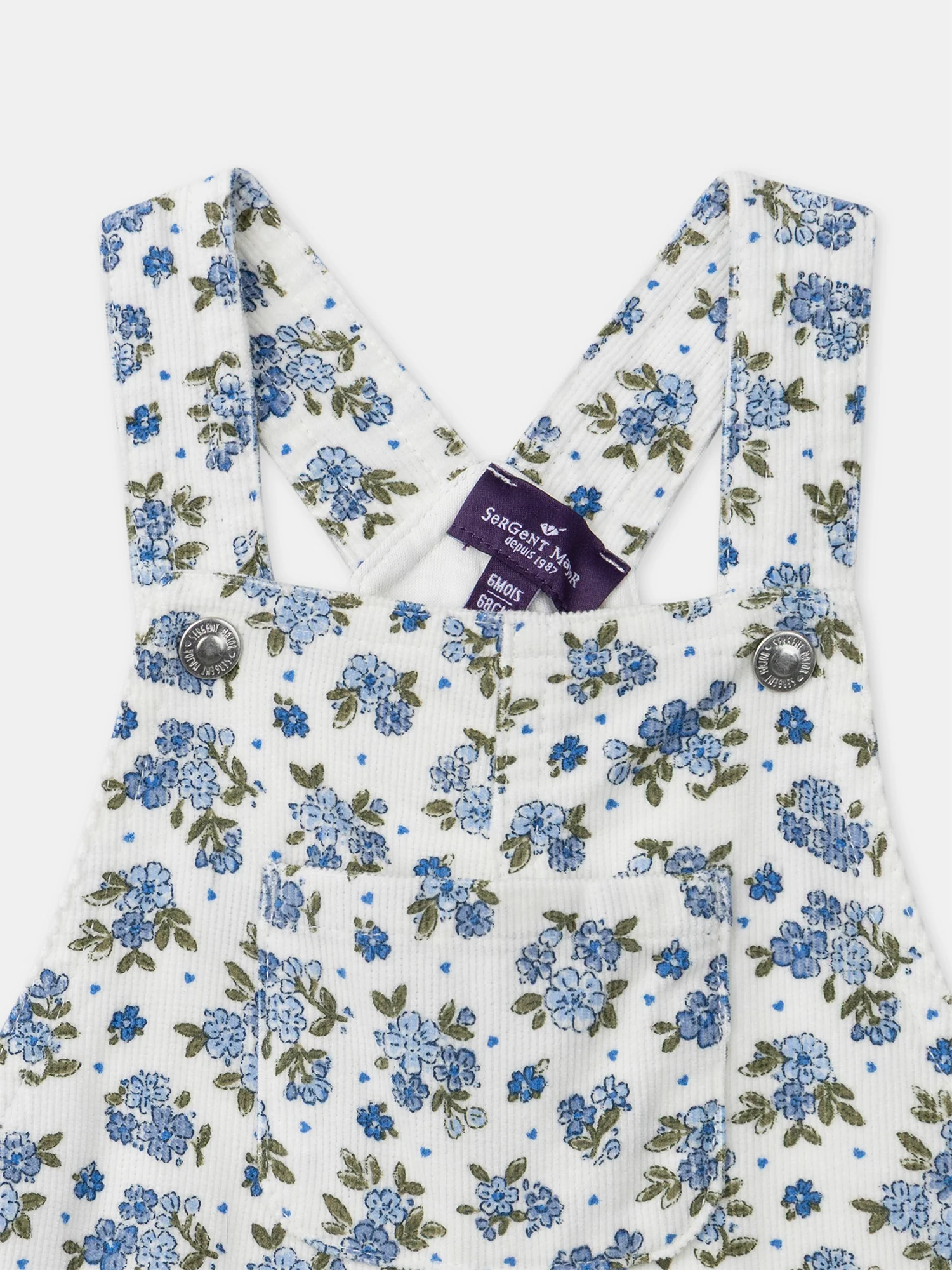 Pour les petites exploratrices du printemps, cette salopette combine liberté de mouvement et touche florale. Conçue en coton doux, elle est dotée de bretelles ajustables, d’une ouverture pratique à la taille et à l’entrejambe par boutons pression. Son imprimé fleuri bleu ciel et cobalt sur fond écru, associé à une poche poitrine et deux poches dos, lui donne un charme à la fois rétro et frais.