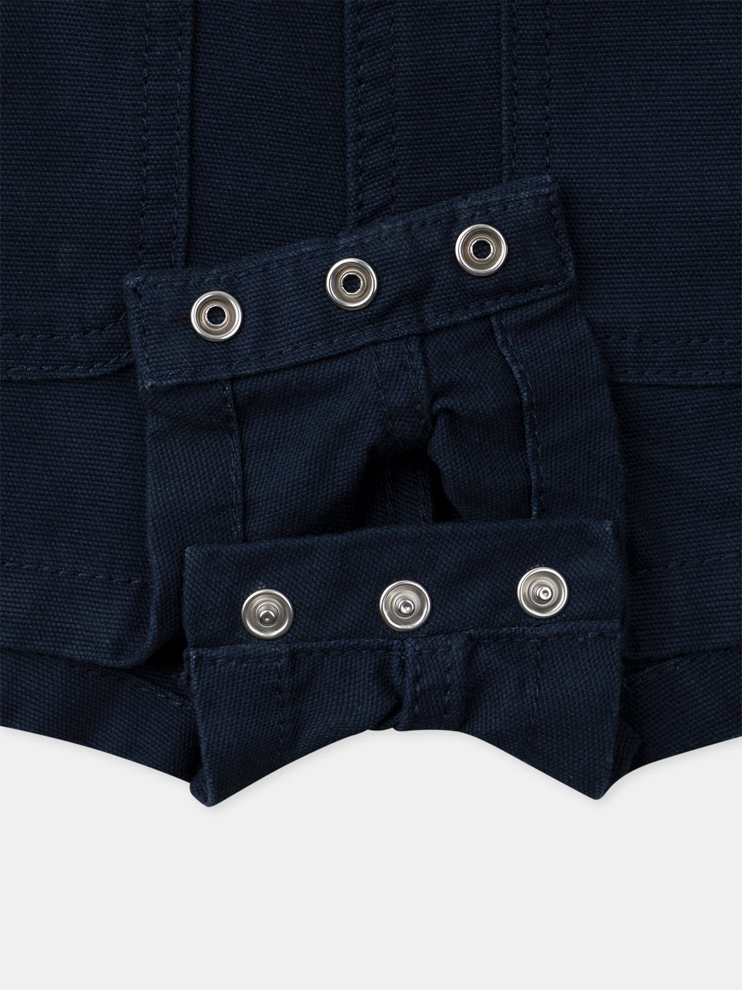 Pour les bébés actifs au printemps et été, cette salopette courte marine est confortable. Ouverture taille et entrejambe par boutons à pression et bretelles ajustables. La poche sur buste brodée tennis et volants apportent style et charme sportif. Poche surbuste avec balle de tennis brodé et vignette tissée « Baby 1987 Sergent Major » 2 Poches avant […]