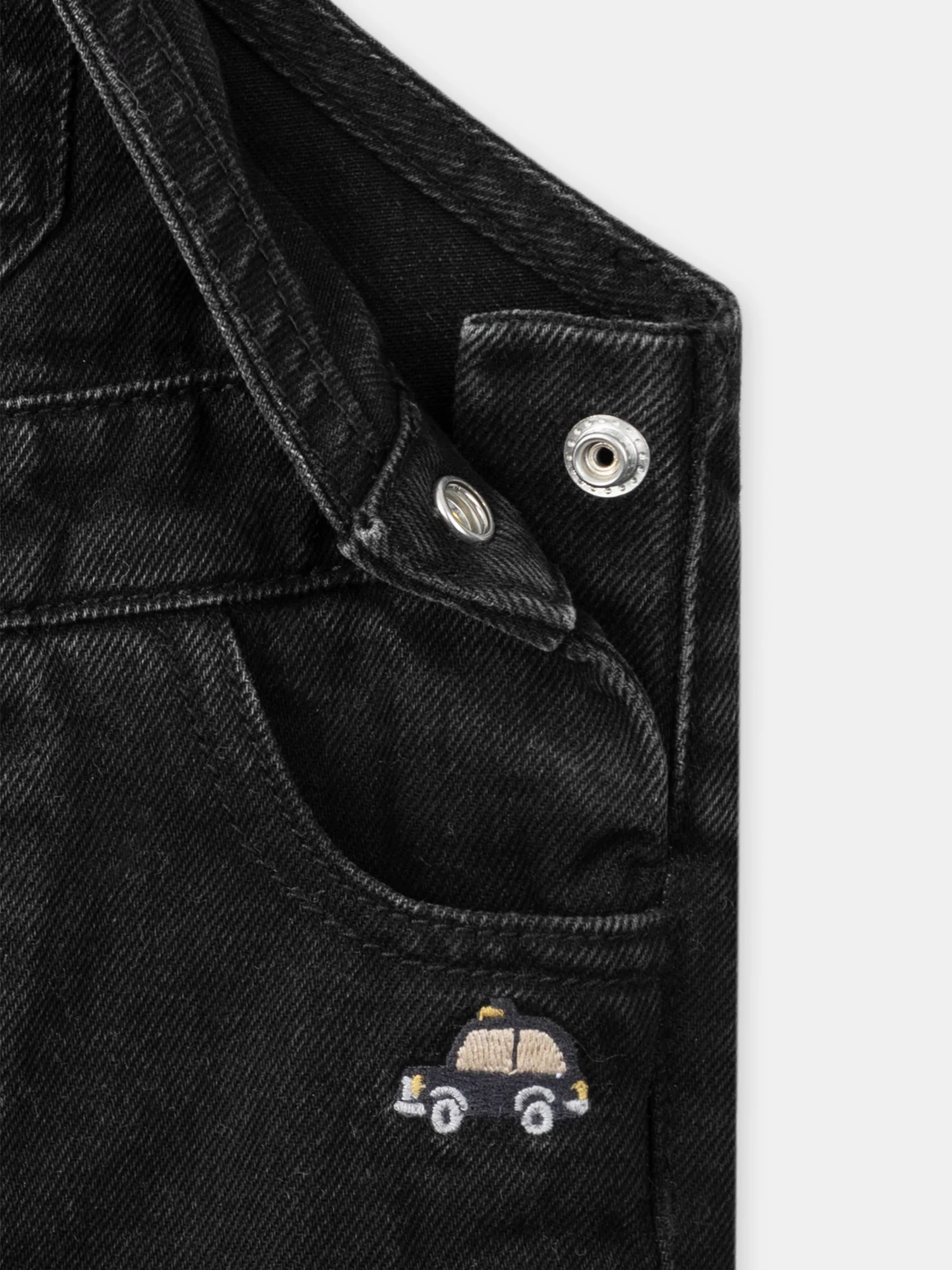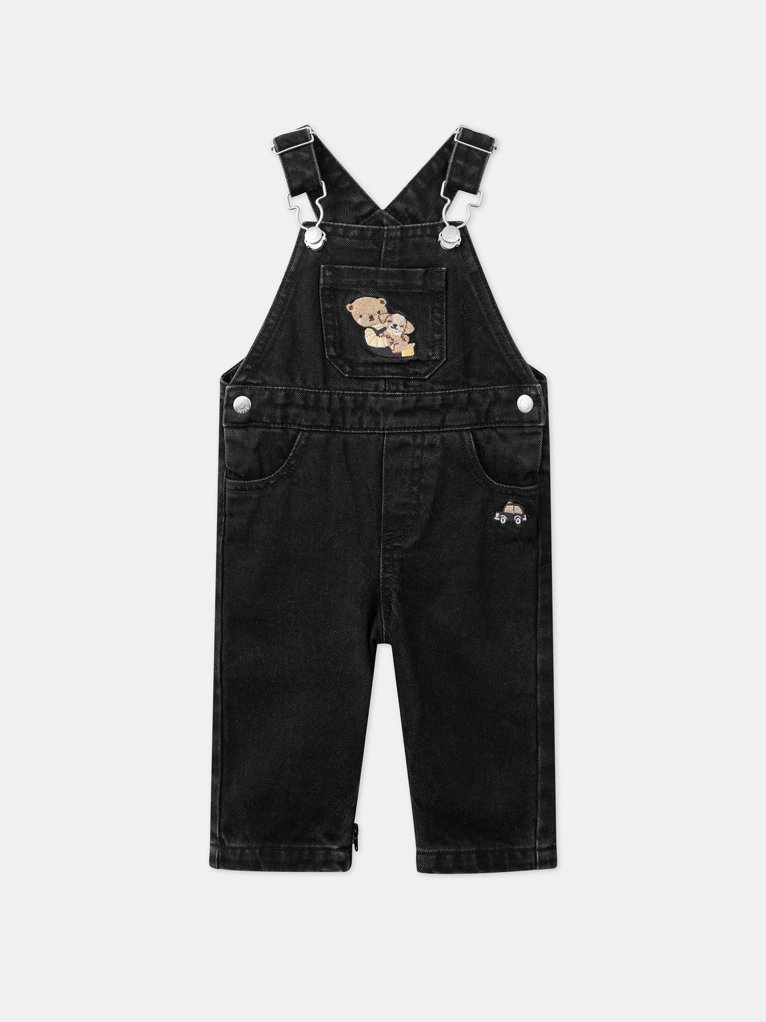 Offrez à votre petit explorateur cette salopette longue en denim noir, idéale pour jouer toute la journée. Elle est équipée d’une poche sur le buste avec des broderies de chien et d’ourson dans les tons marron clair, jaune miel et noir, ainsi que de deux poches avant avec une voiture brodée et d’une poche arrière […]