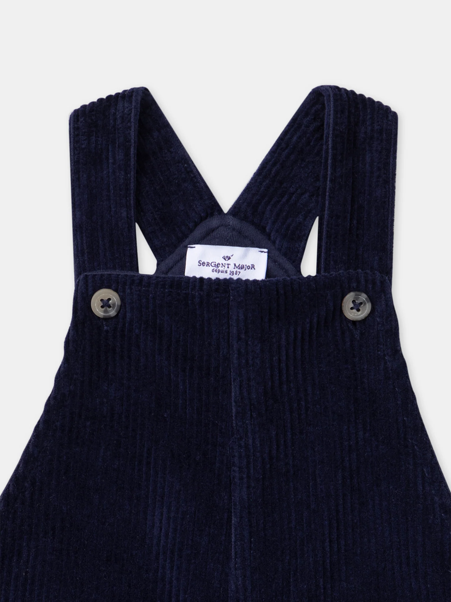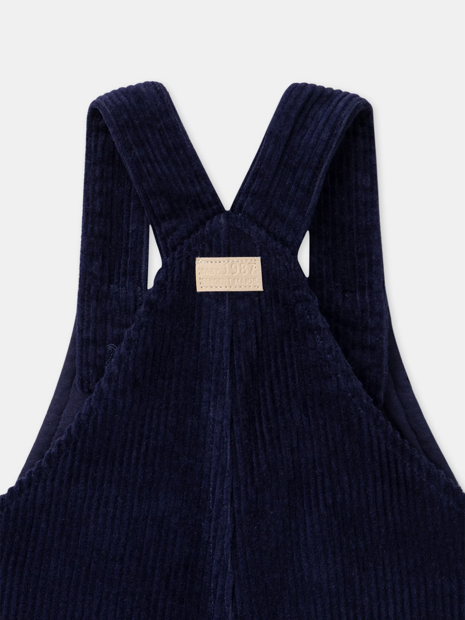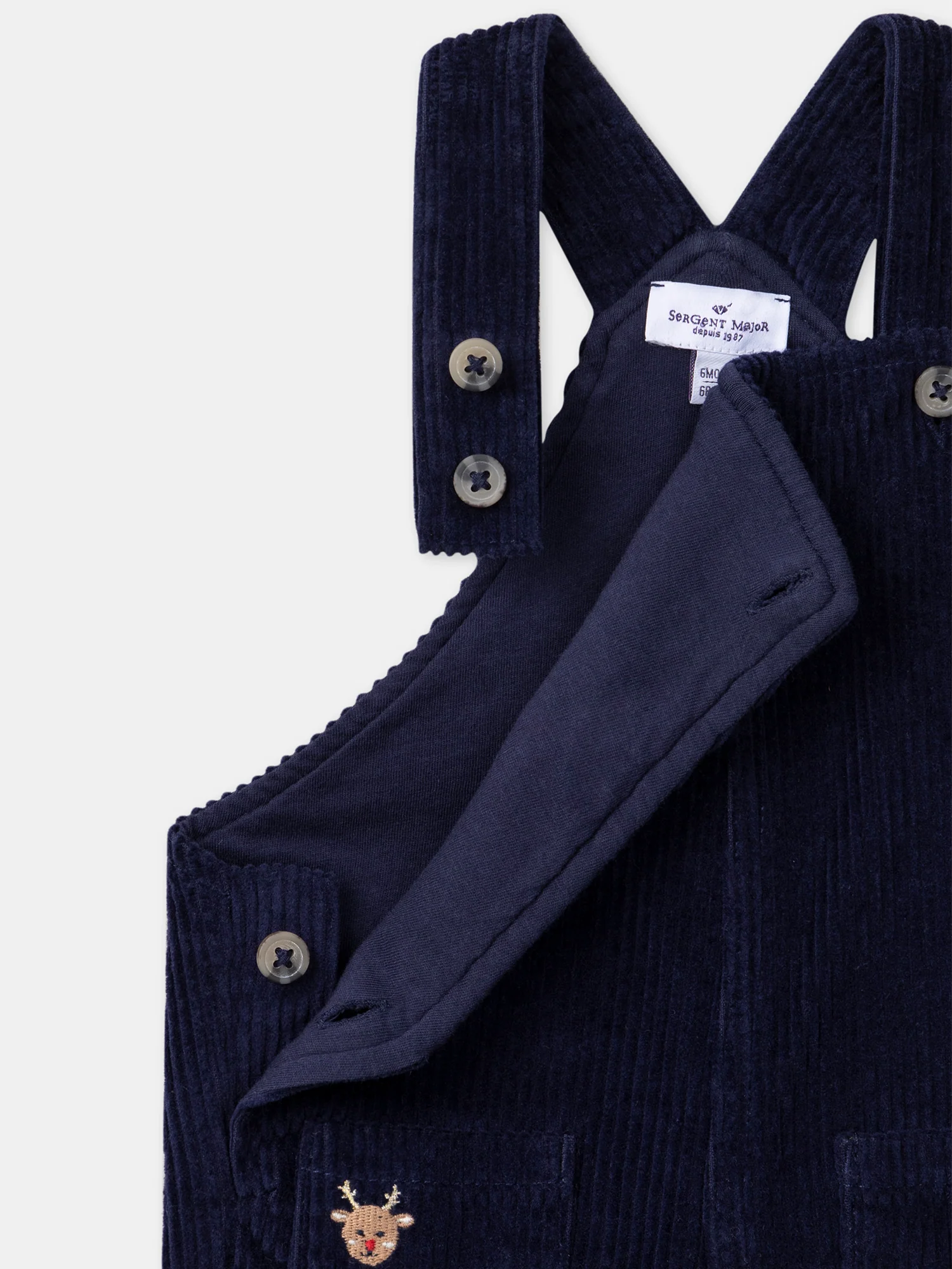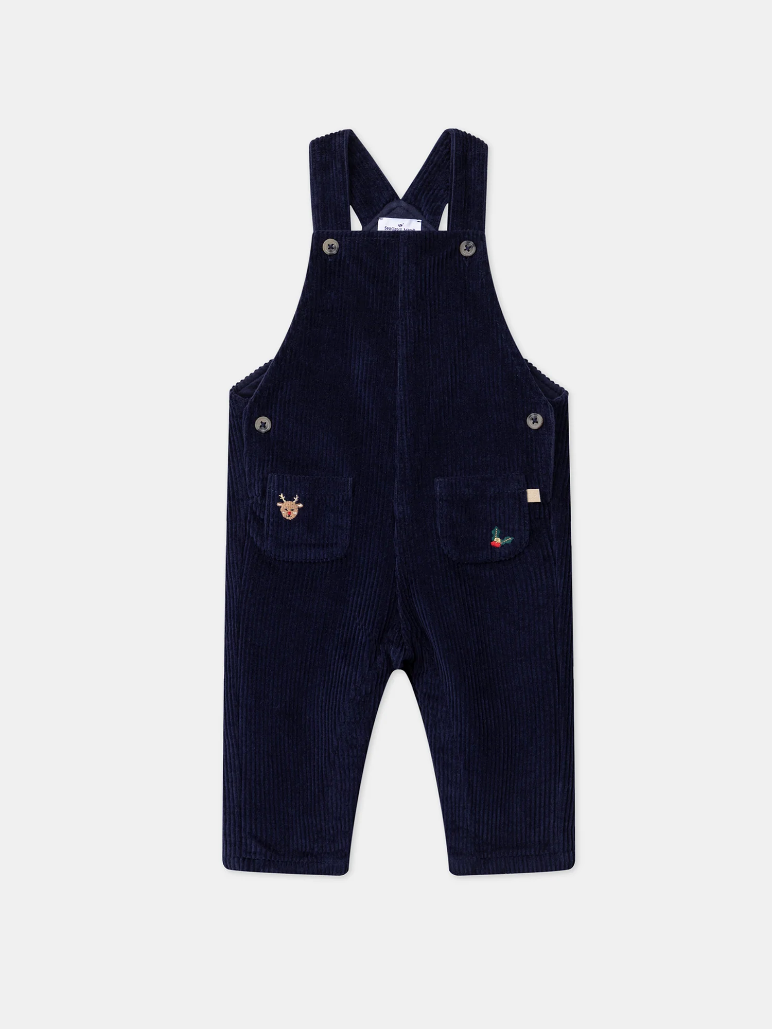 Cette salopette en velours côtelé est idéale pour les fêtes avec ses détails brodés de rennes de Noël et de houx sur les poches avant, ornées dune vignette étoile en daim. Sa doublure intégrale assure chaleur et confort, tandis que les bretelles ajustables et louverture entrejambe par boutons à pression facilitent lhabillage. Au dos, un jacron en daim « Baby Sergent Major 1987 » ajoute une touche authentique et élégante.