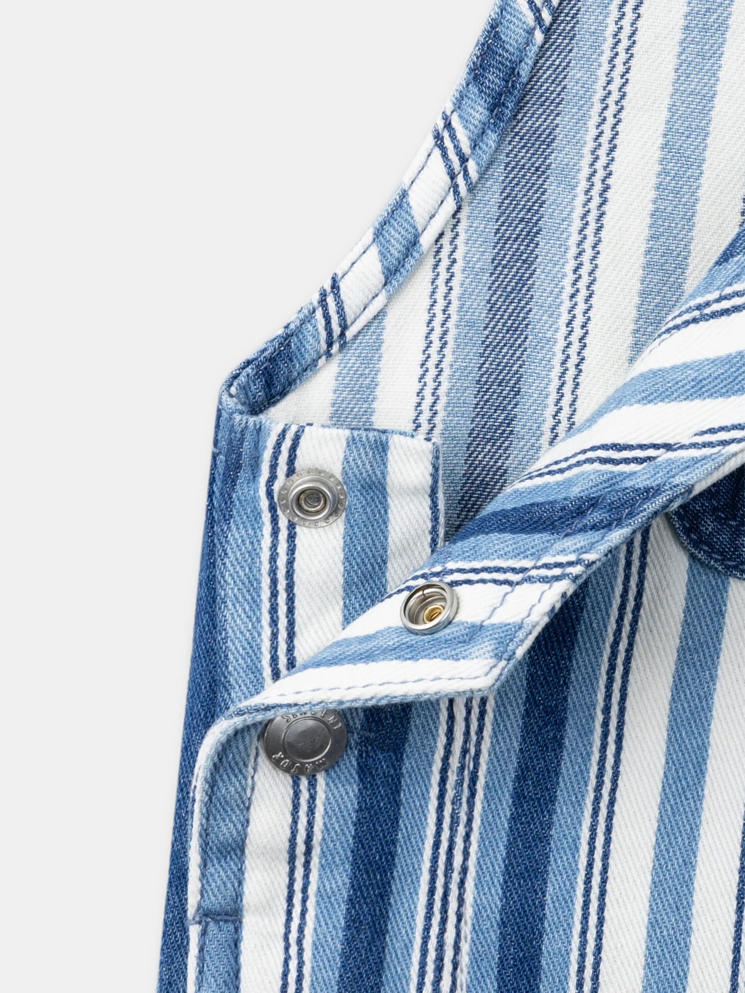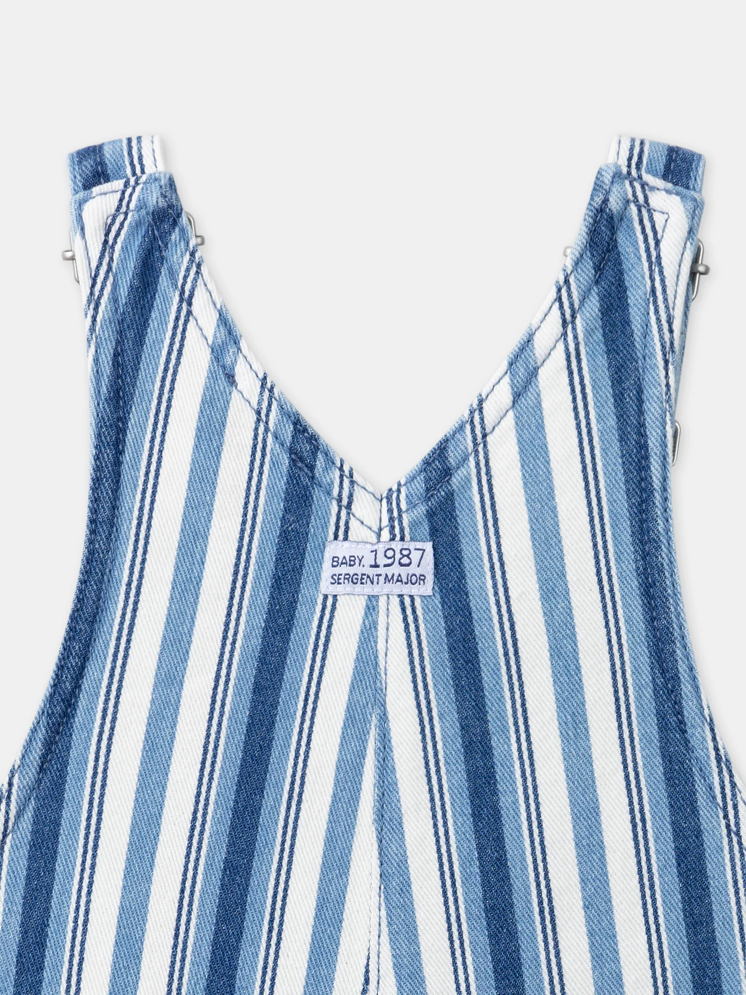 Salopette longue bleu et blanc en denim à imprimé à rayures