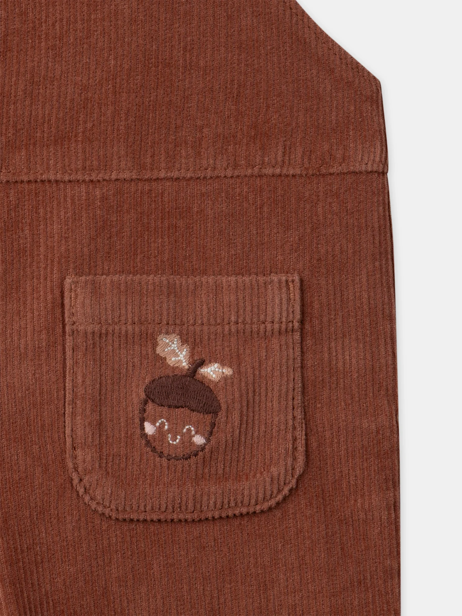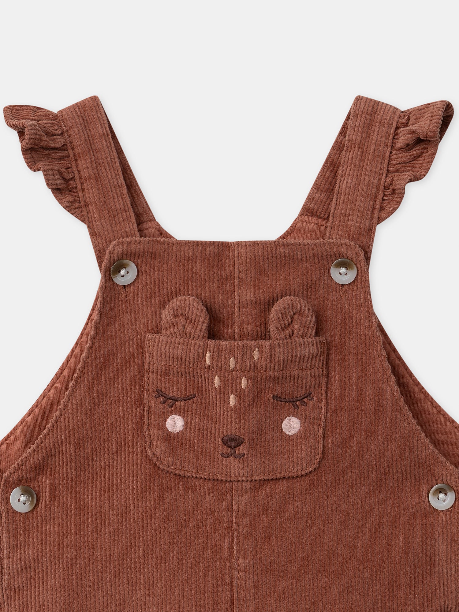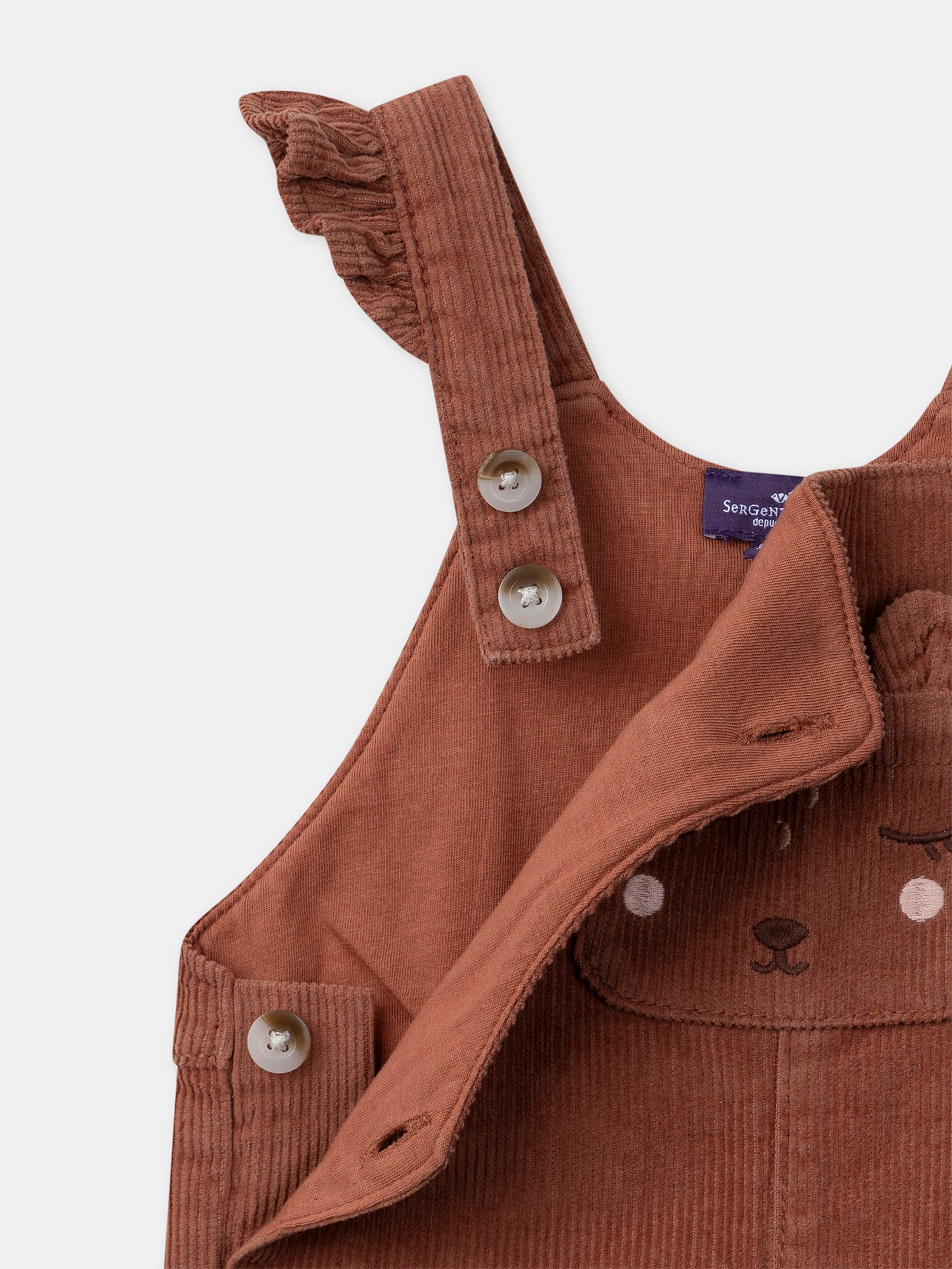 Conçue pour les aventuriers en herbe, cette salopette accompagne les explorations d’automne-hiver. Son tissu marron, ses volants sur les bretelles et ses poches brodées offrent confort et fantaisie. L’ouverture taille et entrejambe par boutons et bretelles ajustables facilite l’habillage.