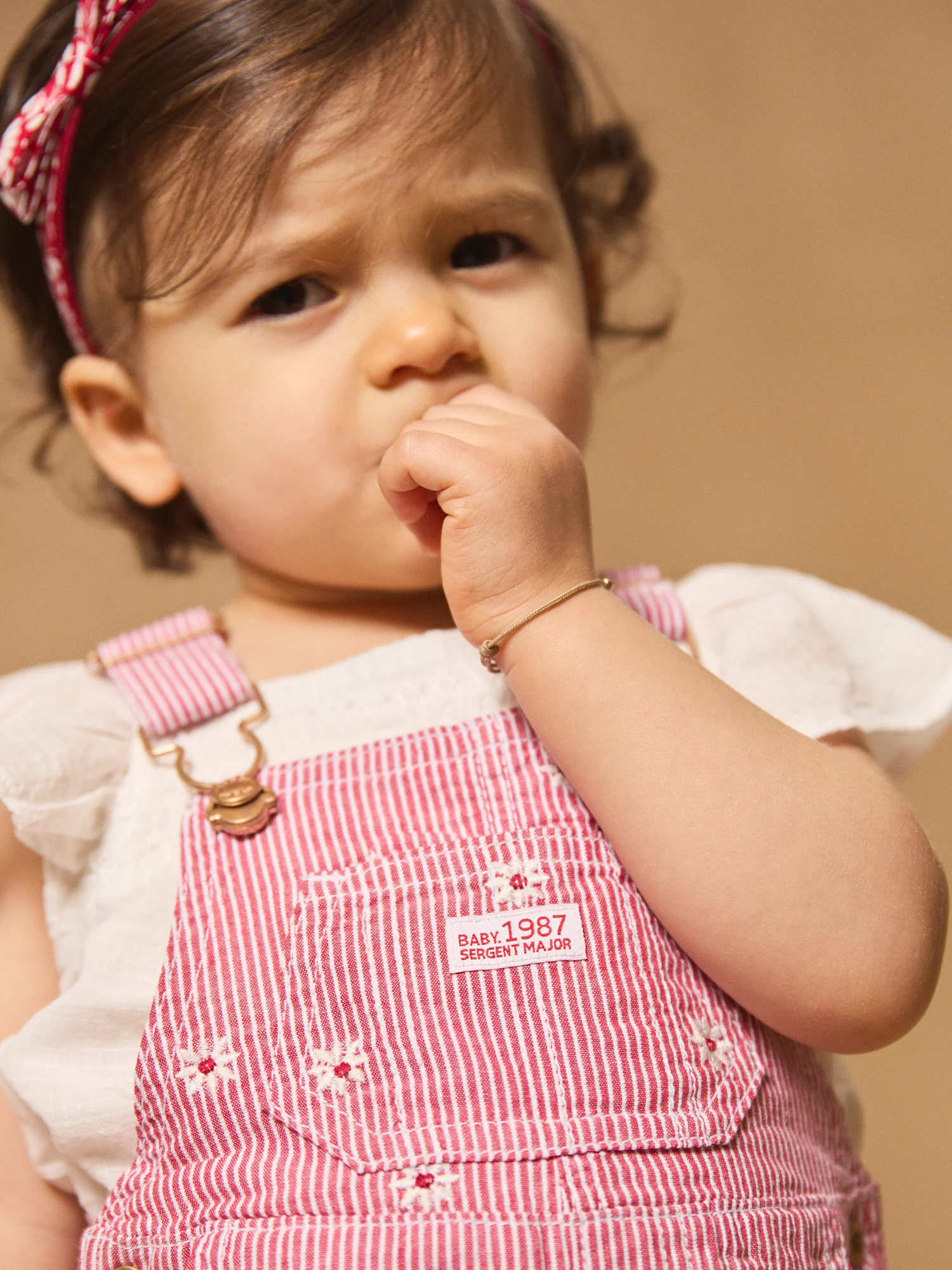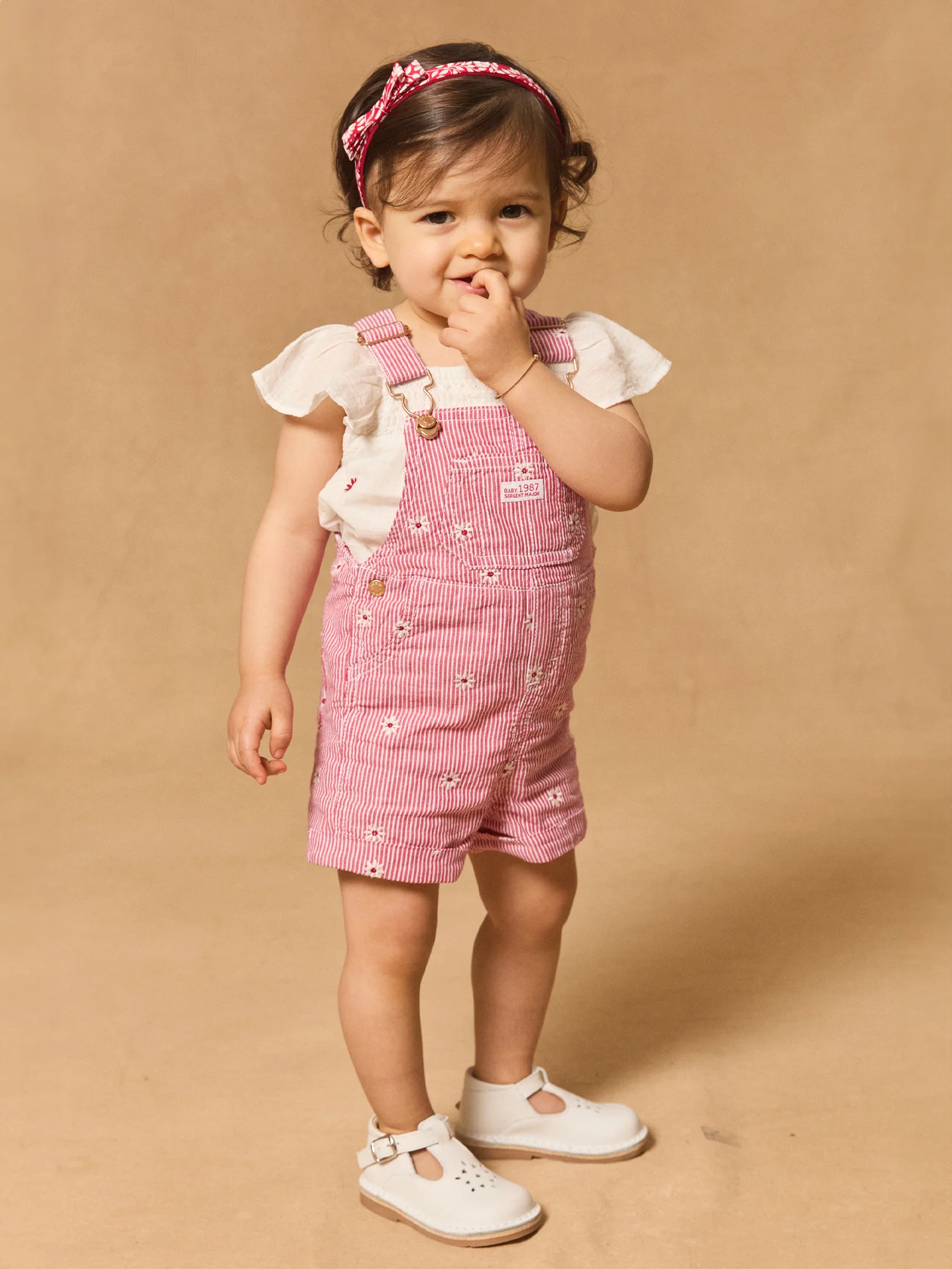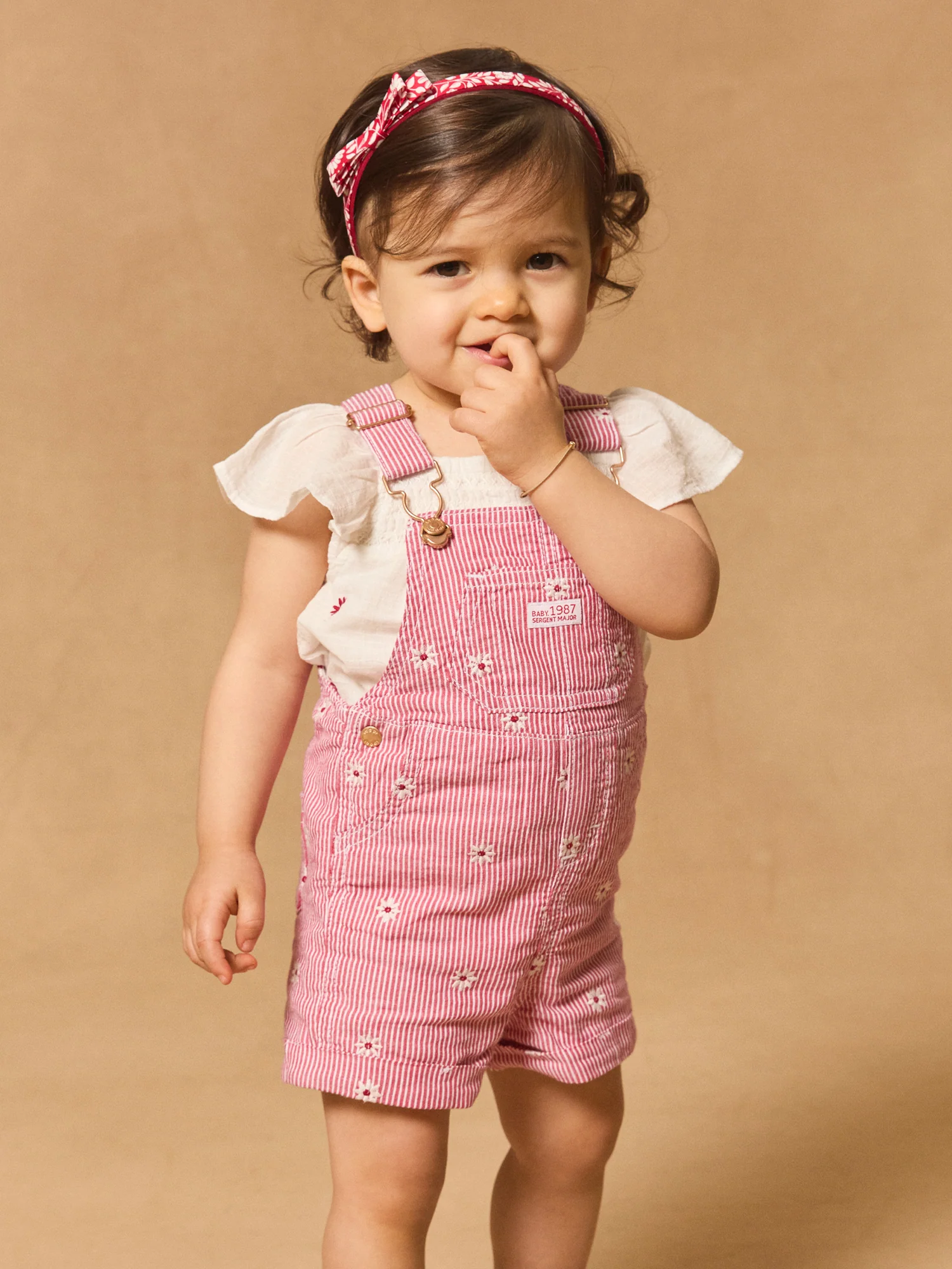 Cette salopette rayée avec fleurs brodées est parfaite pour les petites exploratrices à la recherche de style et de confort. Les broderies de fleurs, la poche plaquée sur le buste avec vignette tissée « Baby 1987 Sergent Major » et les poches avant et arrière ajoutent une touche pratique et charmante. Les bretelles ajustables et l’ouverture à boutons à pression sur la taille et l’entrejambe assurent une facilité d’habillage tout en garantissant un ajustement parfait.