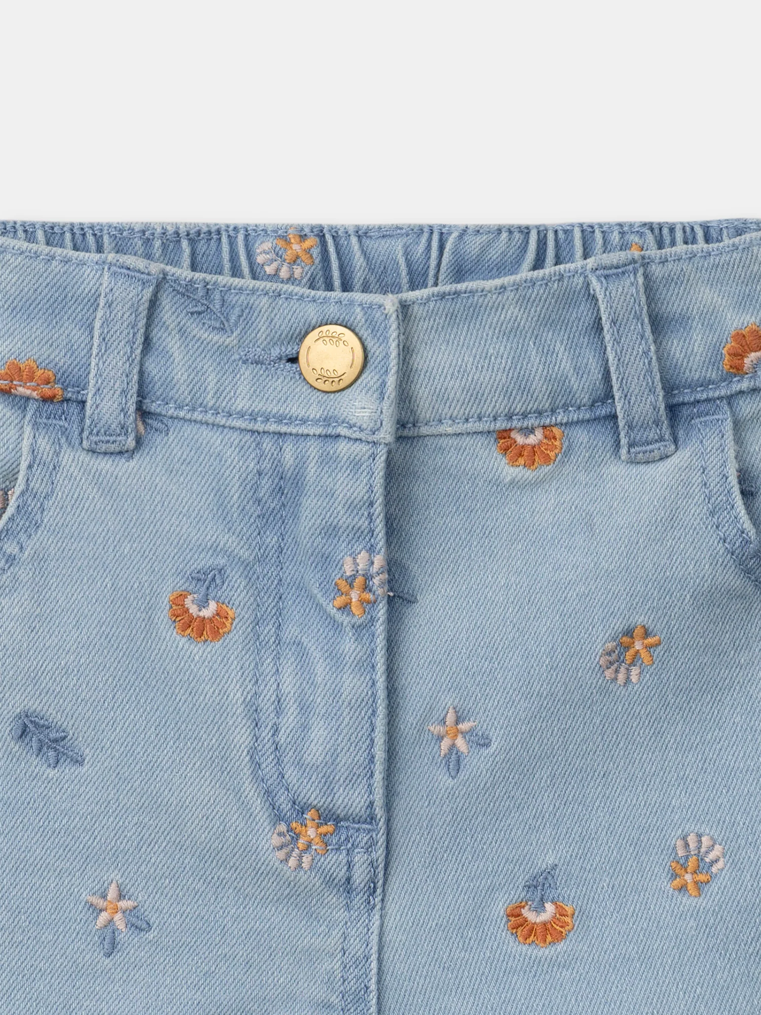 Ce short en jean à fleurs est parfait pour un look estival et élégant. Il combine broderies fleuries, poches pratiques et une taille élastiquée avec élastiques ajustables pour un ajustement parfait. Son ouverture zippée facilite l’enfilage tout en apportant une touche moderne.
