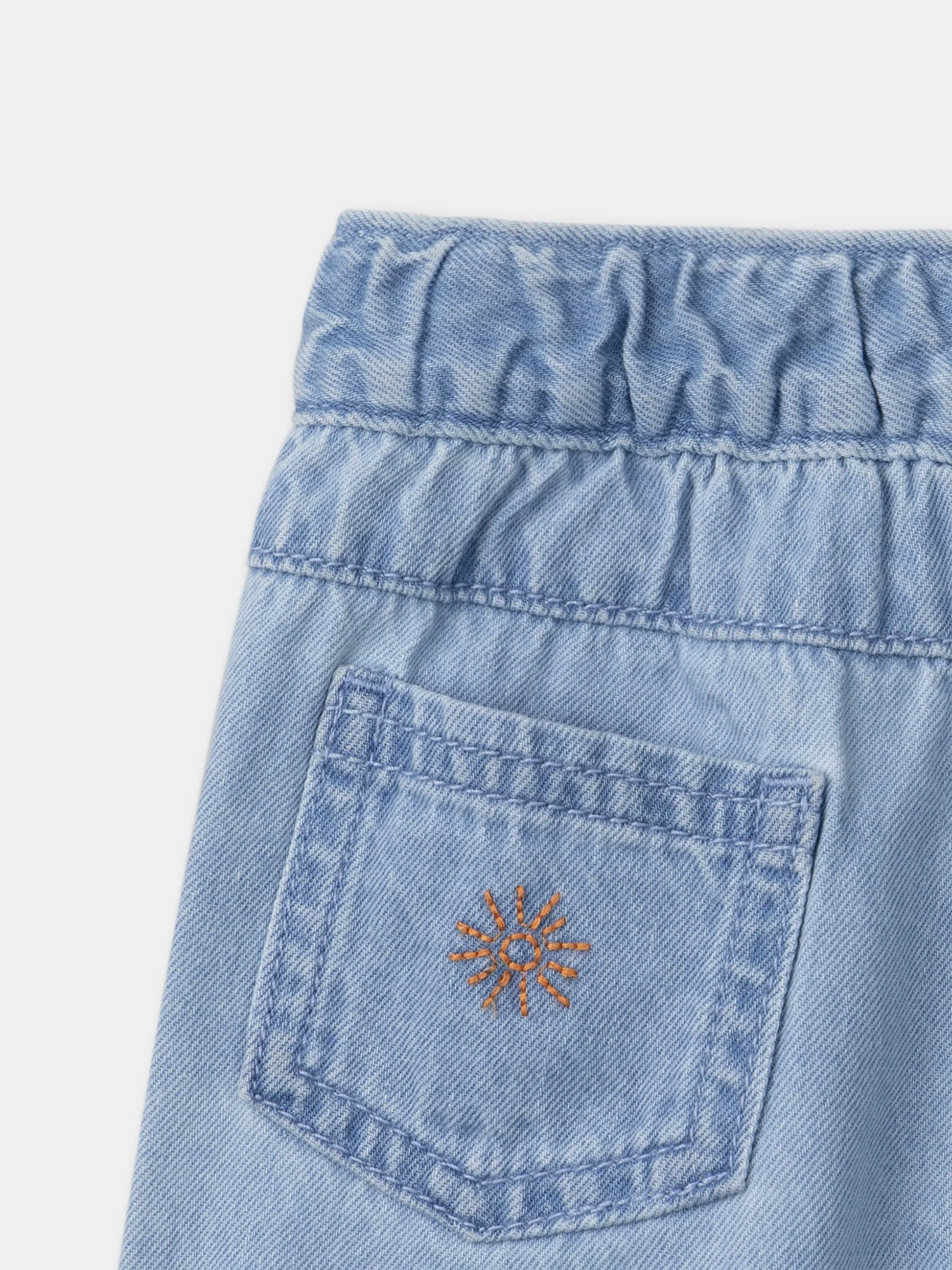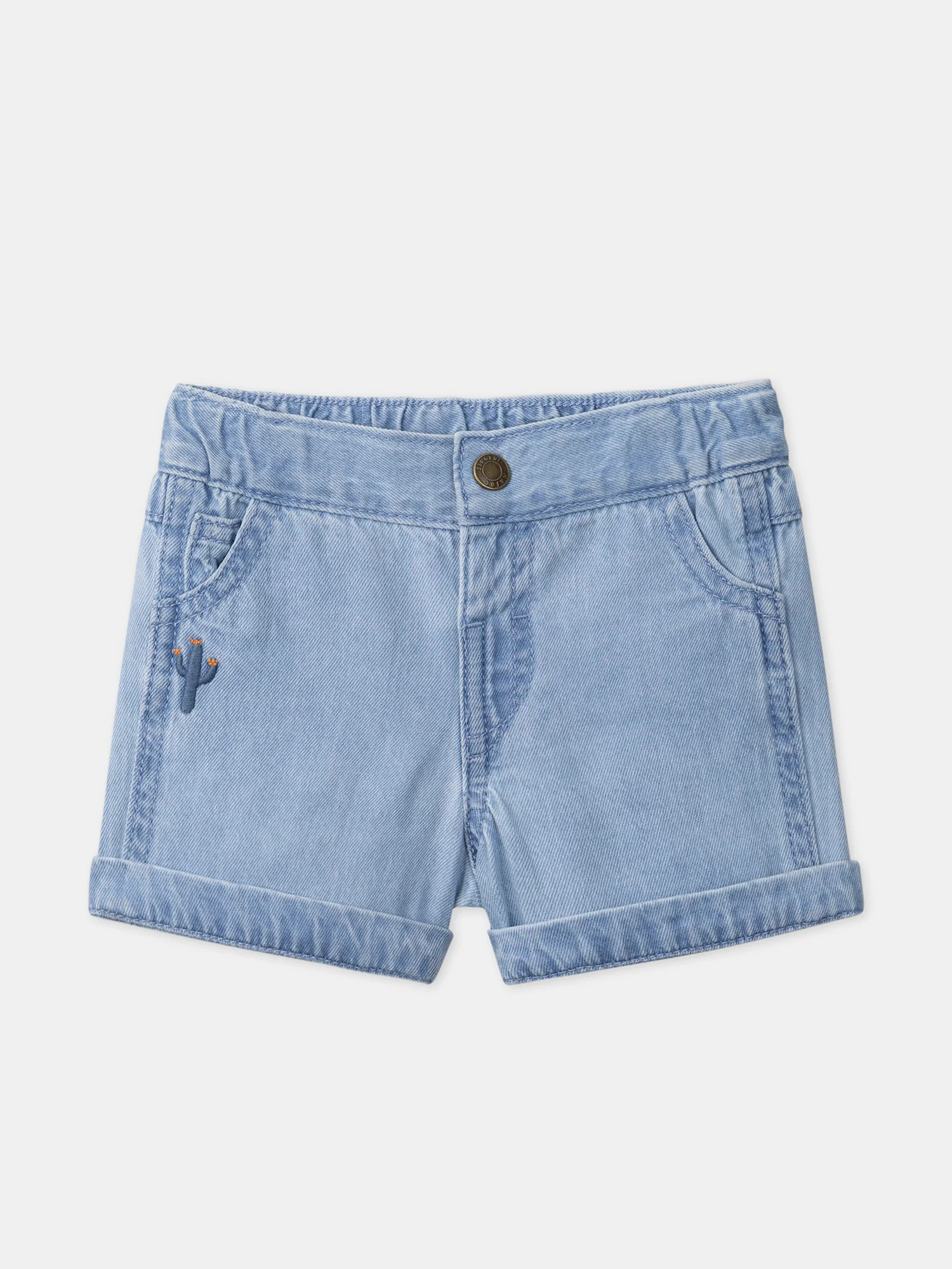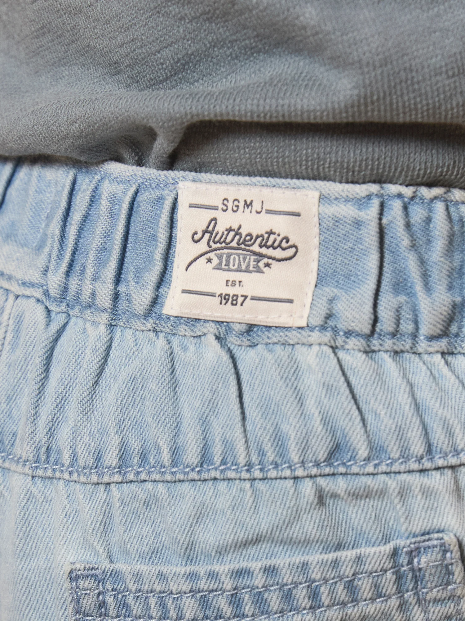 Le short en jean est conçu avec des ourlets fixes et une touche ludique grâce aux broderies cactus sur les poches avant et soleil sur les poches arrière. Son jacron à l’arrière « SGMJ Authentic Love 1987 » apporte une signature authentique. Pratique et confortable, il dispose d’une taille élastiquée et d’une ouverture par bouton à pression.