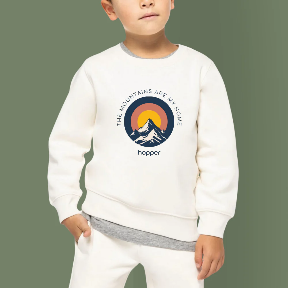Le sweat enfant « Mountain Explorer » de Hopper est fabriqué en coton biologique. Ce modèle durable et éthique propose une coupe normale qui assure une grande liberté de mouvement.