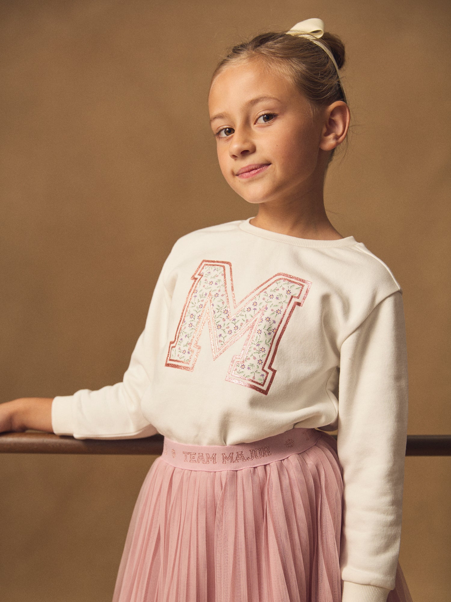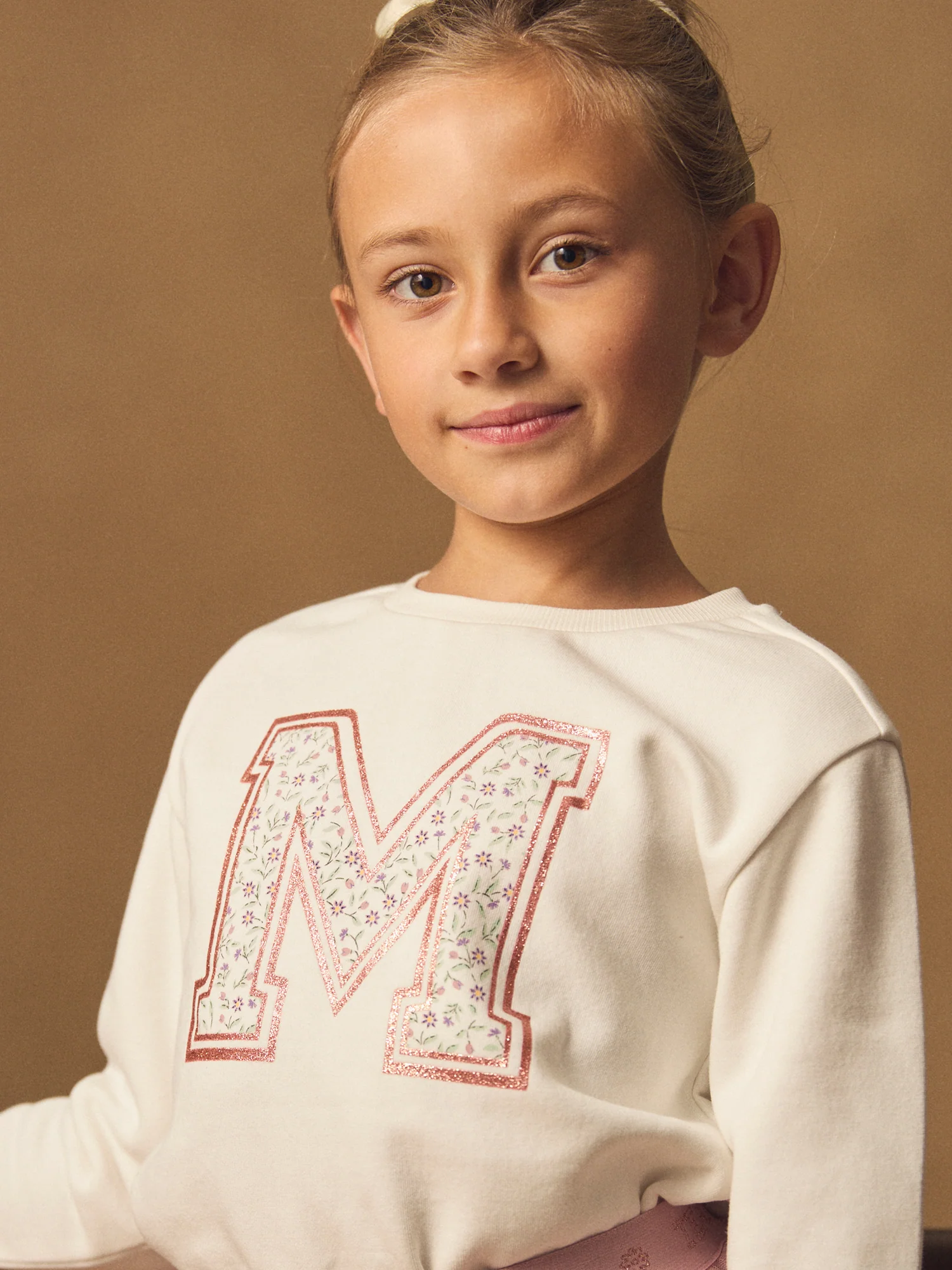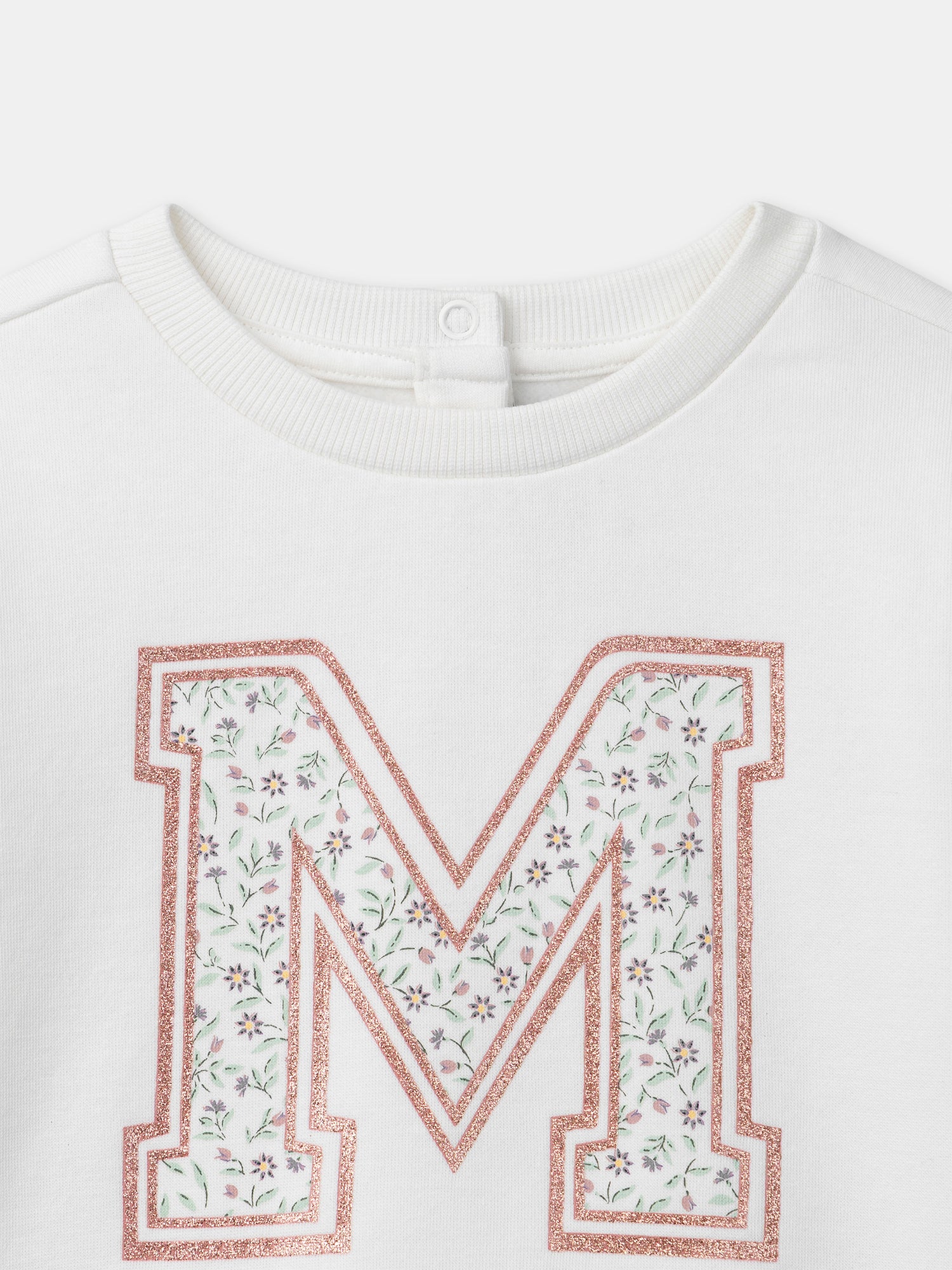 Sweat-shirt blanc imprimé « M » fleuri Fille