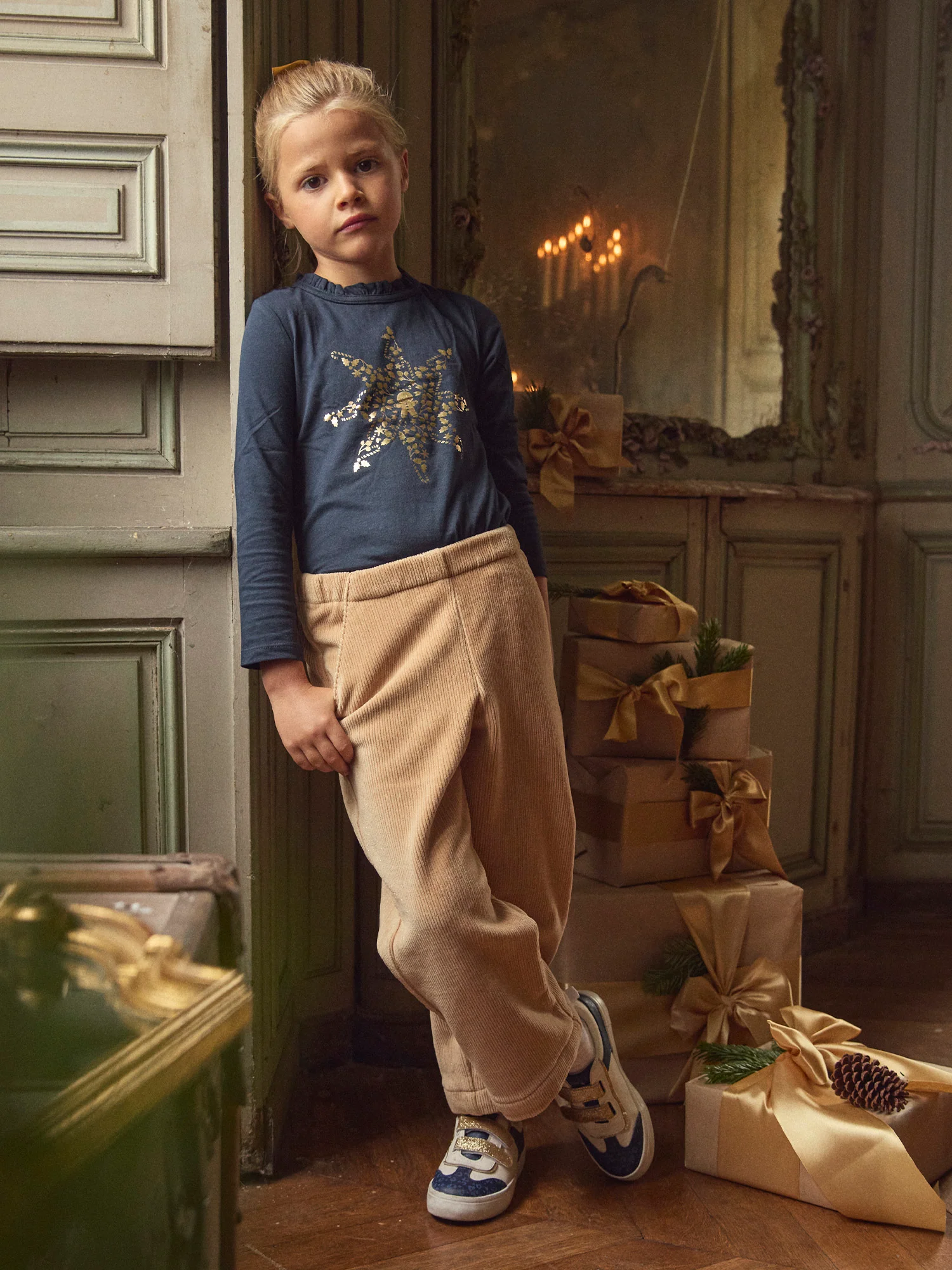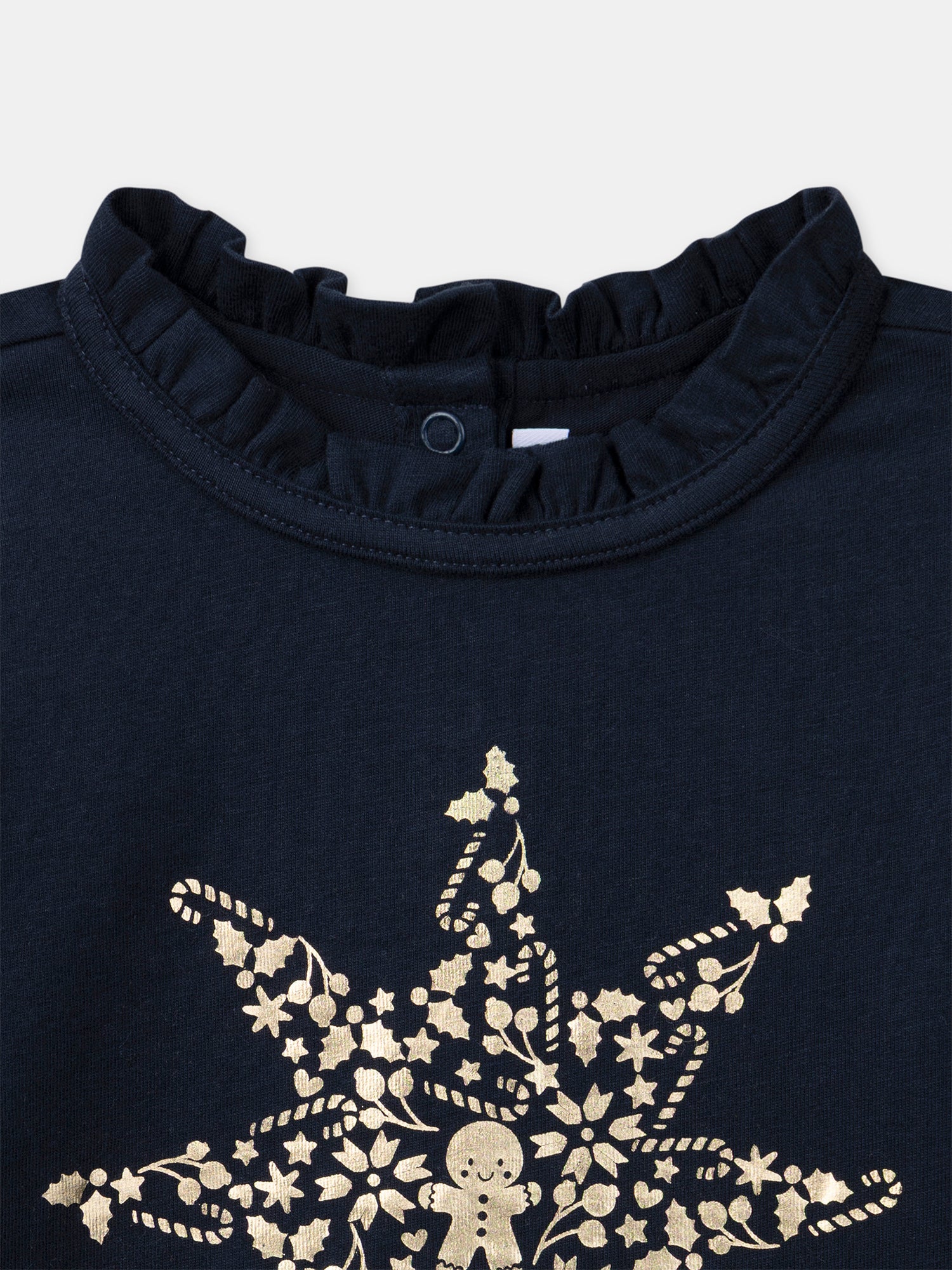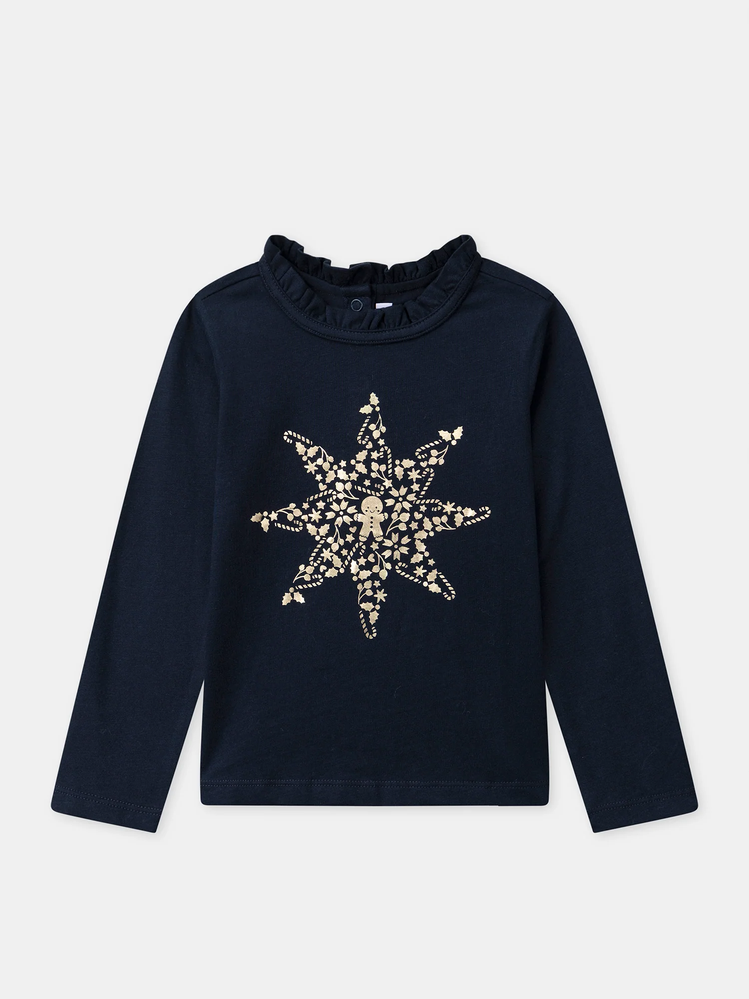 T-shirt à manches longues bleu marine et motif étoile doré Fille