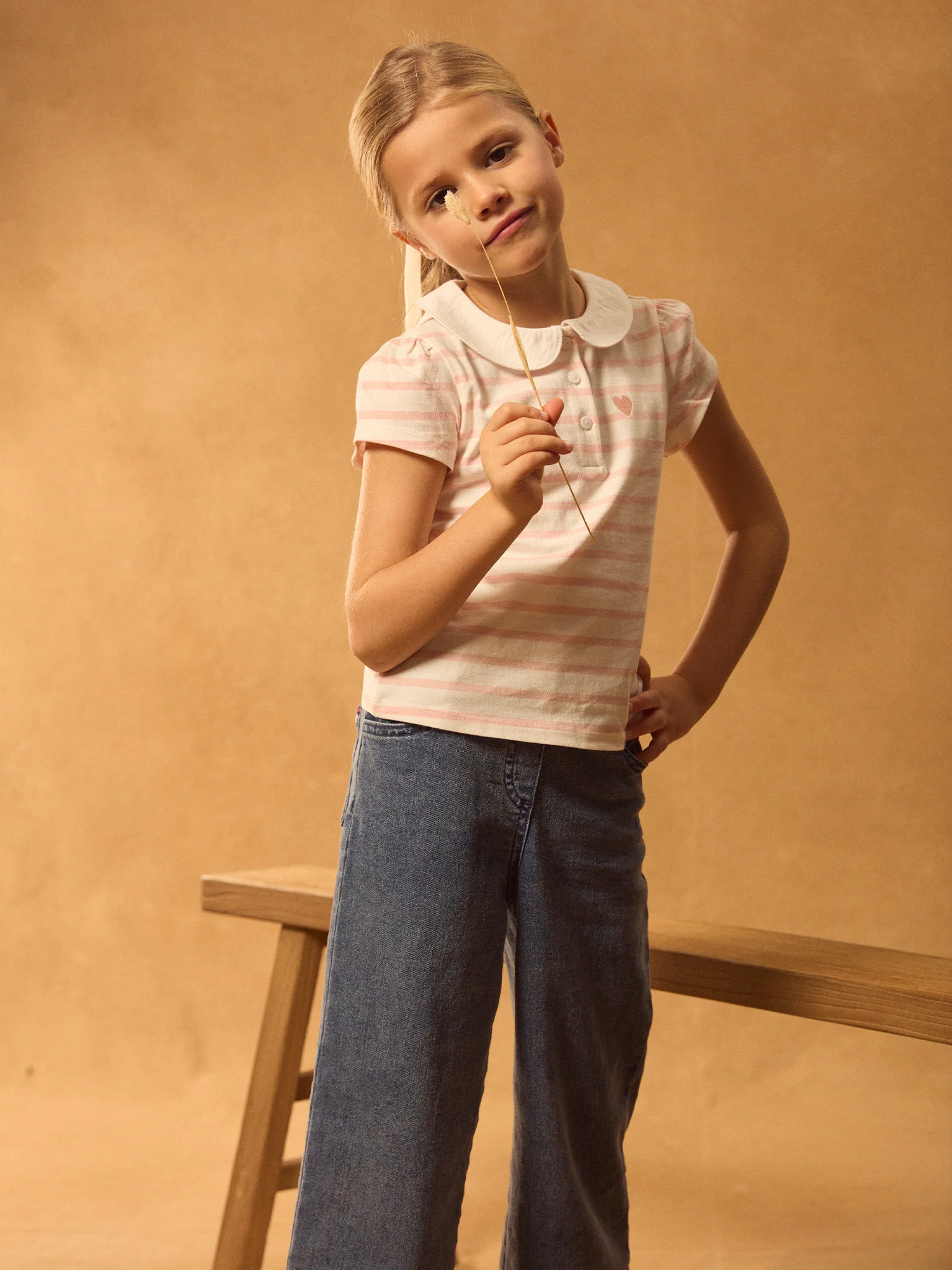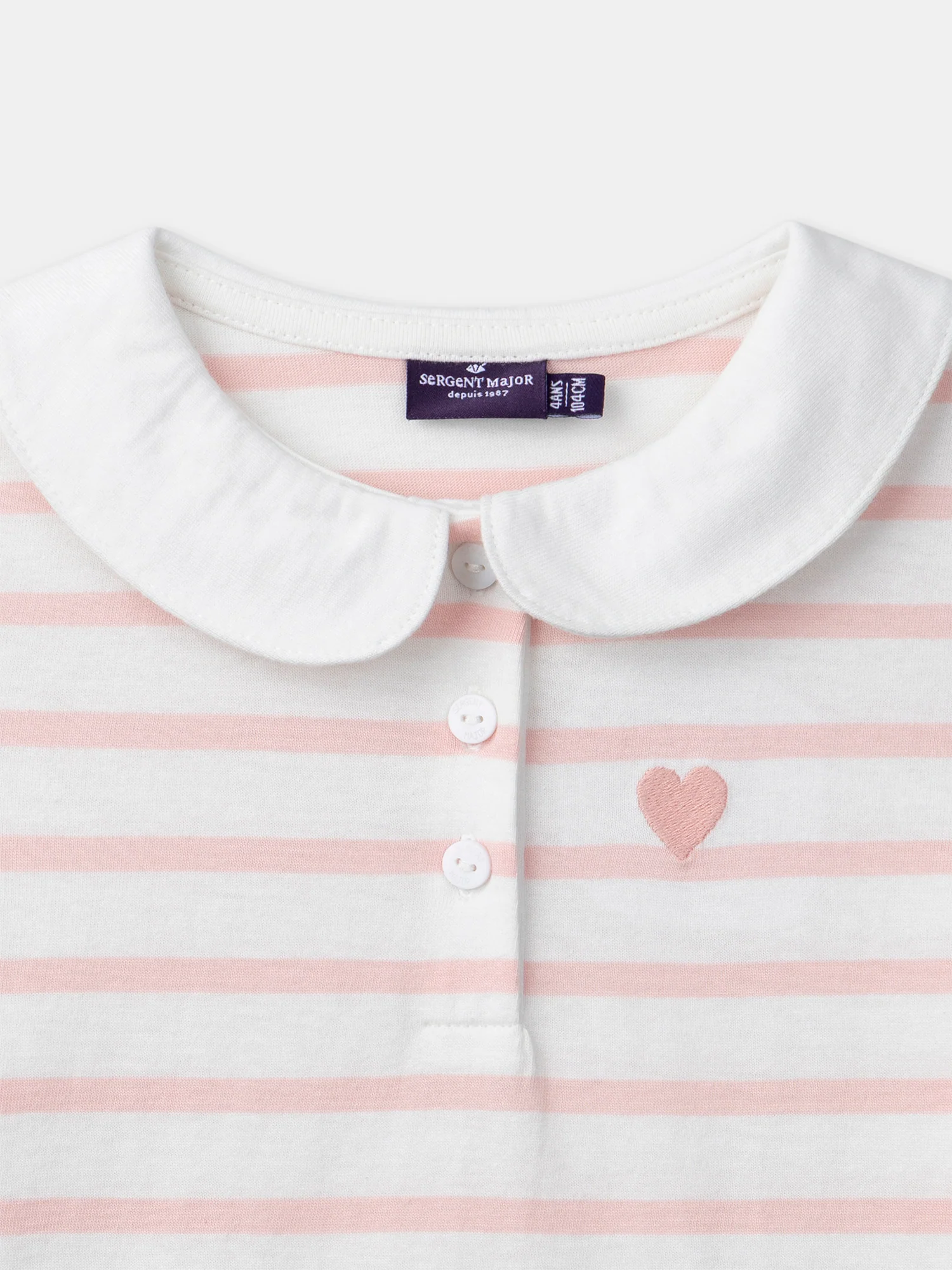 Conçu pour une enfant joyeuse au quotidien, idéal pour la mi-saison. Son jersey doux assure confort et une coupe facile à porter. La broderie cœur, le col claudine et les fronces lui donnent un charme classique.
