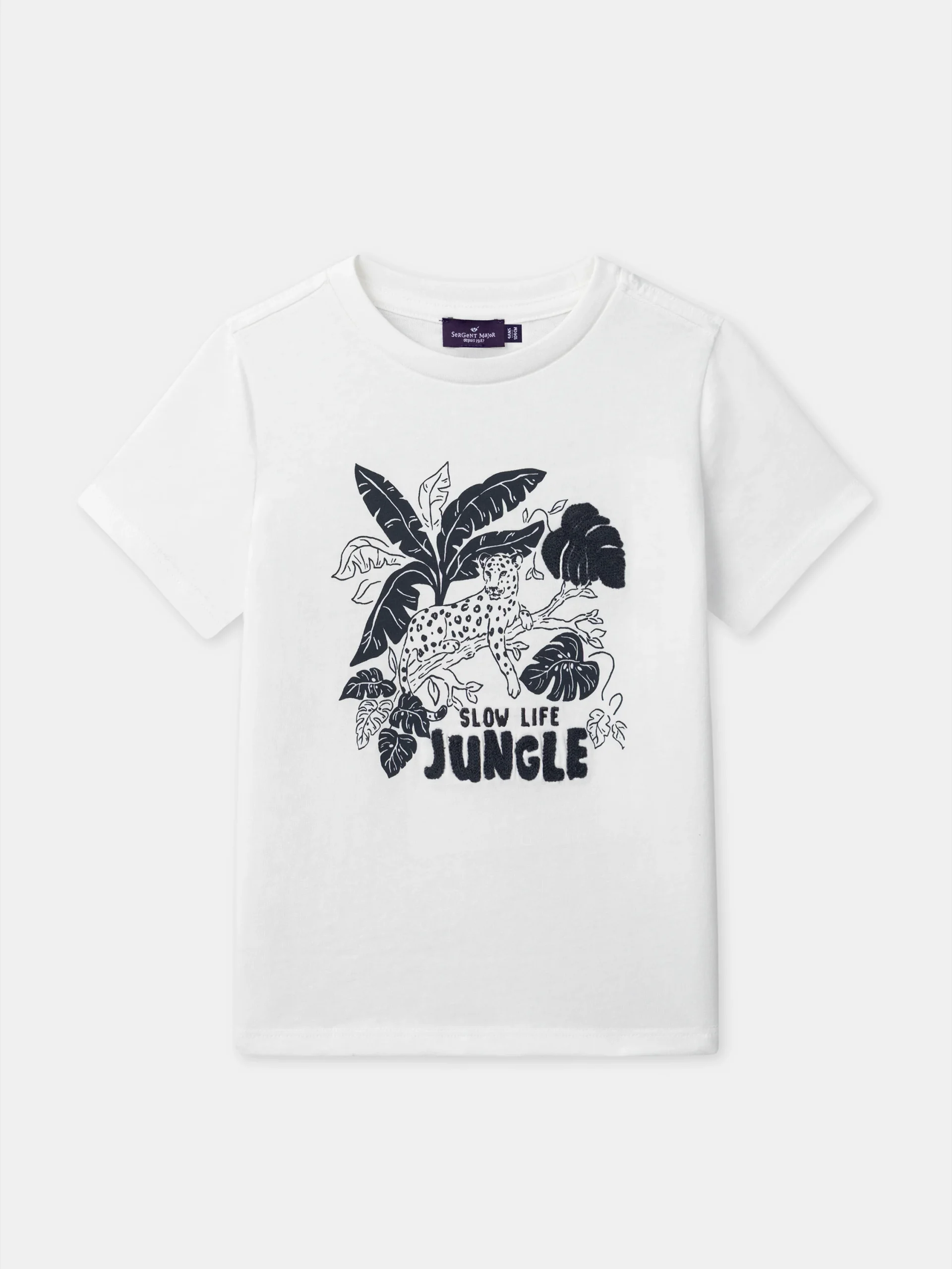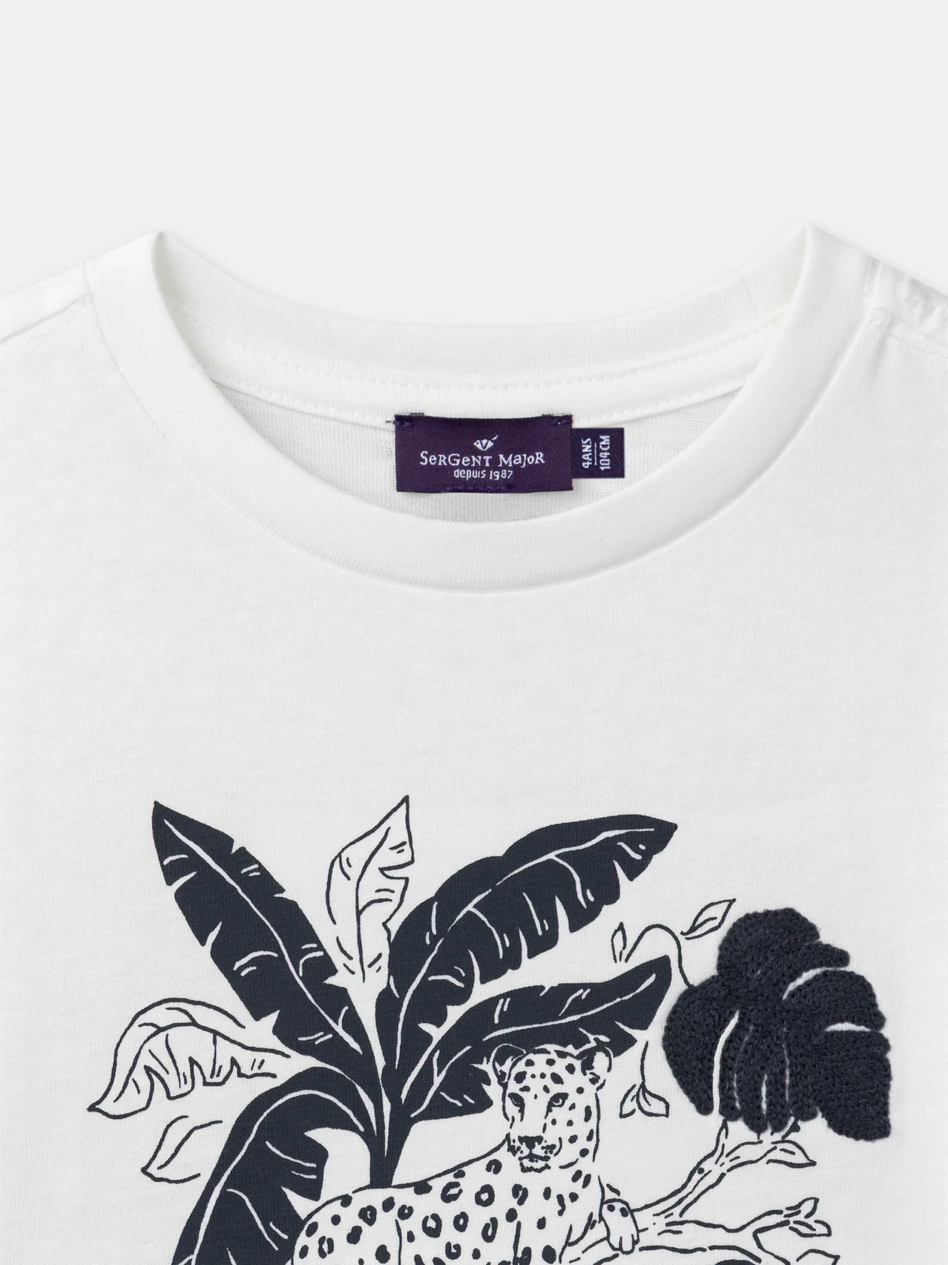 - Imprimé panthère et jungle avec lettrage en broderie