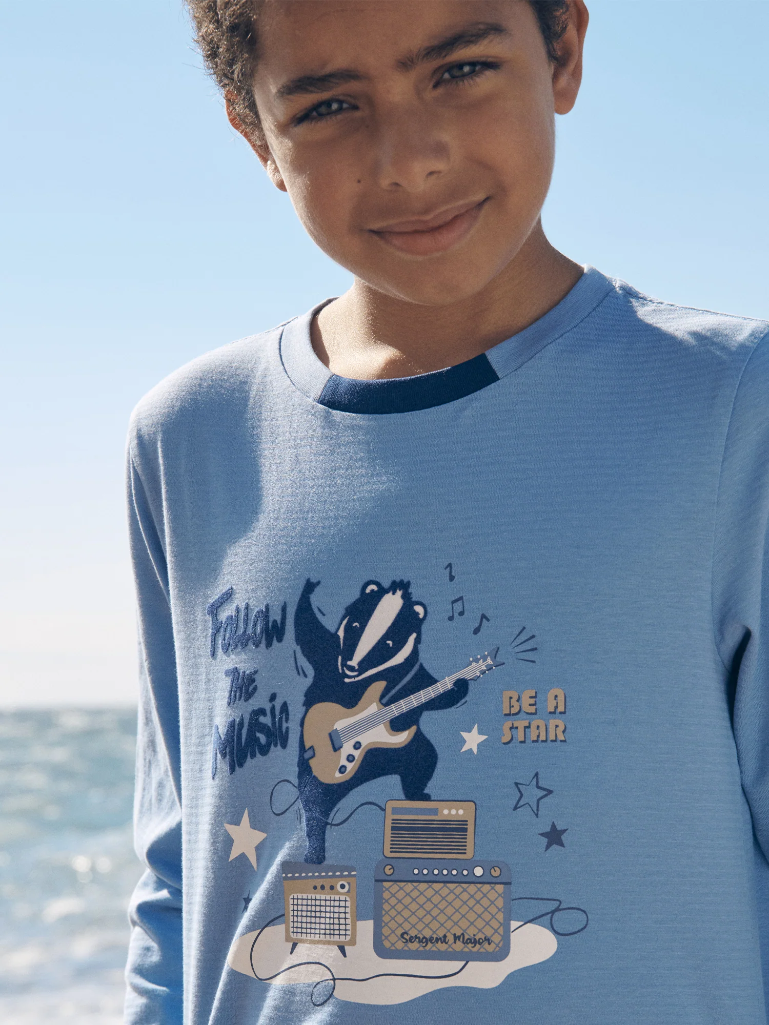 T-shirt bleu ciel en jersey à motif blaireau guitariste