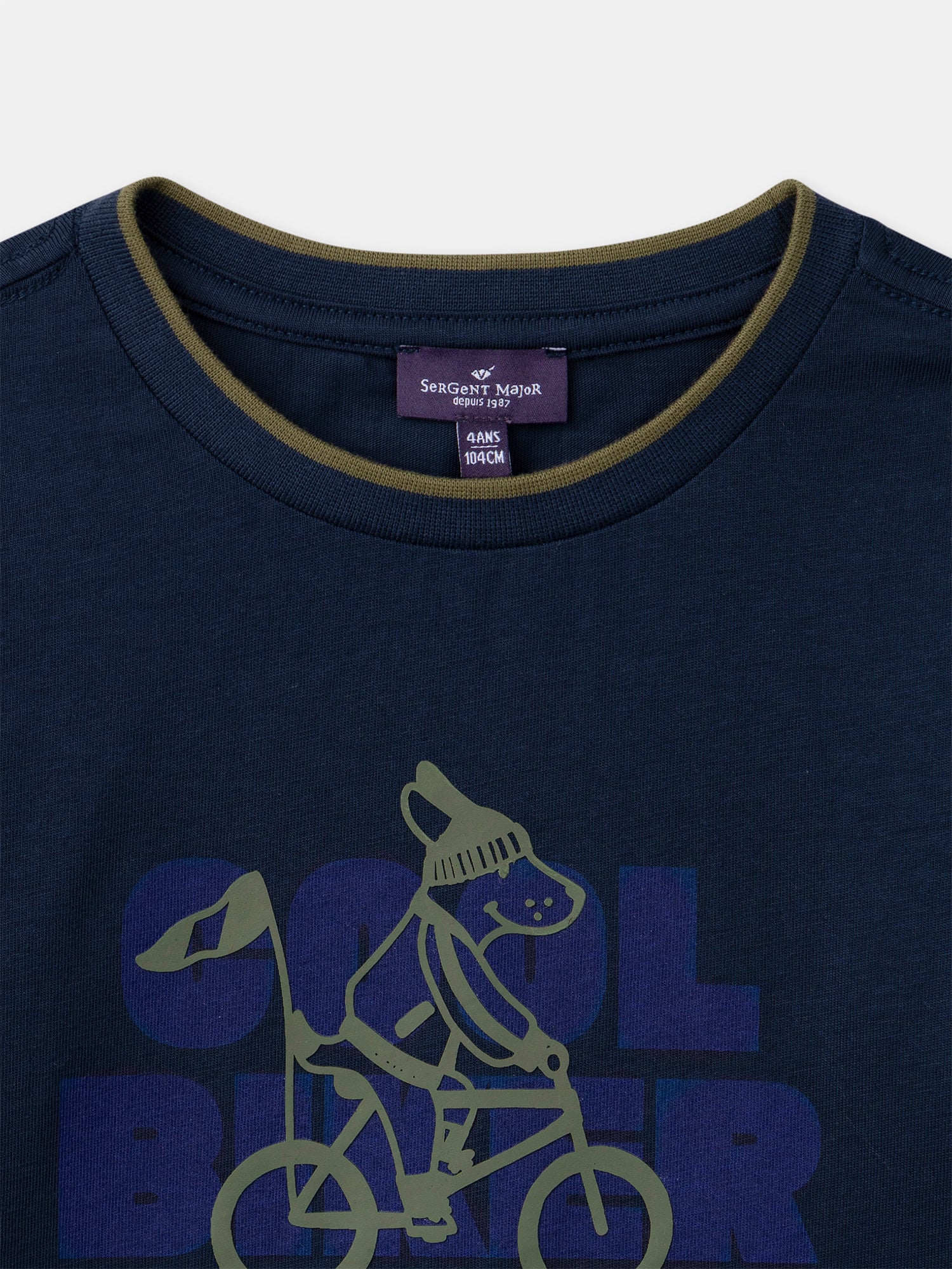Pensé pour les petits amateurs de douceur, ce t-shirt bleu foncé à manches longues allie confort et style. L’imprimé chien avec lettrage en relief apporte une touche ludique et délicate. Le bord-côte au col garantit un maintien agréable toute la journée.
