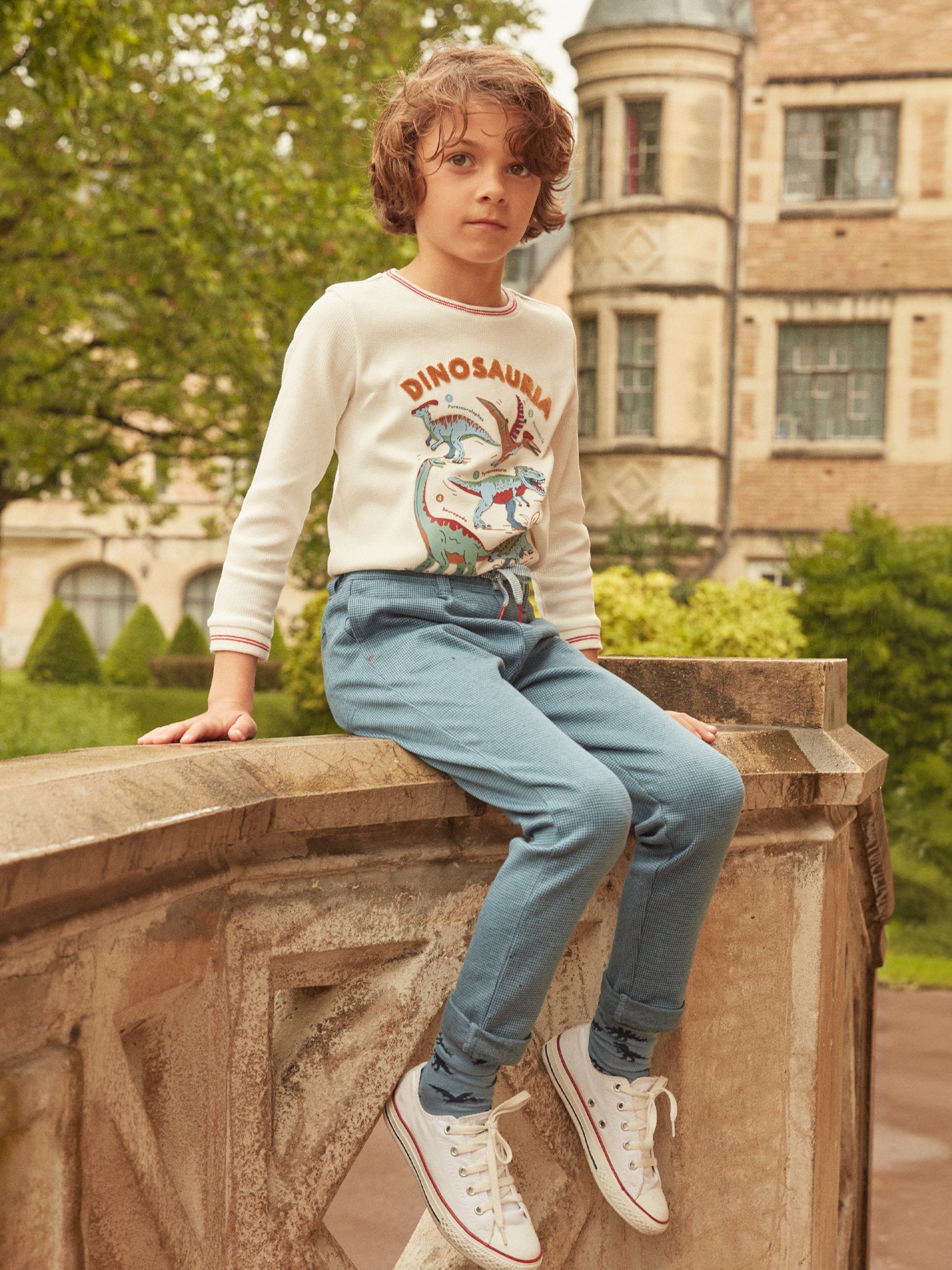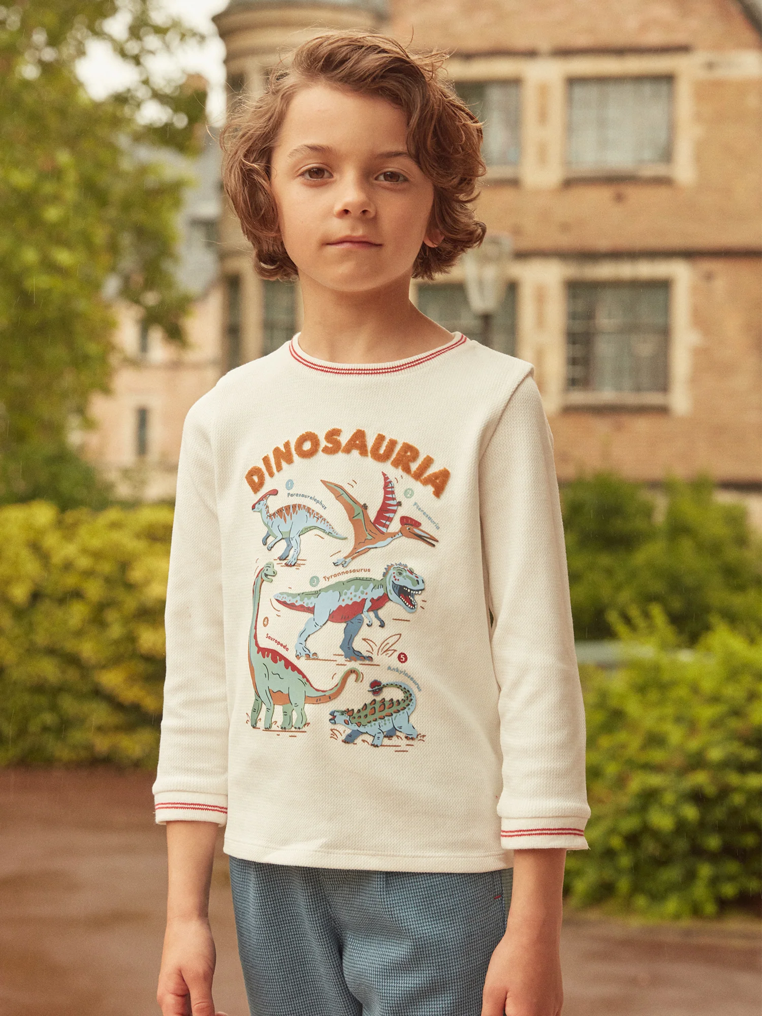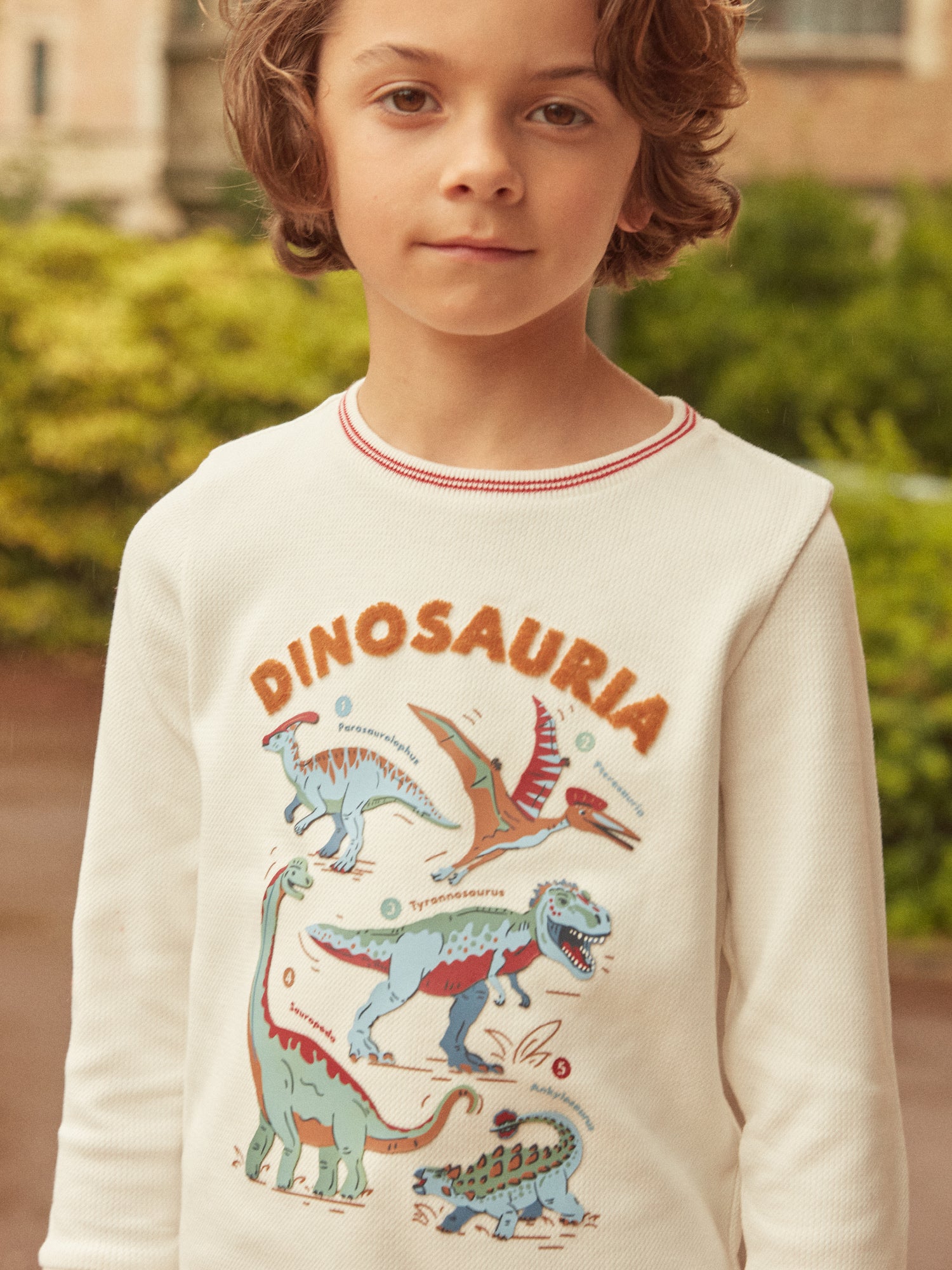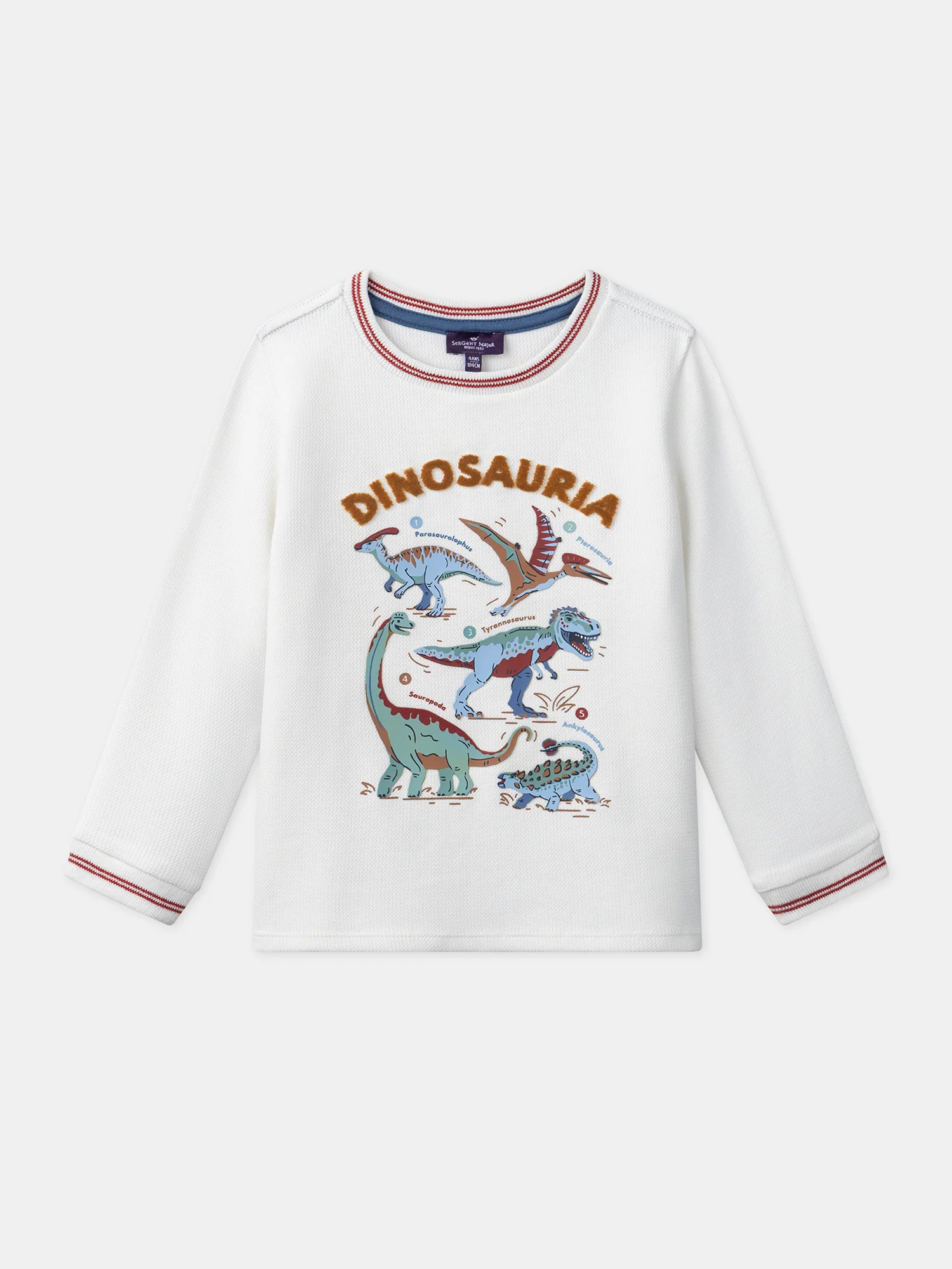 Ce T-shirt Dinosauria à manches longues est un incontournable pour les amateurs de dinosaures. Avec son imprimé et lettrage en relief à l’avant, il offre un style captivant et ludique. Les bord-côtes au col et aux poignets assurent un ajustement confortable tout en ajoutant une finition soignée. Parfait pour afficher leur passion pour les dinosaures avec style et confort.