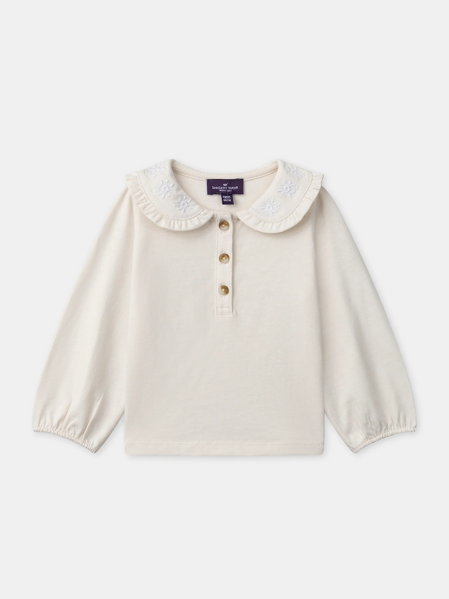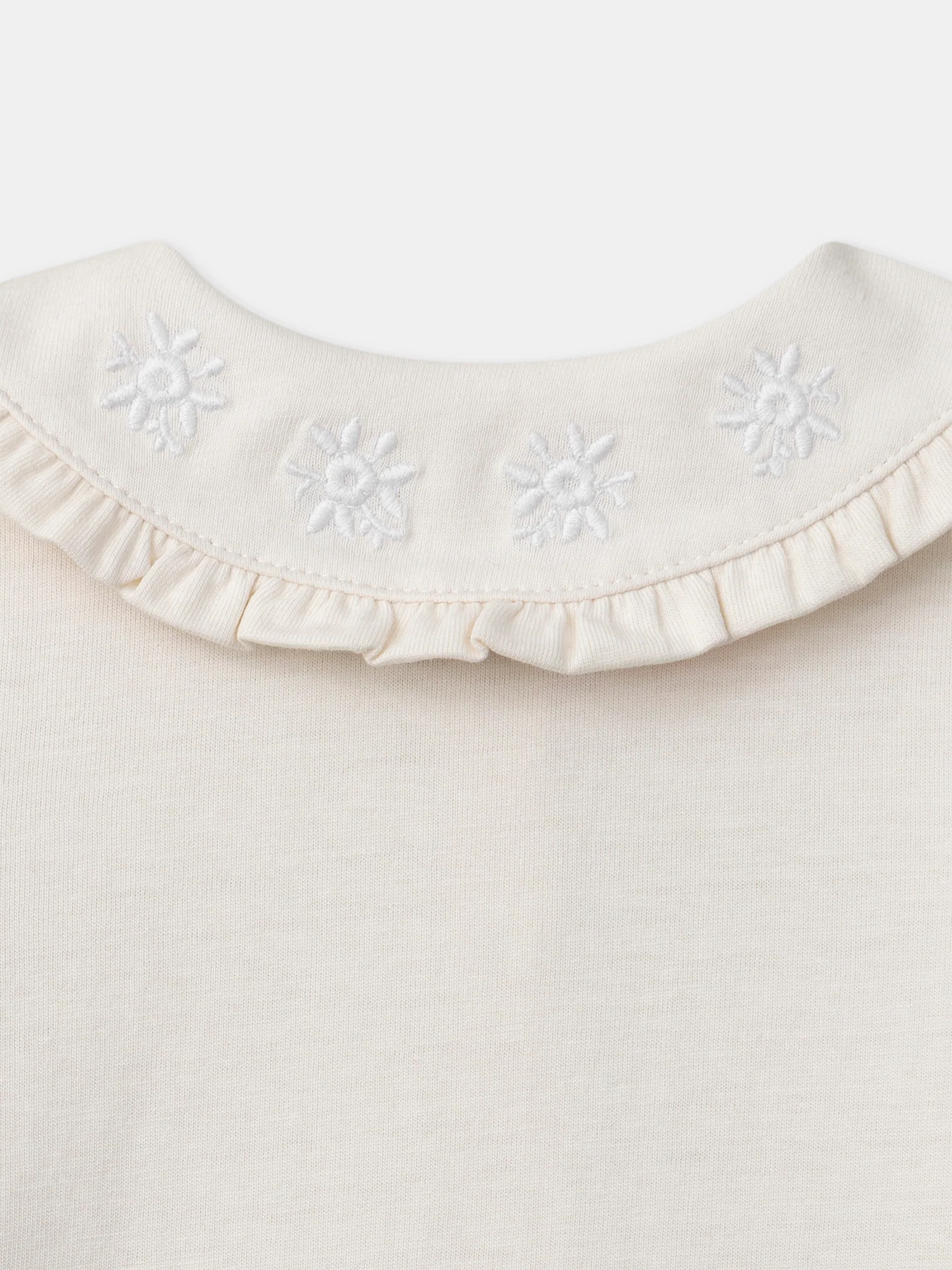 T-shirt écru à col claudine et broderies fleurs Bébé Fille